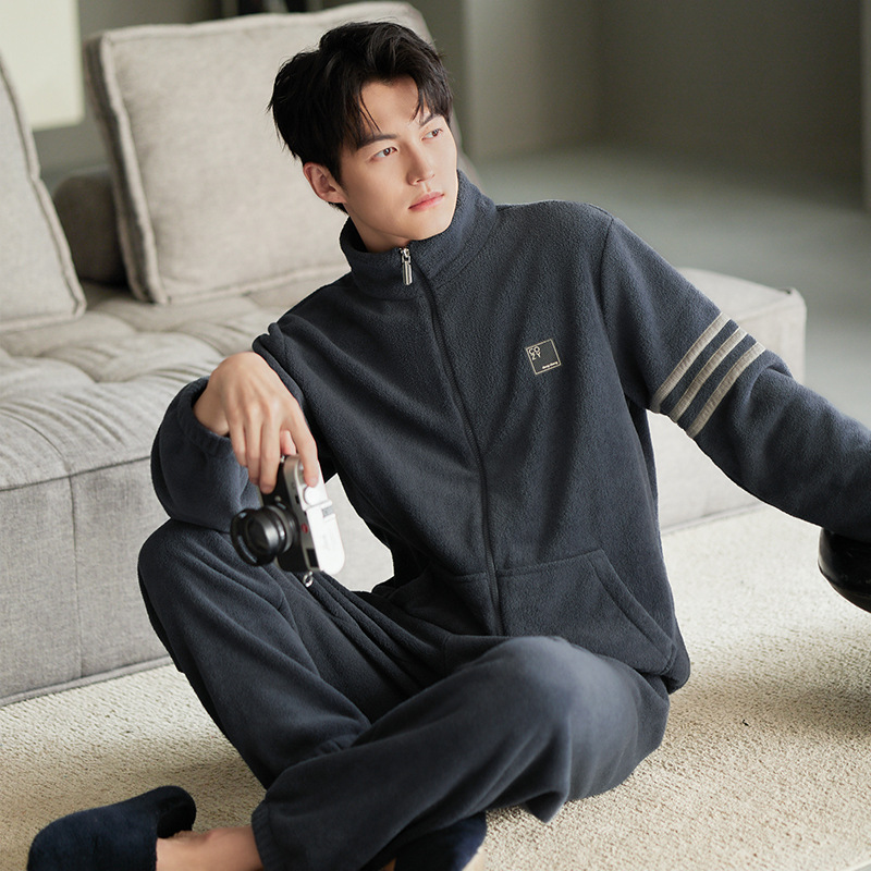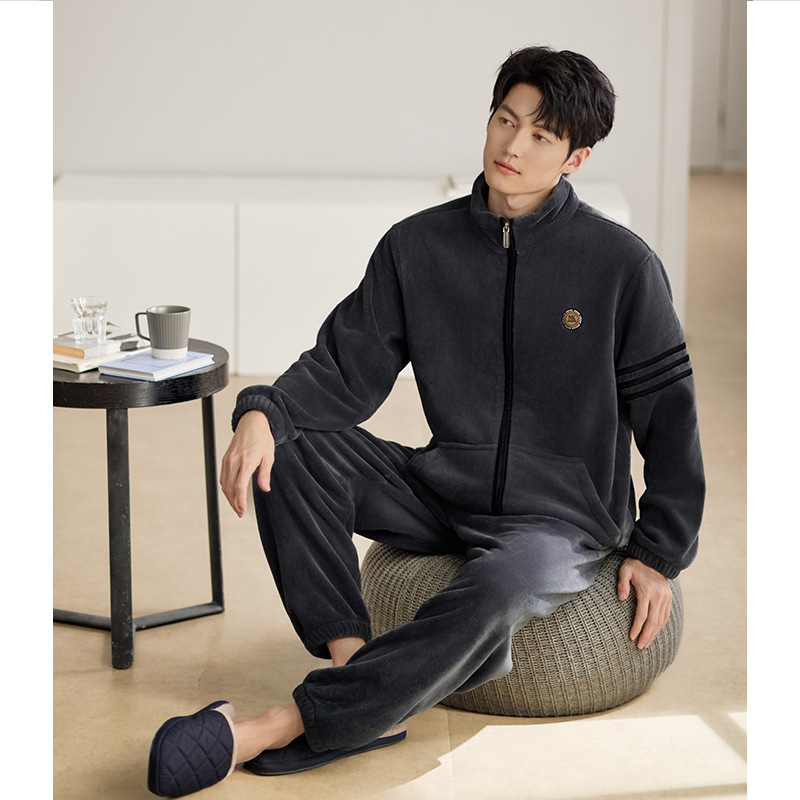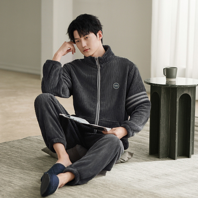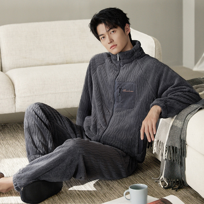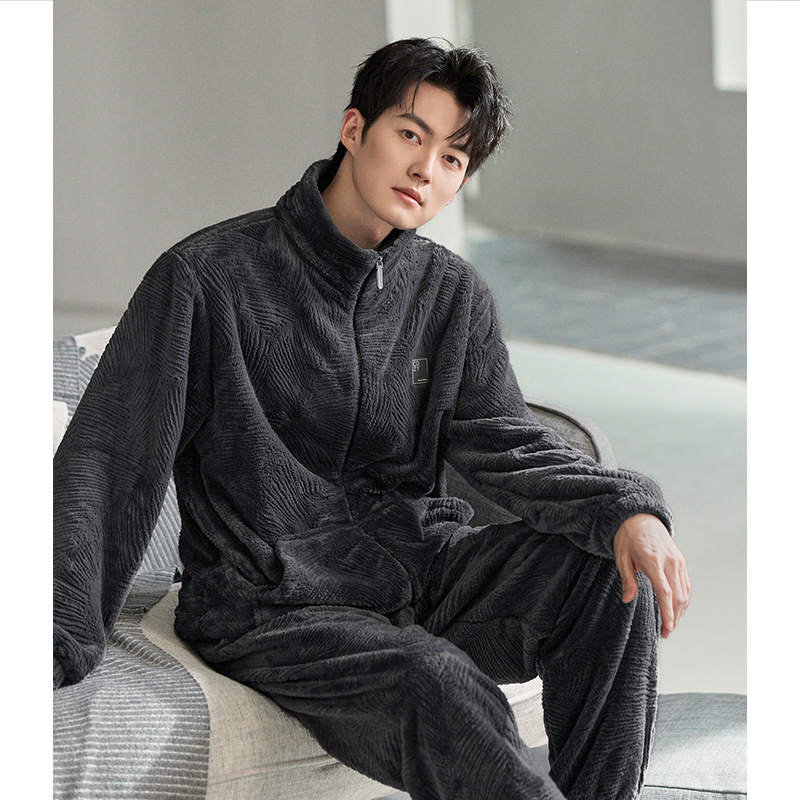 잠옷 남자의 겨울 산호 양털 두꺼운 기모 남자의 가을과 겨울 플란넬 플러스 사이즈 겨울 캐주얼 홈 옷