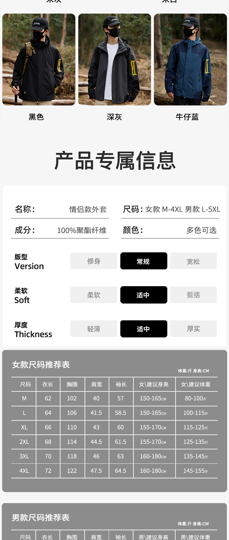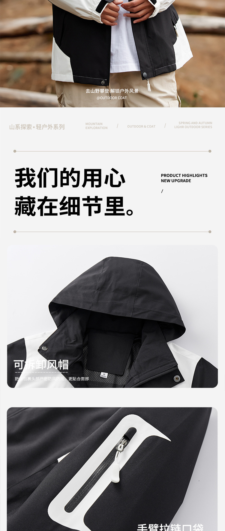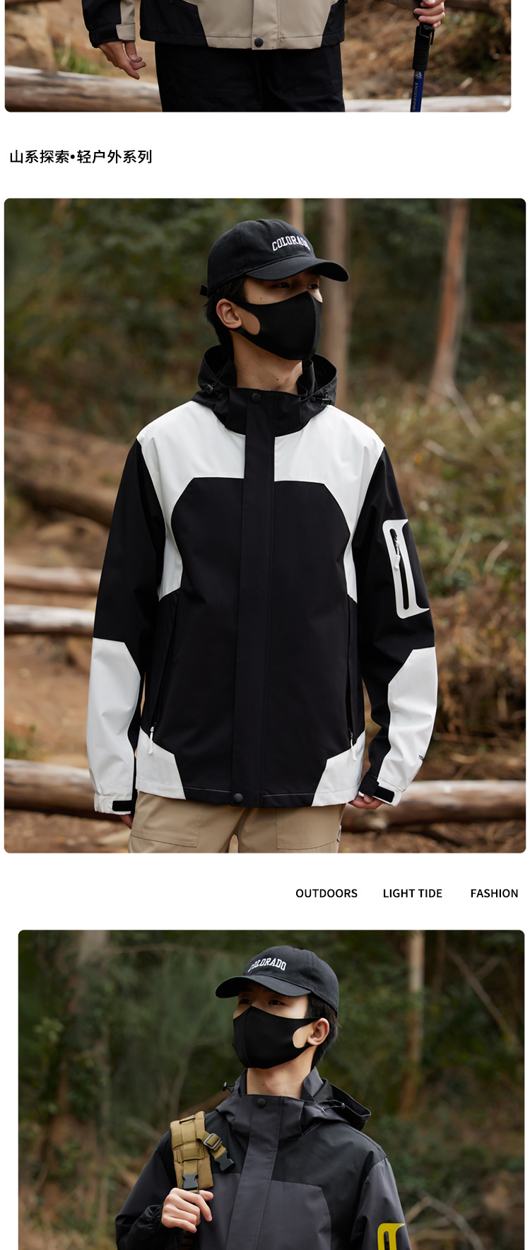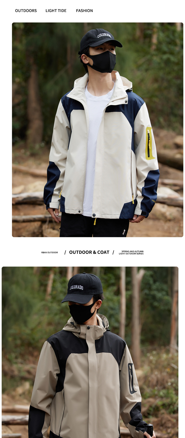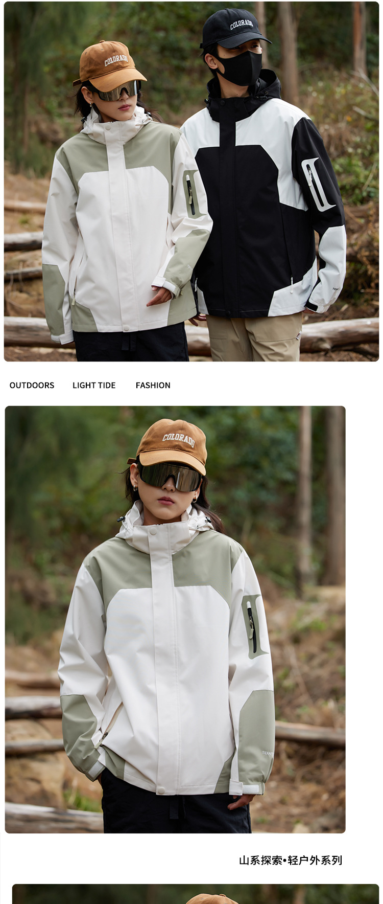 2024 폭발성 야외 재킷 커플 컬러 매칭 이동식 캡 방수 방풍 재킷 남성 등산 세트스토어 가기