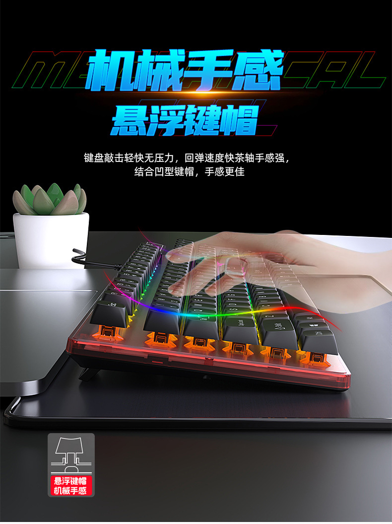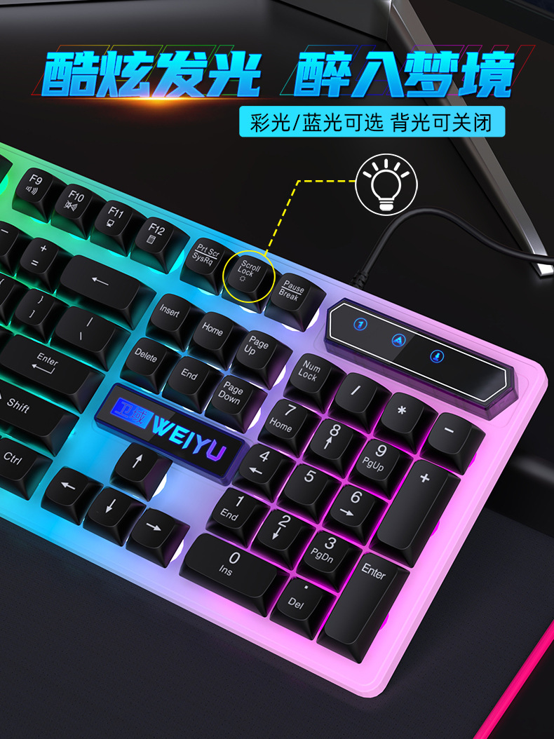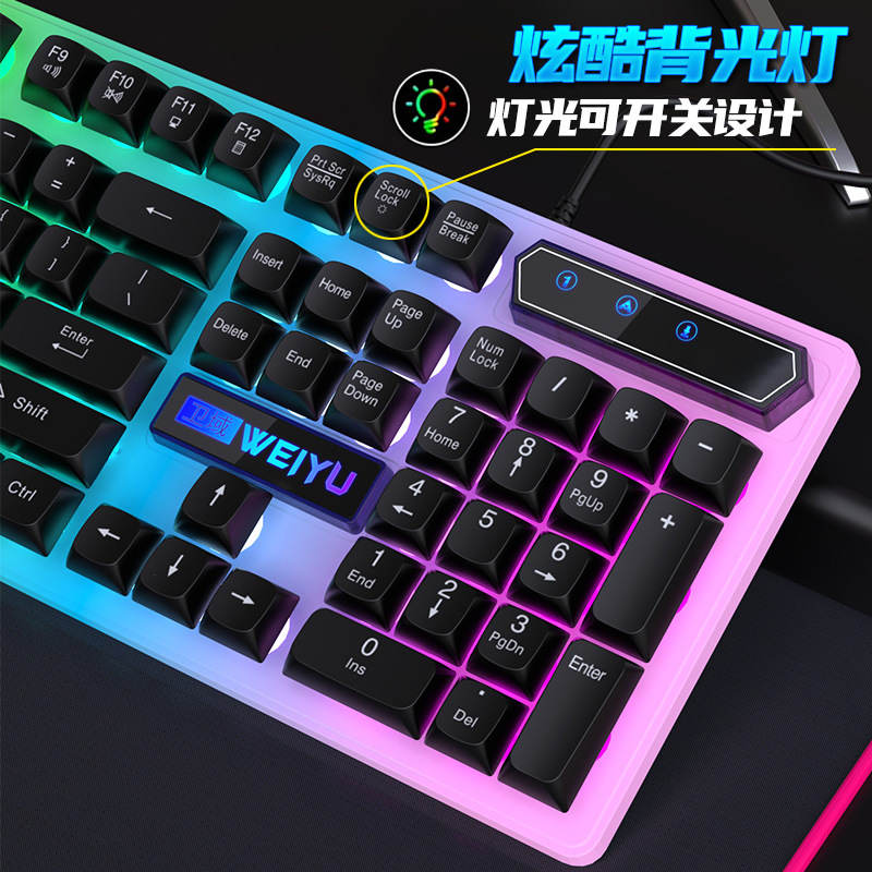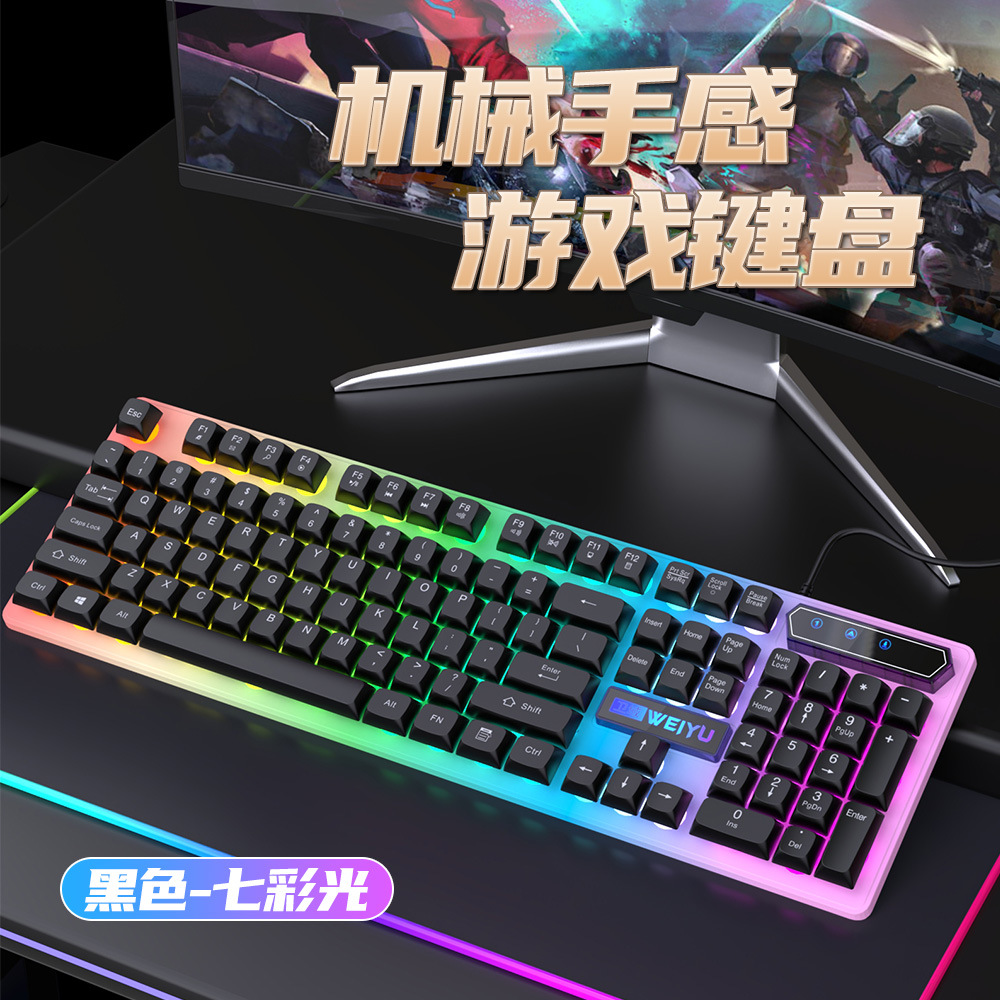 재고 빠른 유선 키보드 마우스 발광 세트 비즈니스 사무실 데스크탑 서스펜션 키 캡 컴퓨터 주변 액세서리