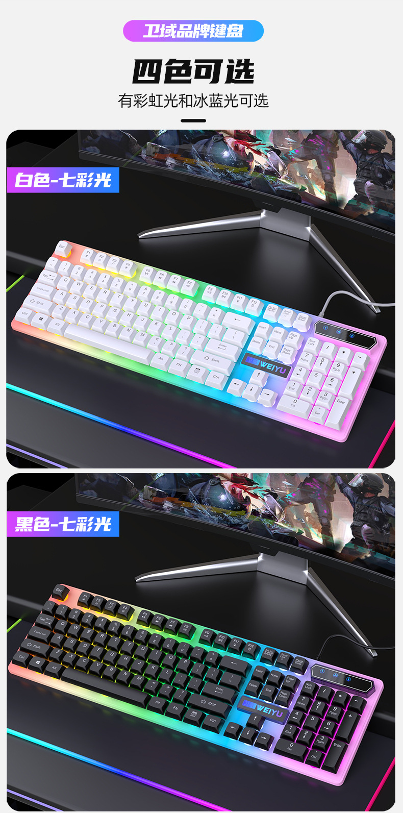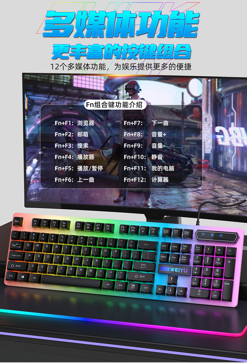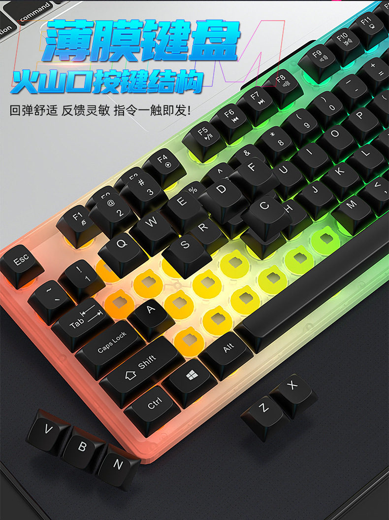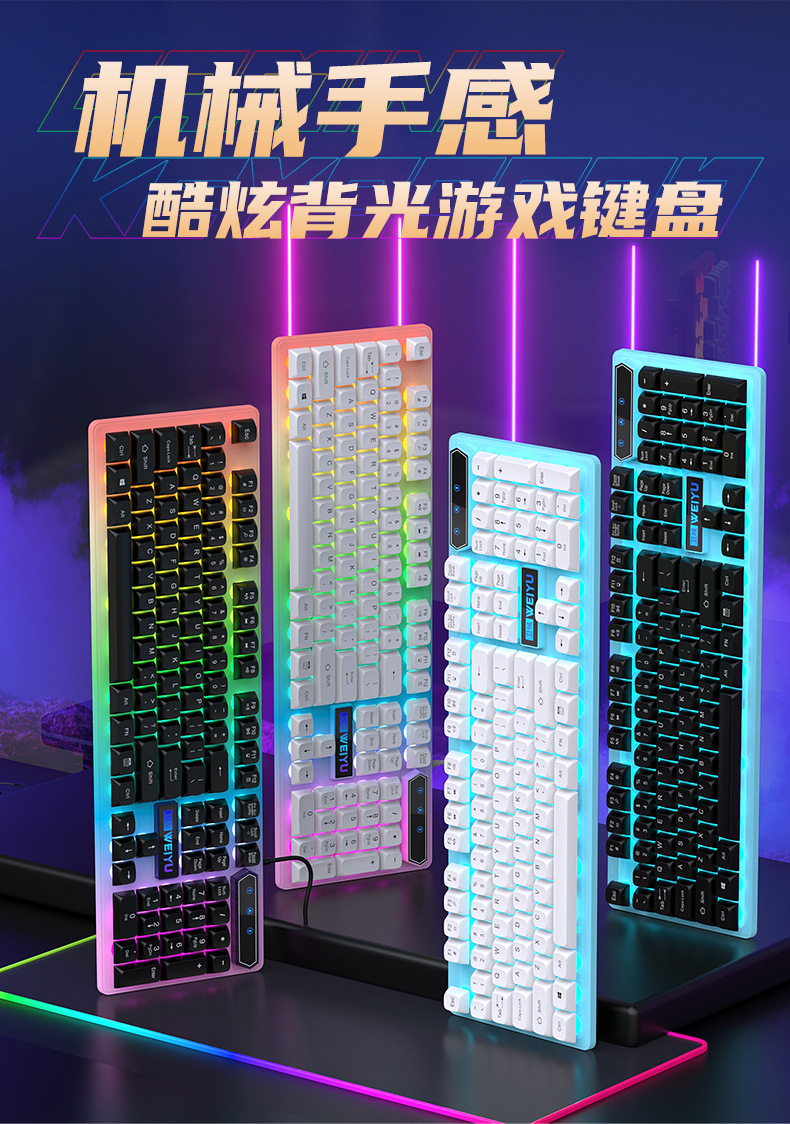 재고 빠른 유선 키보드 마우스 발광 세트 비즈니스 사무실 데스크탑 서스펜션 키 캡 컴퓨터 주변 액세서리