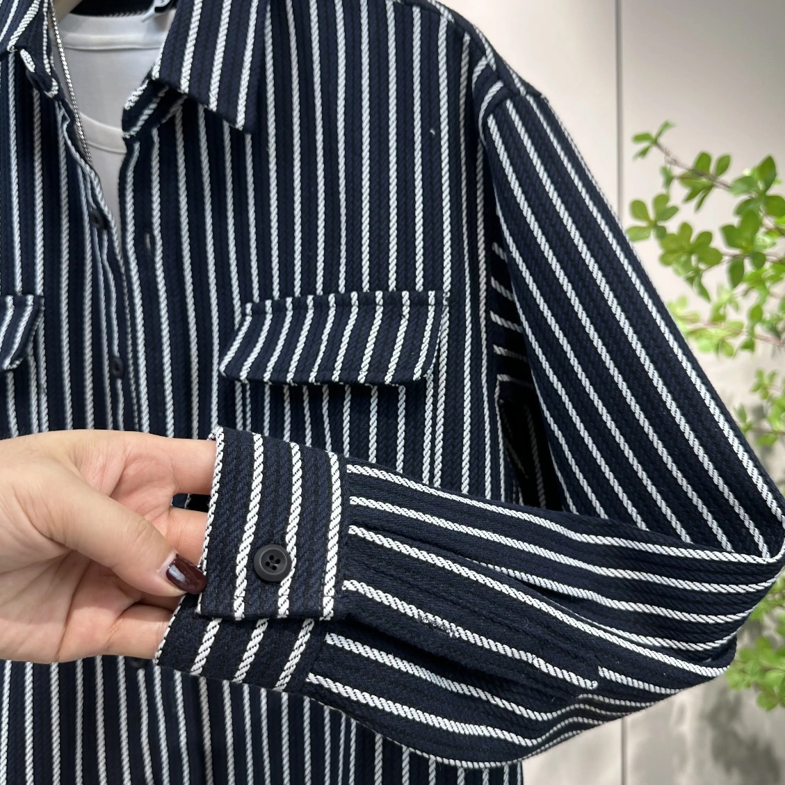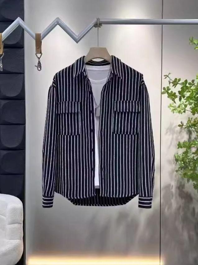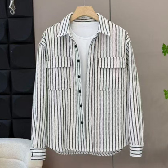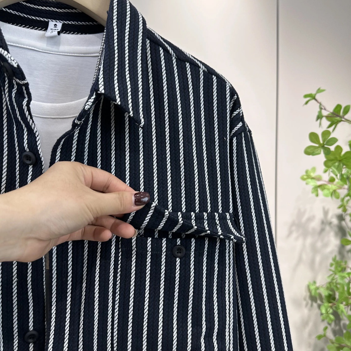 2024 새로운 도착 남성용 루즈 셔츠 긴팔 트렌디 스트라이프 탑 캐주얼 트렌디 셔츠 올 매치 재킷