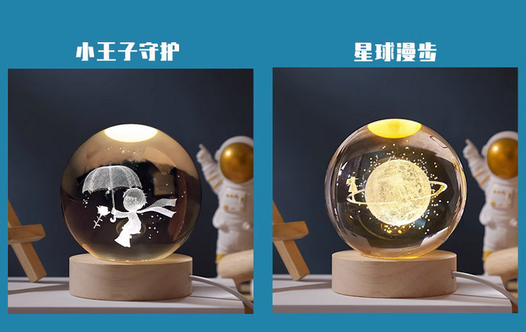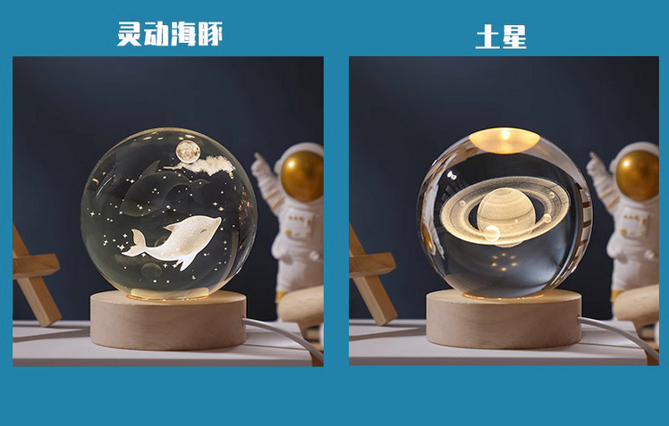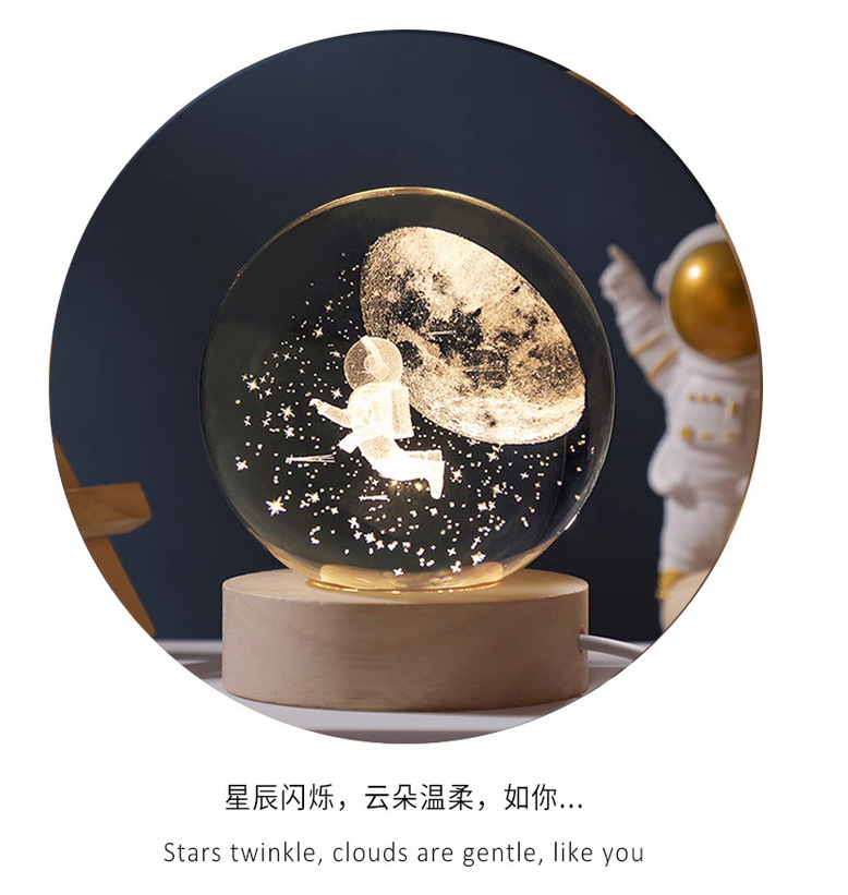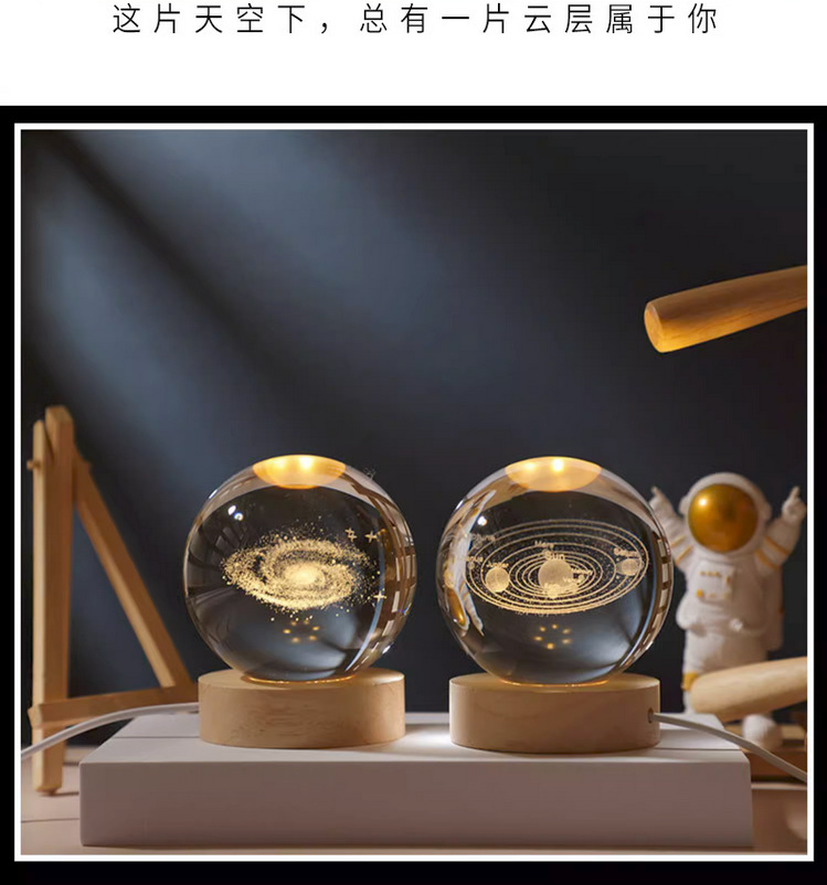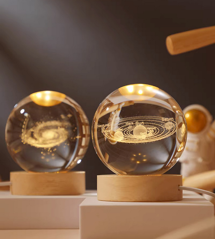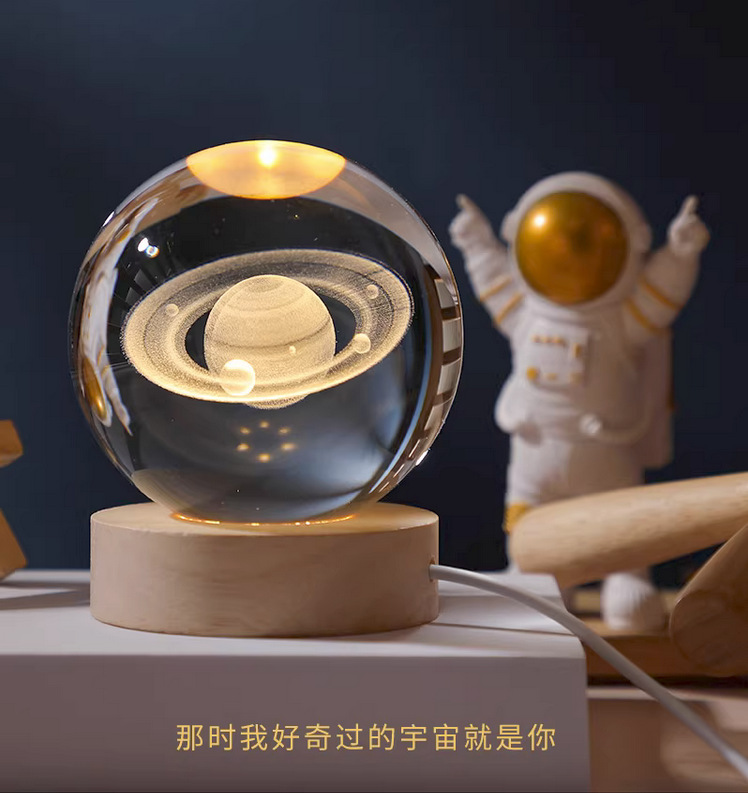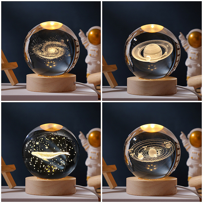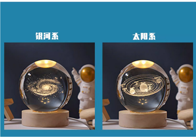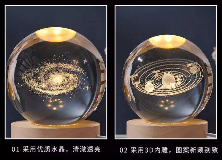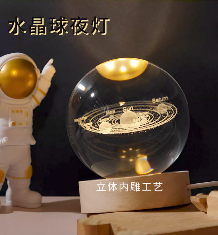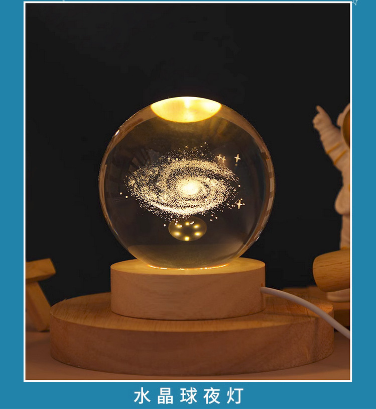 빛나는 태양계 크리스탈 볼 데스크탑 나이트 라이트 장식품 별이 빛나는 크리스탈 볼 생일 선물 소녀 소년 졸업