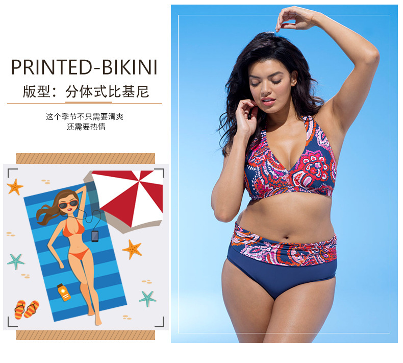 AliExpress 분할 수영복 유럽과 미국의 섹시한 인쇄 비키니 세트 플러스 사이즈 수영복 투피스 여성용 수영복