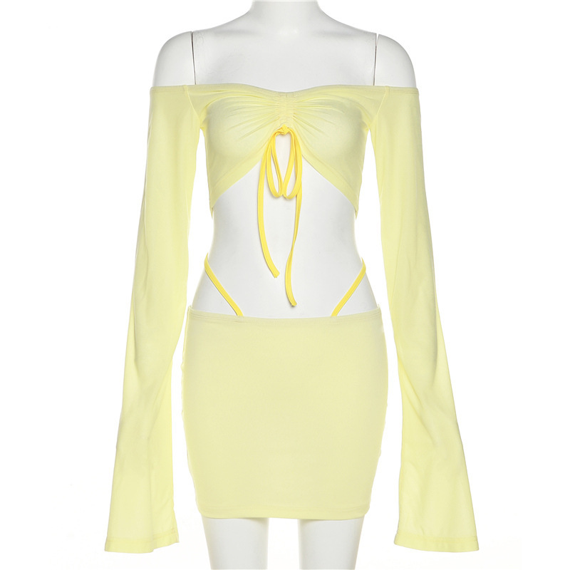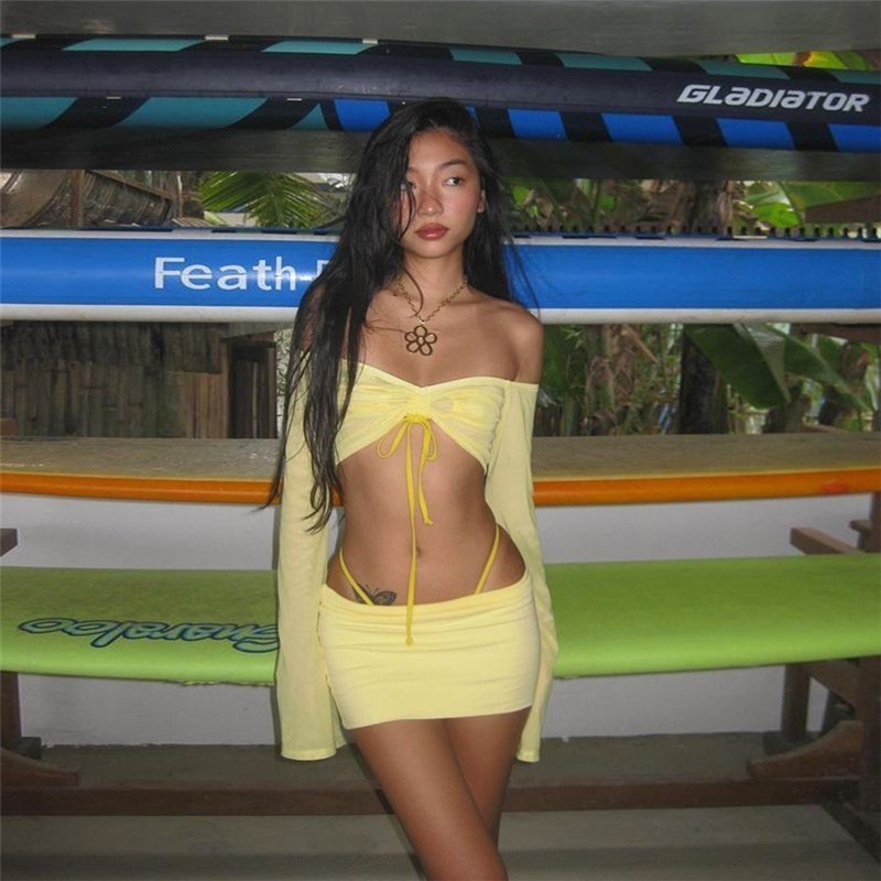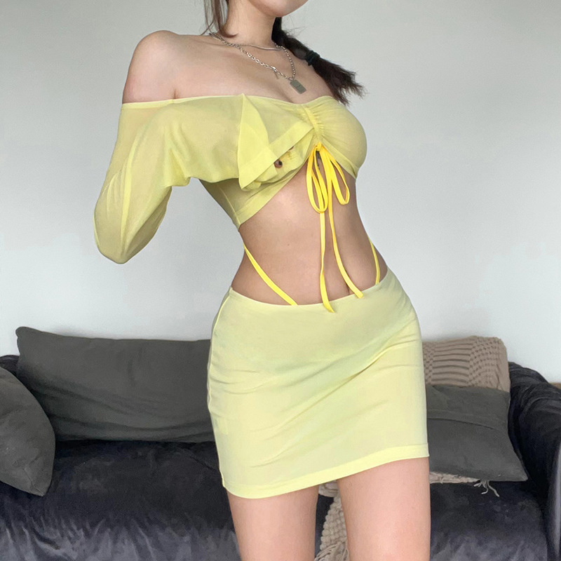 유럽과 미국 스타일 2024 여름 새로운 여성 패션 섹시한 라글란 슬리브 가슴 감싸는 최고 엉덩이 주름 치마 세트스토어 가기