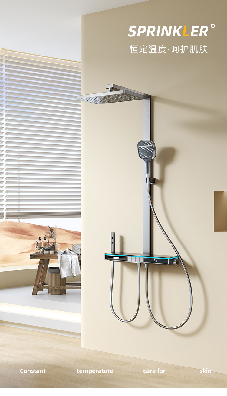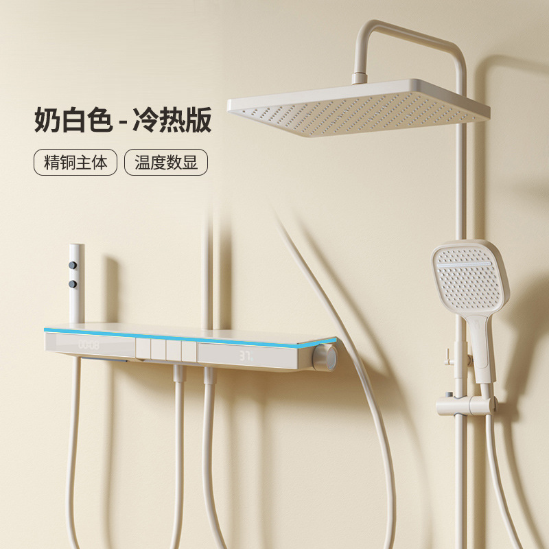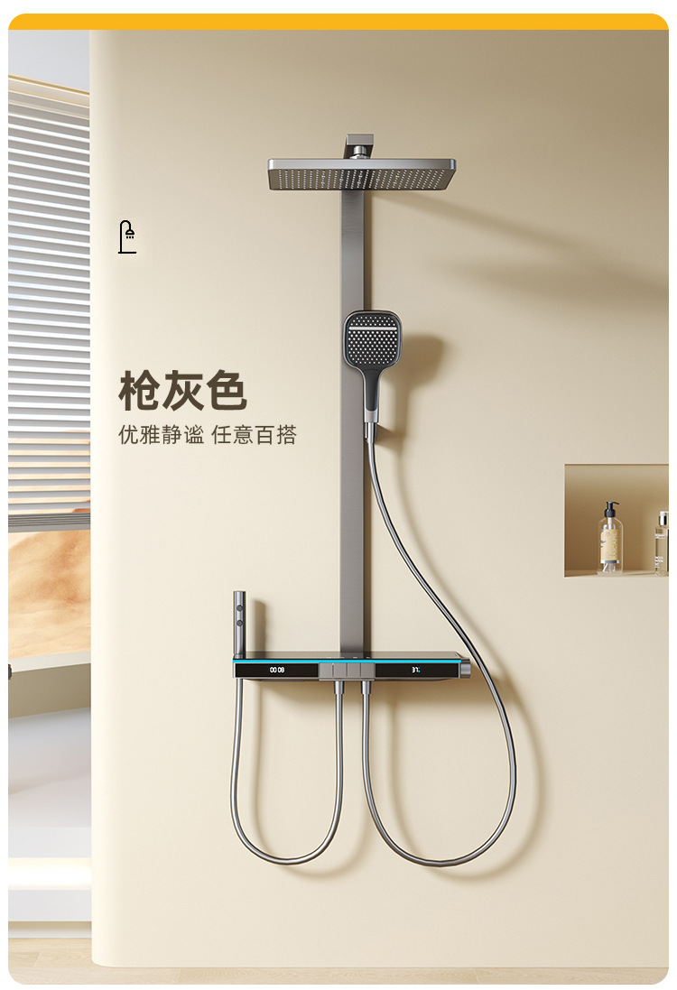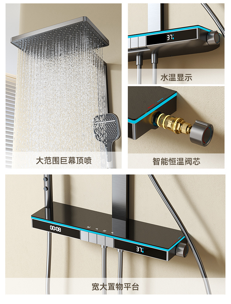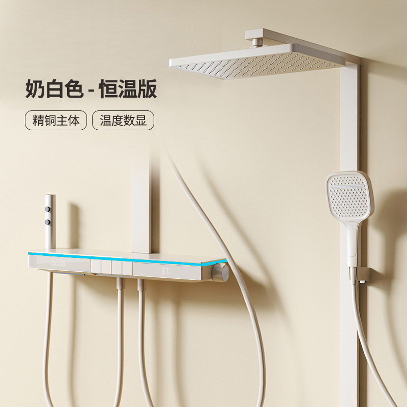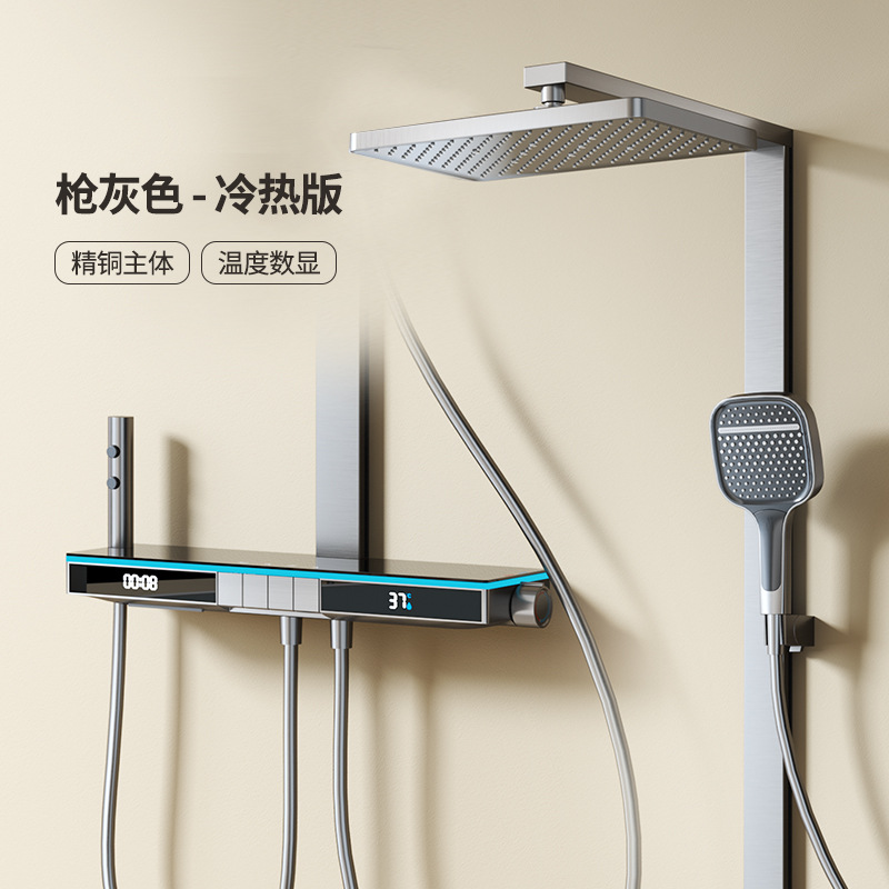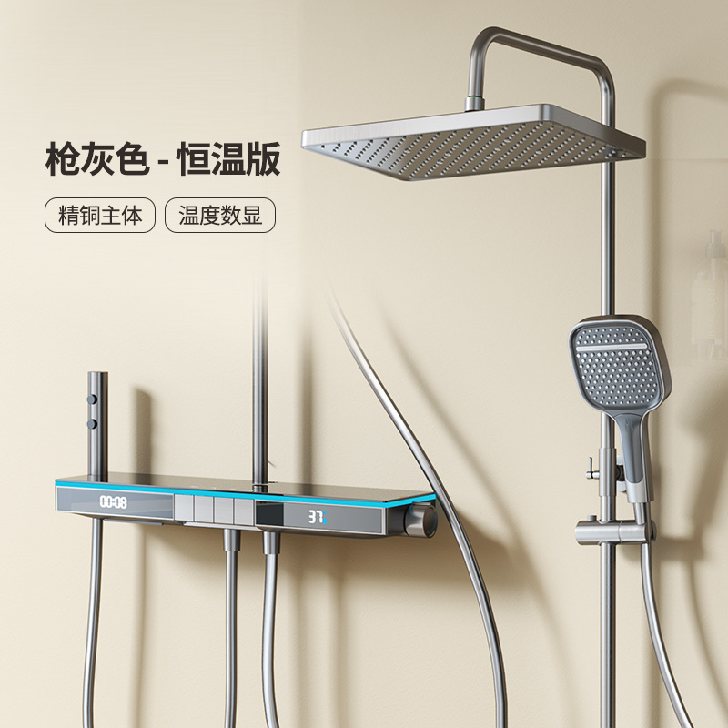독일-U8 듀얼 스크린 샤워 세트 전체 구리 가정용 건 그레이 샤워 분위기 조명 항온 레인 샤워 부스터