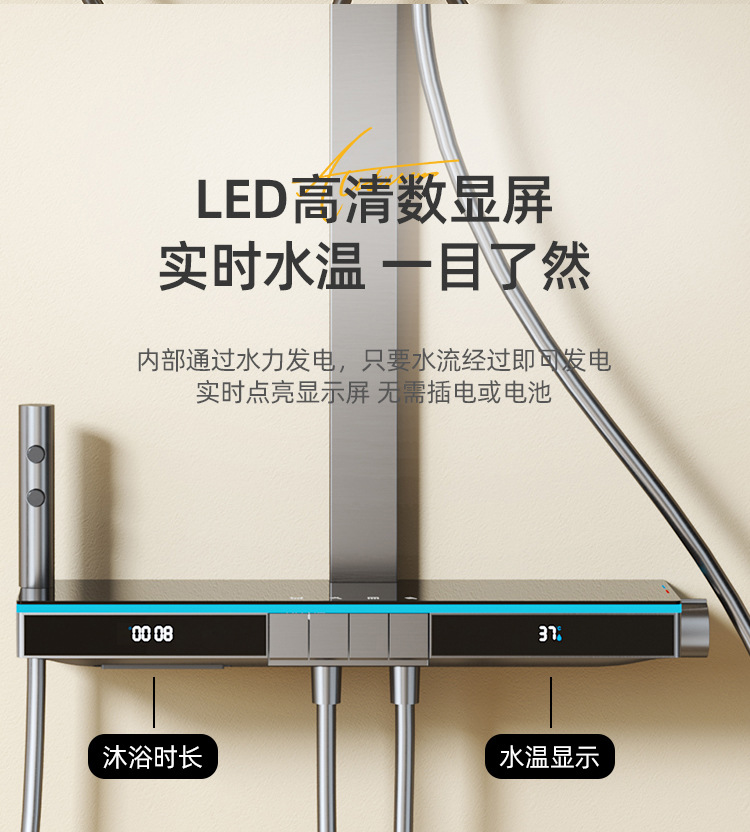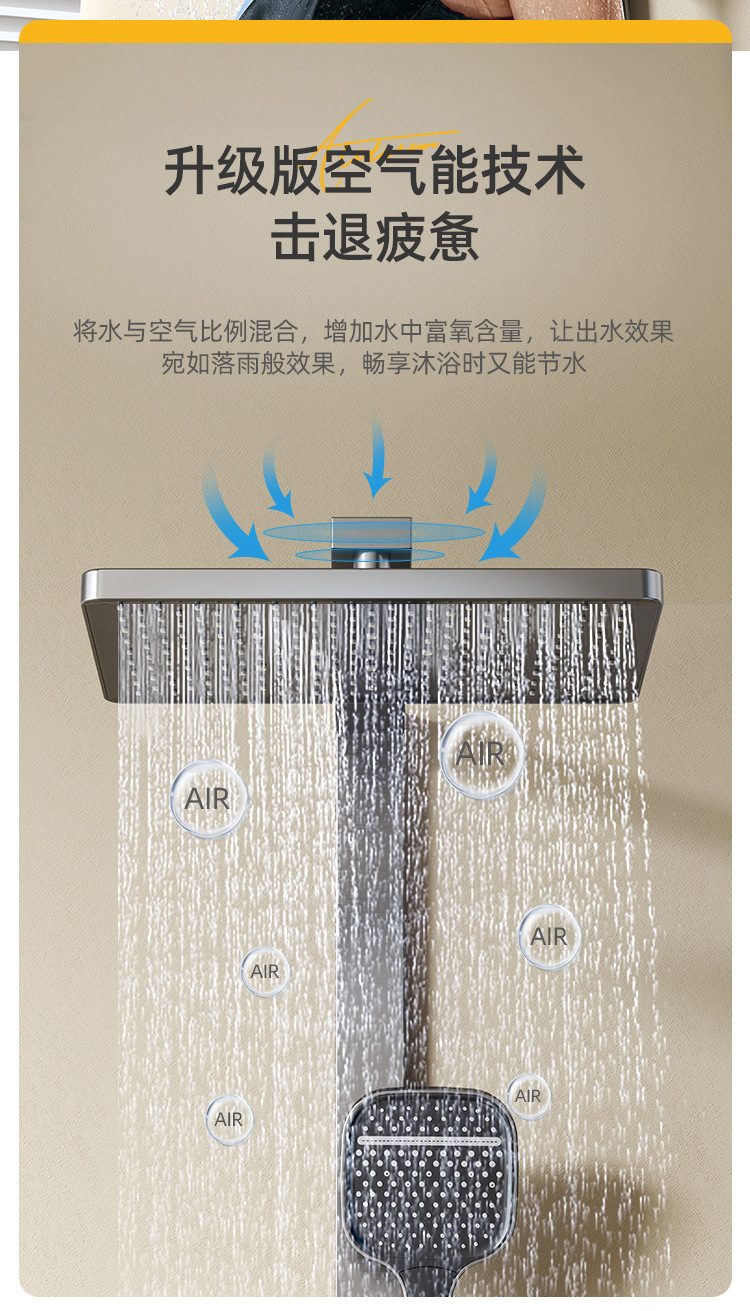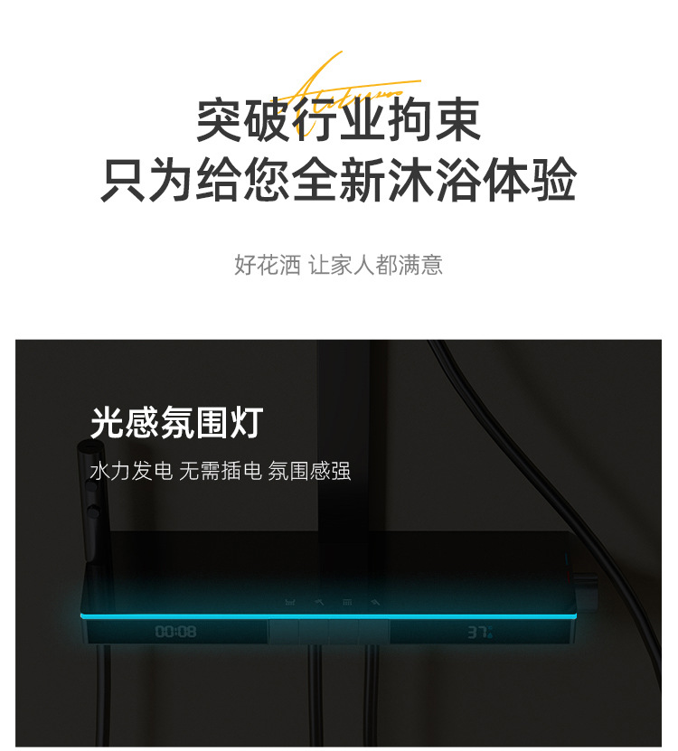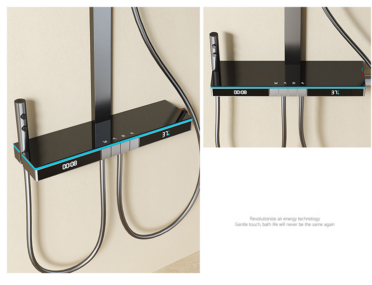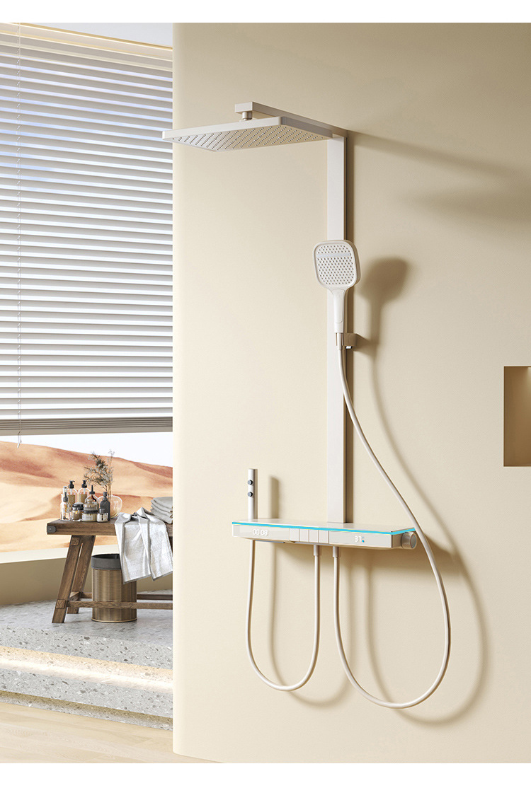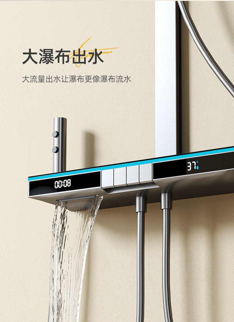 독일-U8 듀얼 스크린 샤워 세트 전체 구리 가정용 건 그레이 샤워 분위기 조명 항온 레인 샤워 부스터