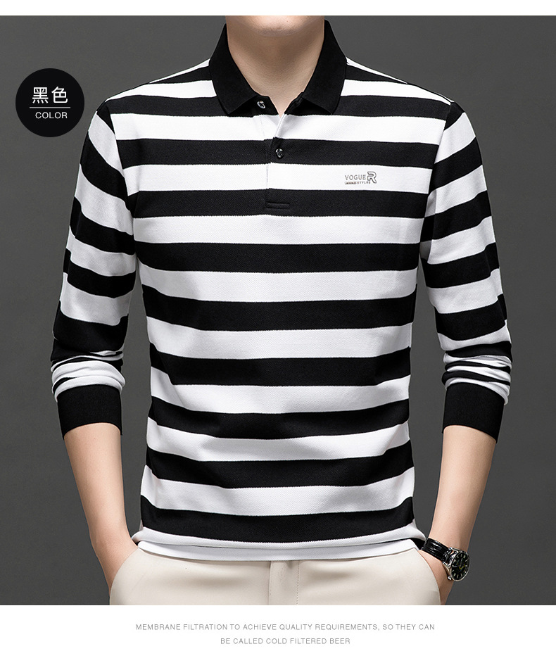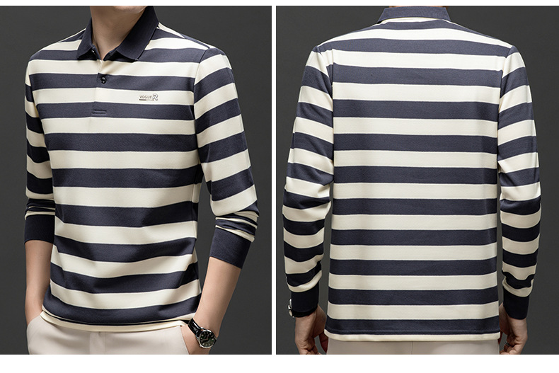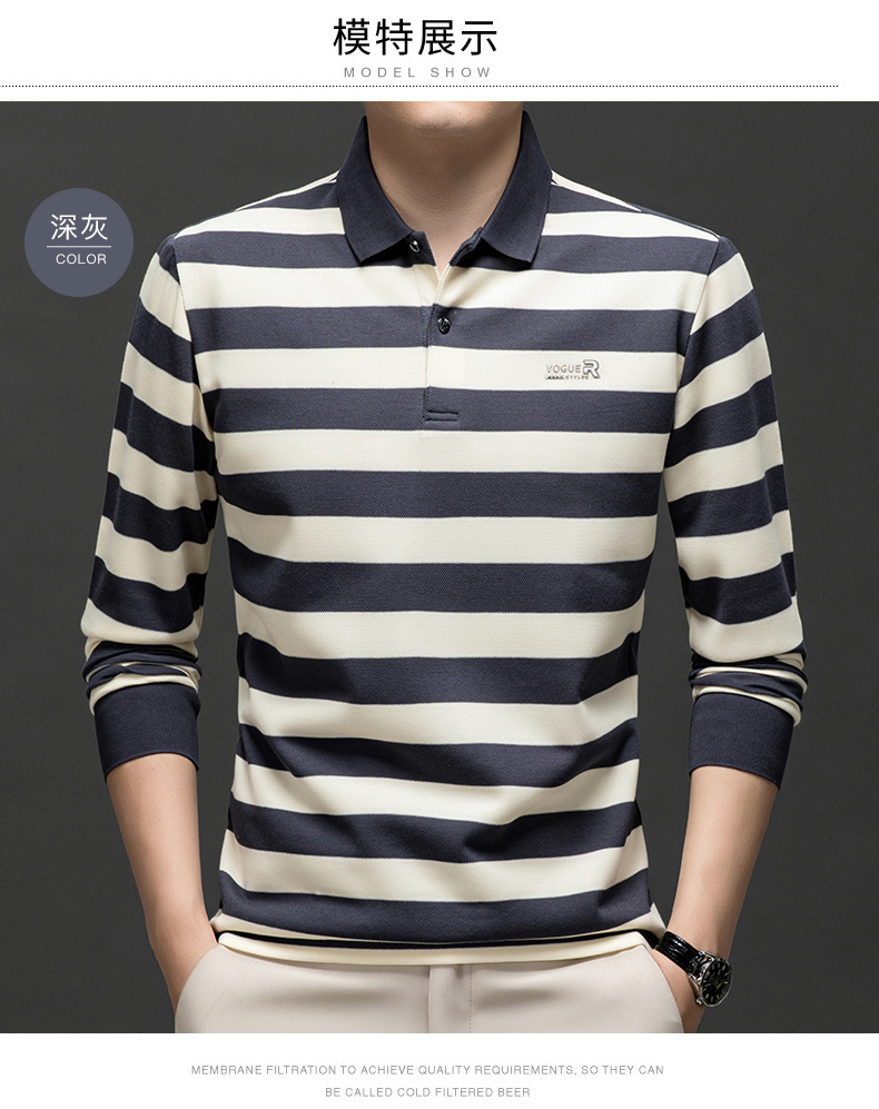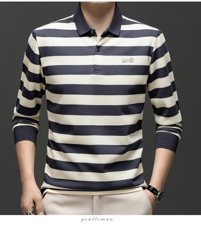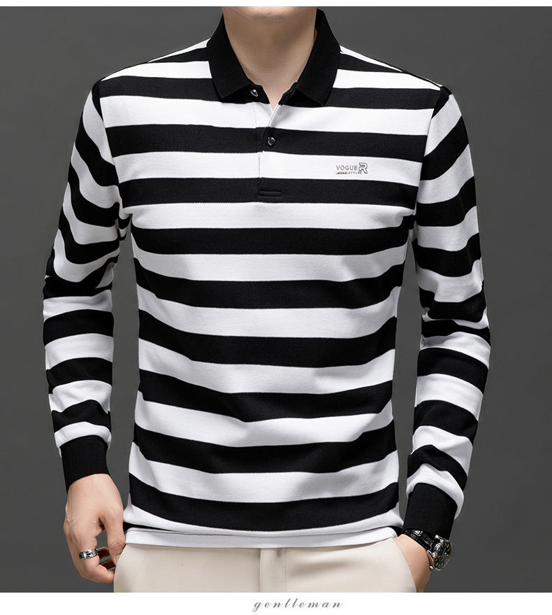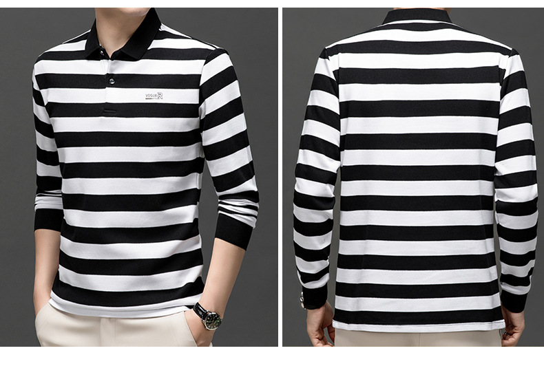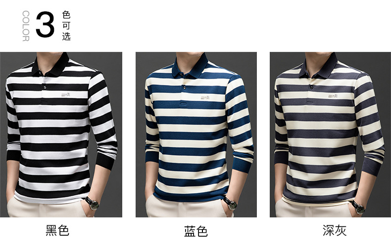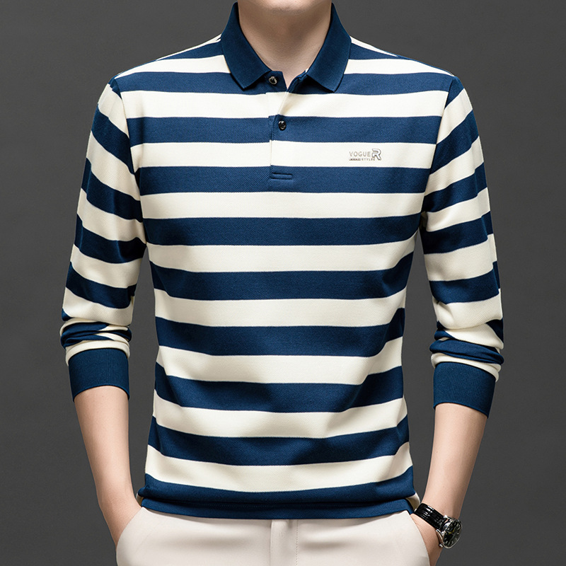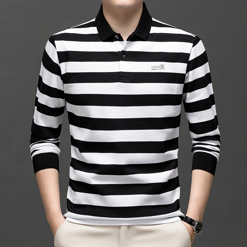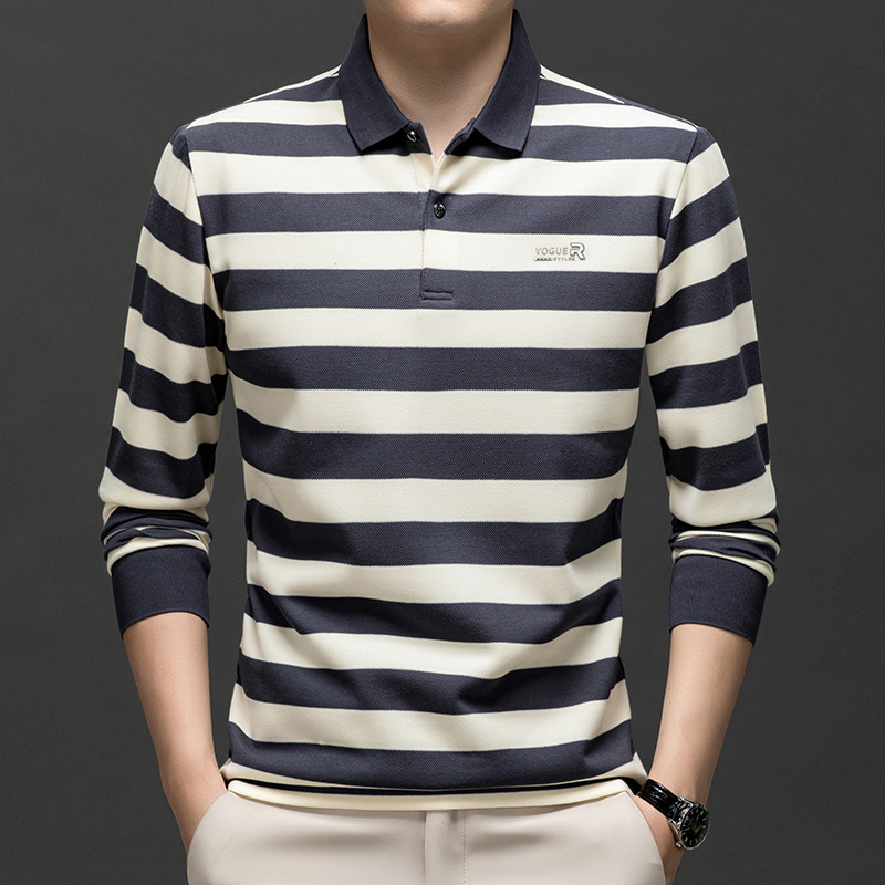 밍디 마우스 남자 가을 새로운 올매치 느슨한 긴팔 폴로 셔츠 비즈니스 줄무늬 옷깃 청소년 티셔츠스토어 가기