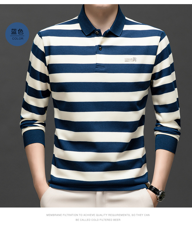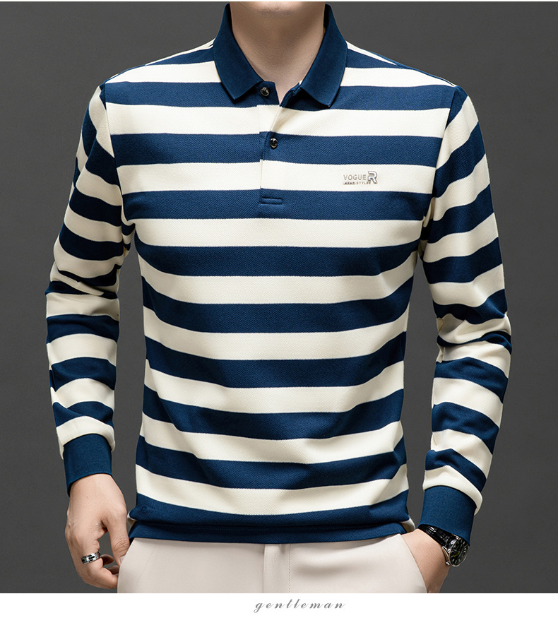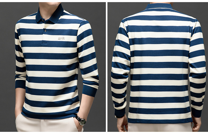 밍디 마우스 남자 가을 새로운 올매치 느슨한 긴팔 폴로 셔츠 비즈니스 줄무늬 옷깃 청소년 티셔츠