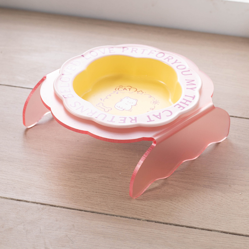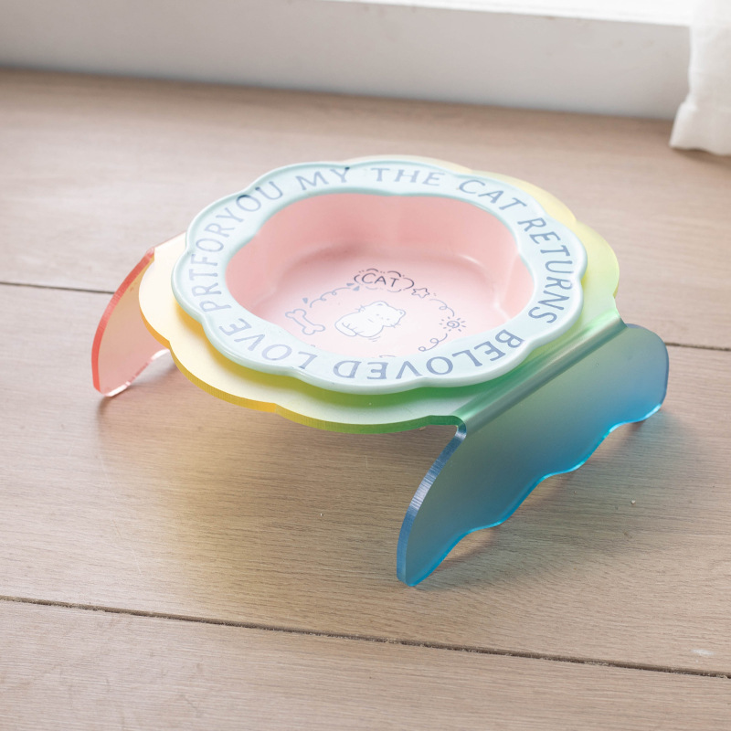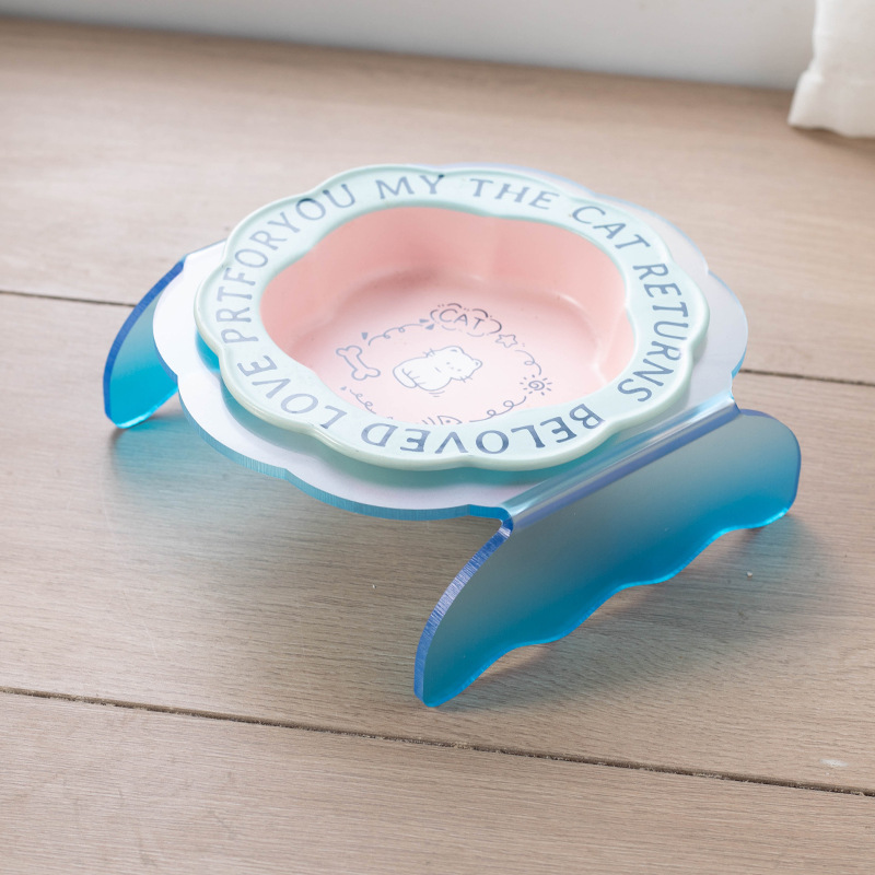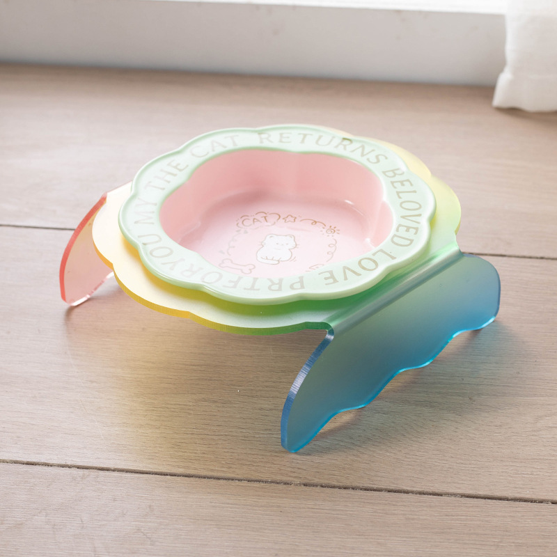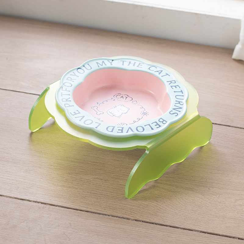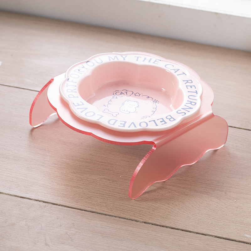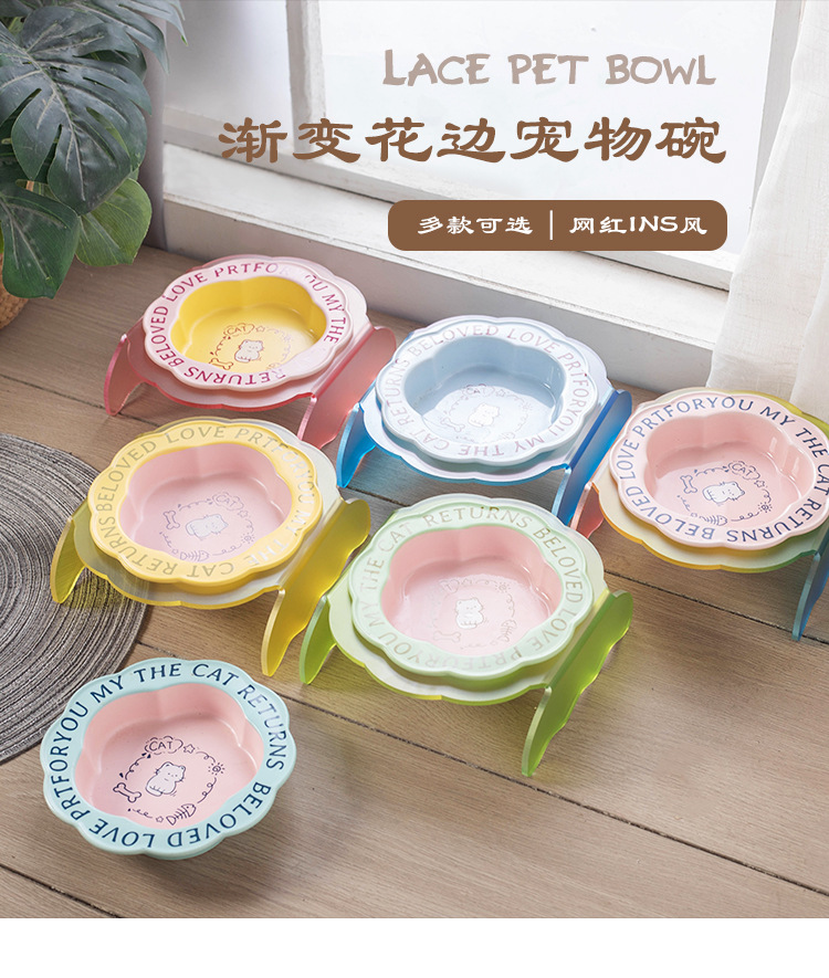 세라믹 고양이 그릇 랙 목 보호 안티 노크 애완 동물 그릇 철 랙 높은 랙 고양이 먹이 그릇 아크릴 요정 레이스 그릇 랙