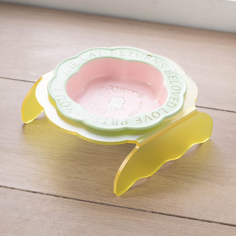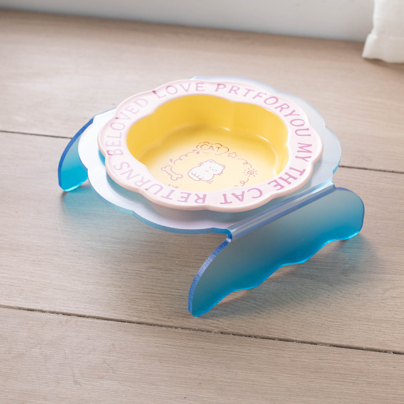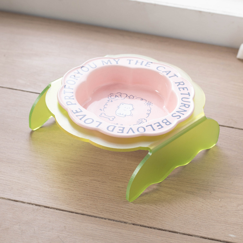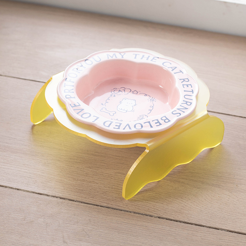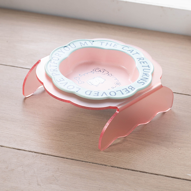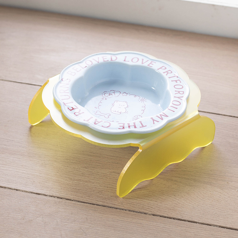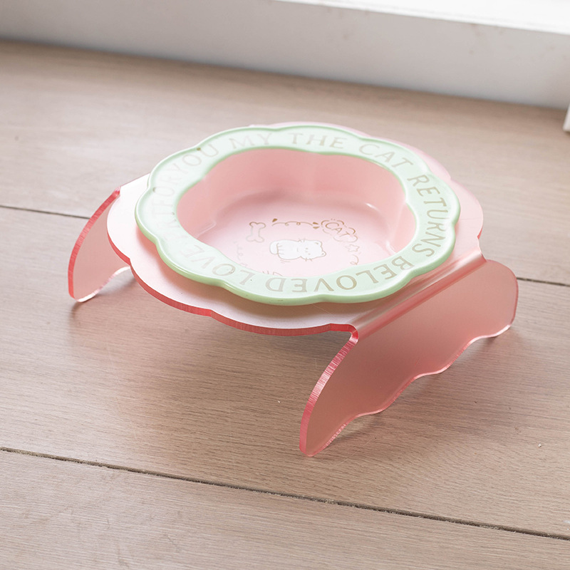 세라믹 고양이 그릇 랙 목 보호 안티 노크 애완 동물 그릇 철 랙 높은 랙 고양이 먹이 그릇 아크릴 요정 레이스 그릇 랙