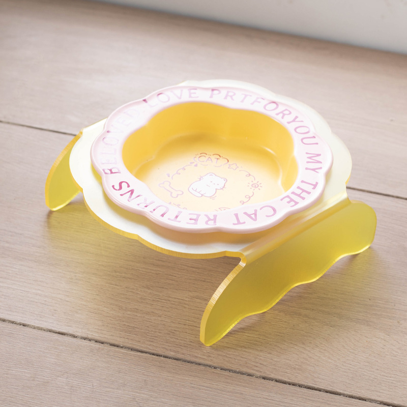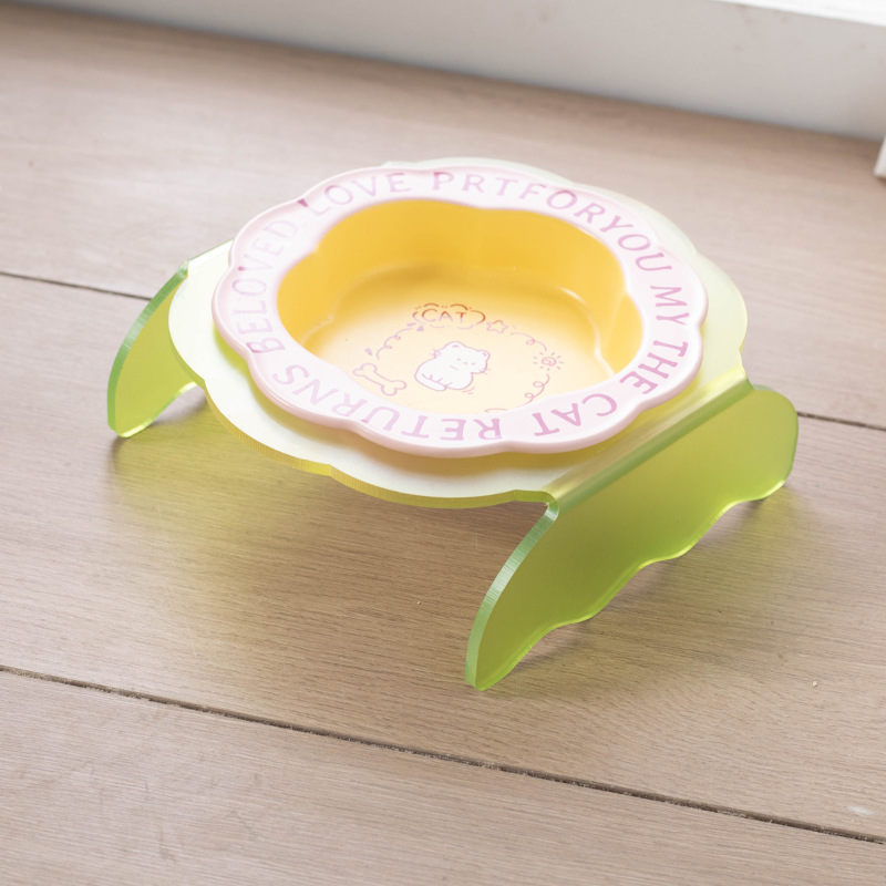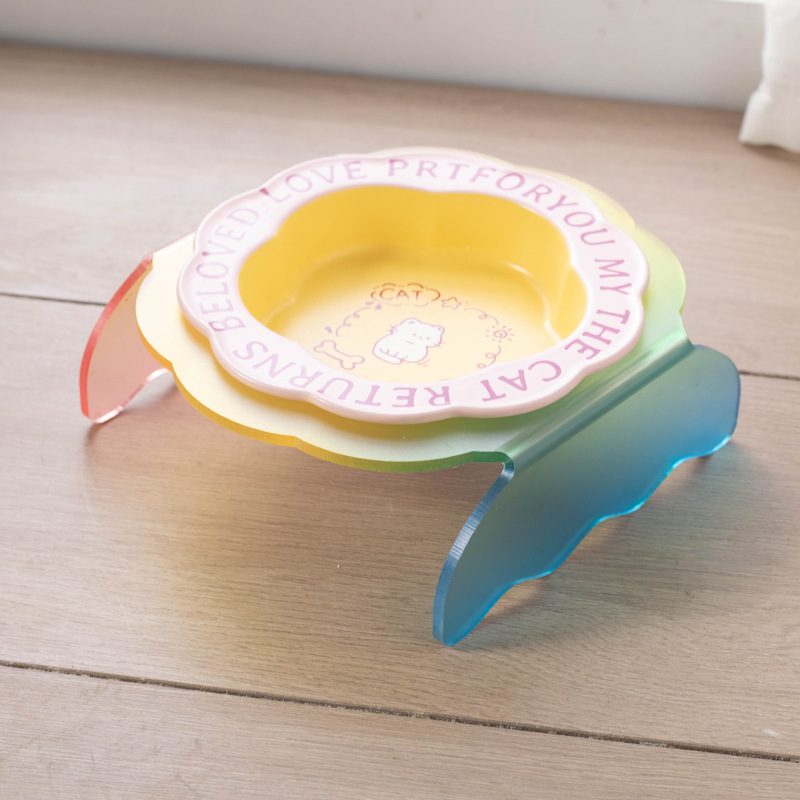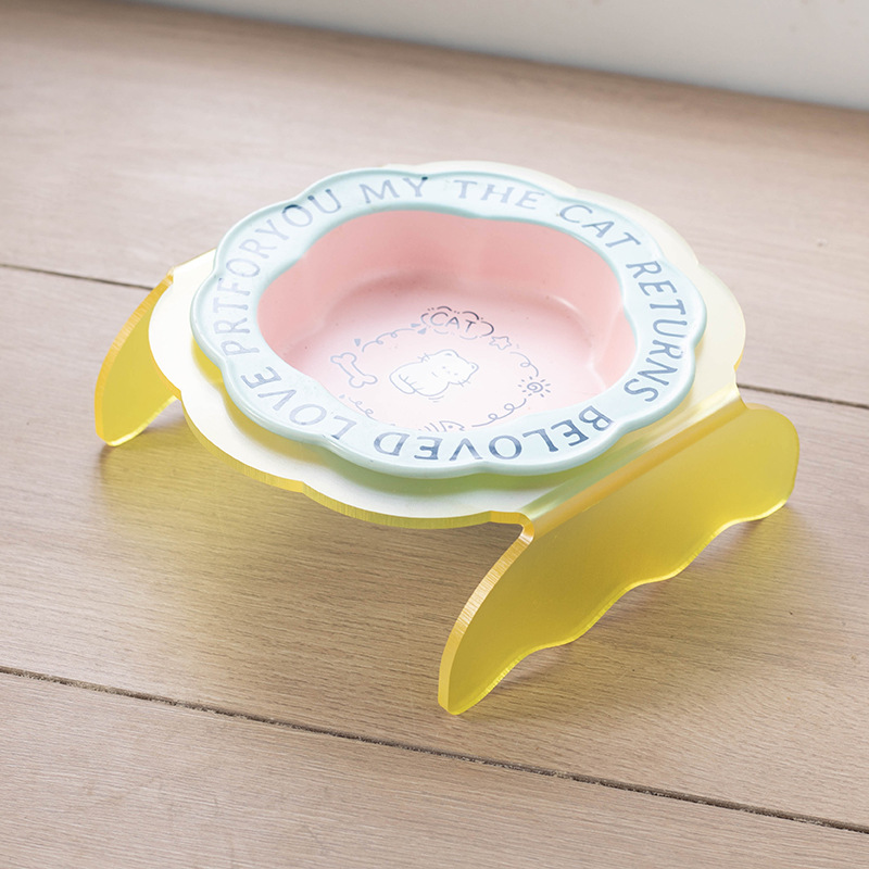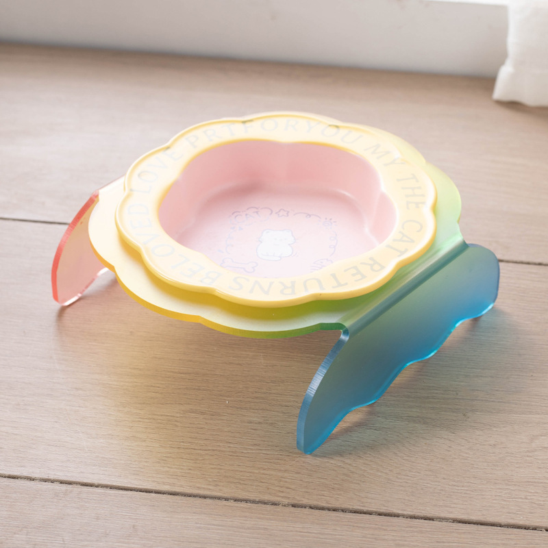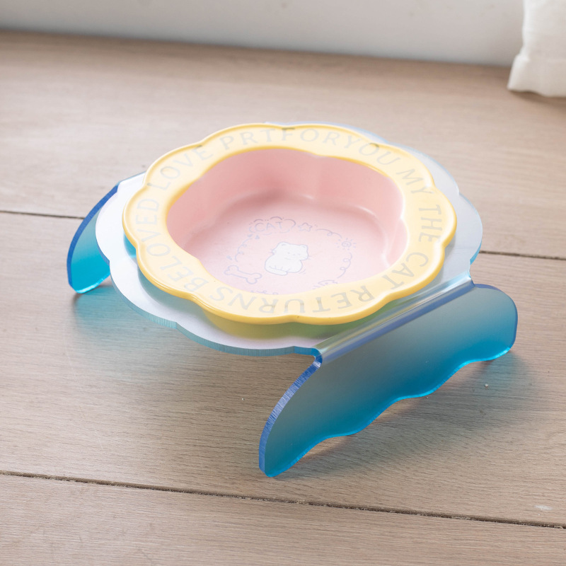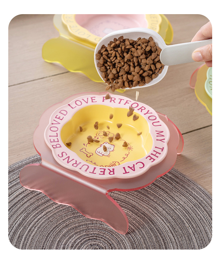 세라믹 고양이 그릇 랙 목 보호 안티 노크 애완 동물 그릇 철 랙 높은 랙 고양이 먹이 그릇 아크릴 요정 레이스 그릇 랙