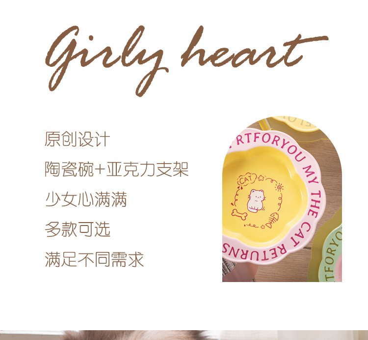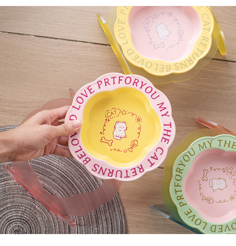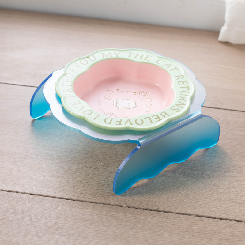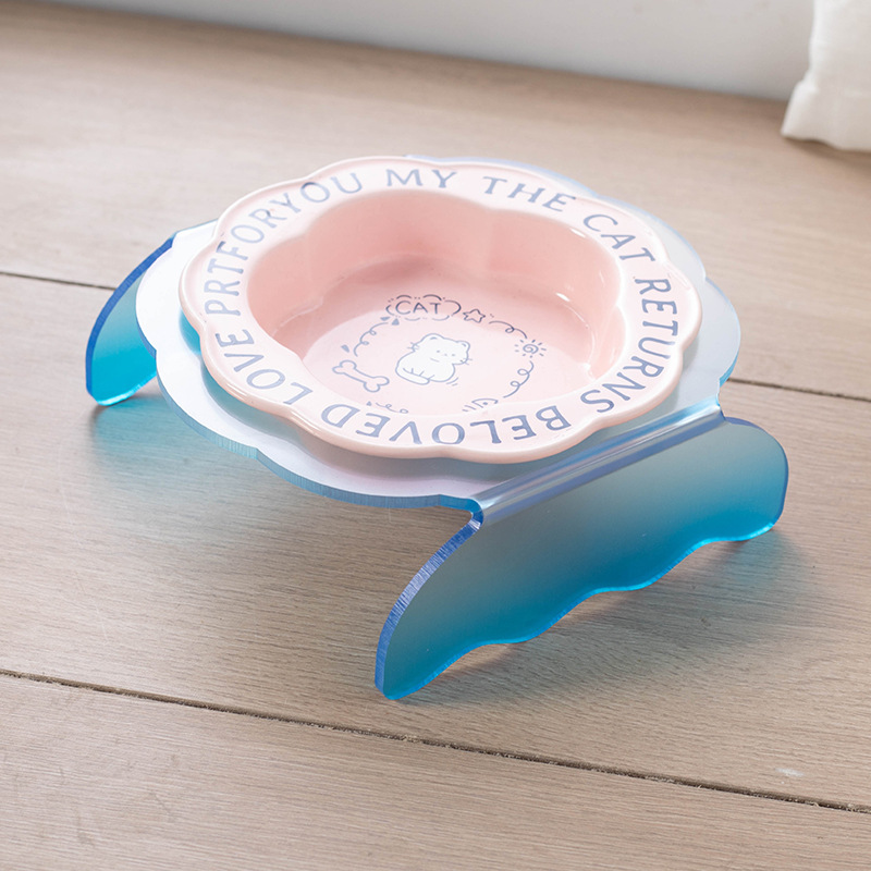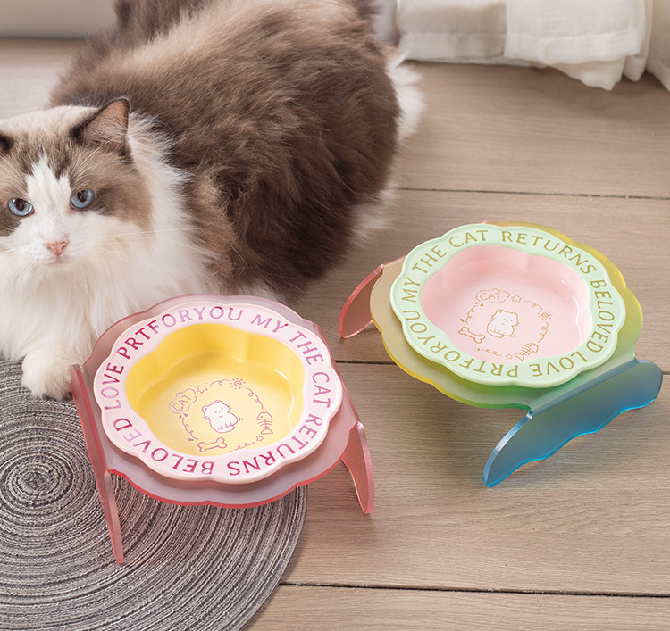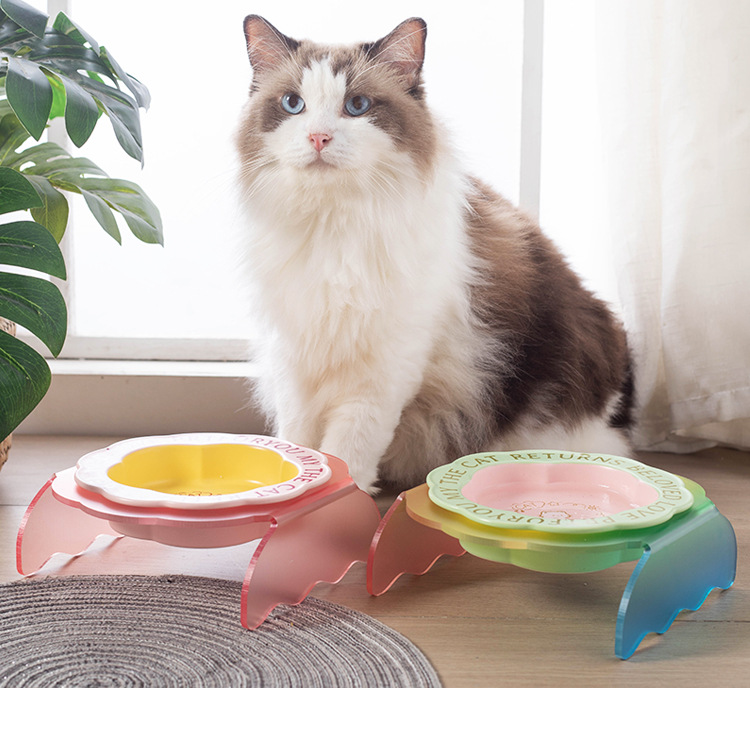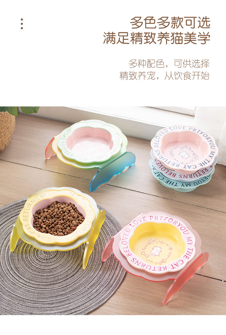 세라믹 고양이 그릇 랙 목 보호 안티 노크 애완 동물 그릇 철 랙 높은 랙 고양이 먹이 그릇 아크릴 요정 레이스 그릇 랙스토어 가기