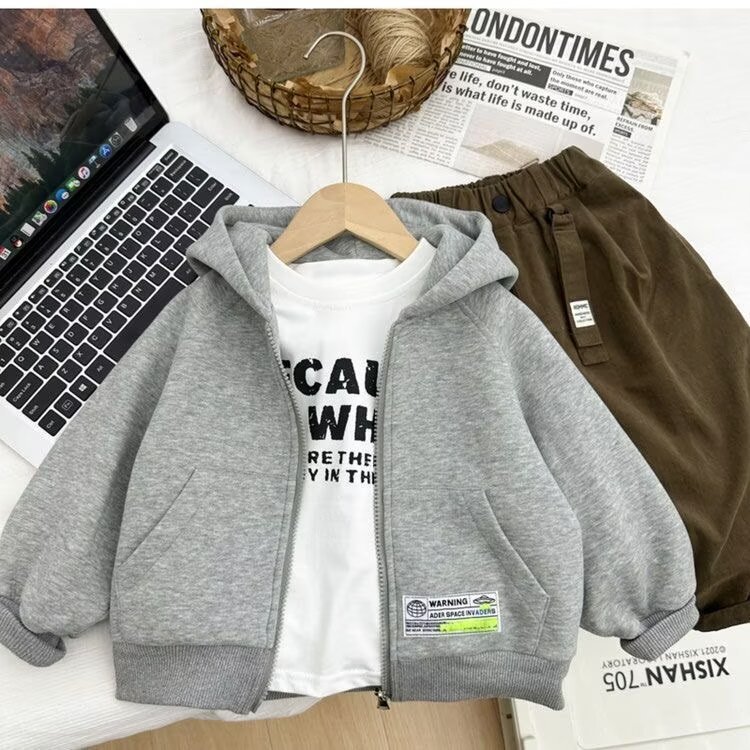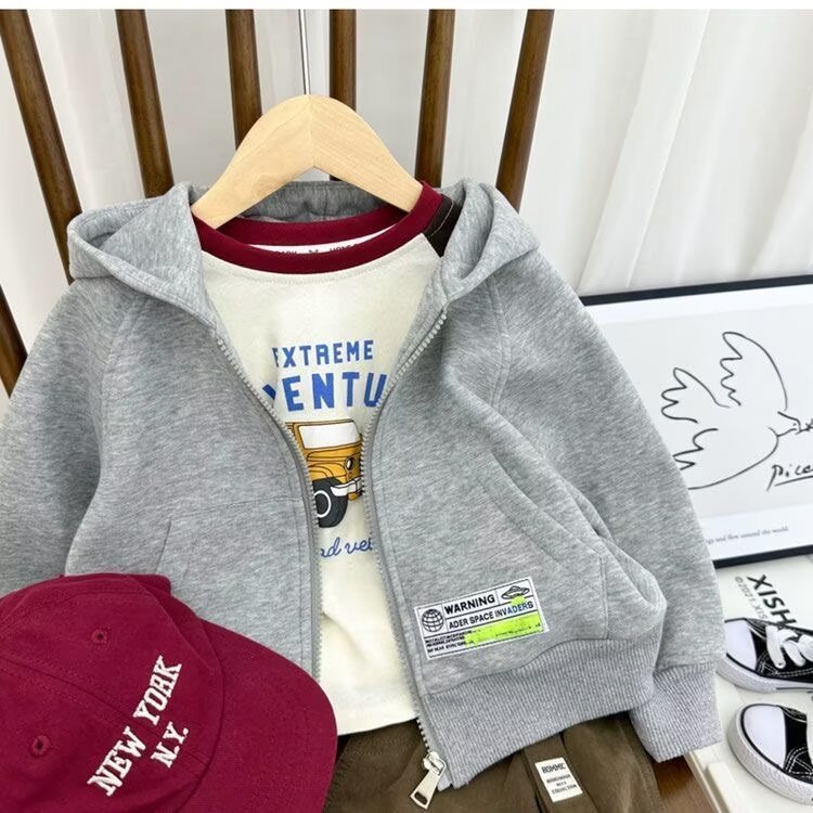 소년의 봄 후드 재킷 2024 새로운 어린이 캐주얼 스포츠 후드 셔츠 소년 봄과 가을 지퍼 카디건