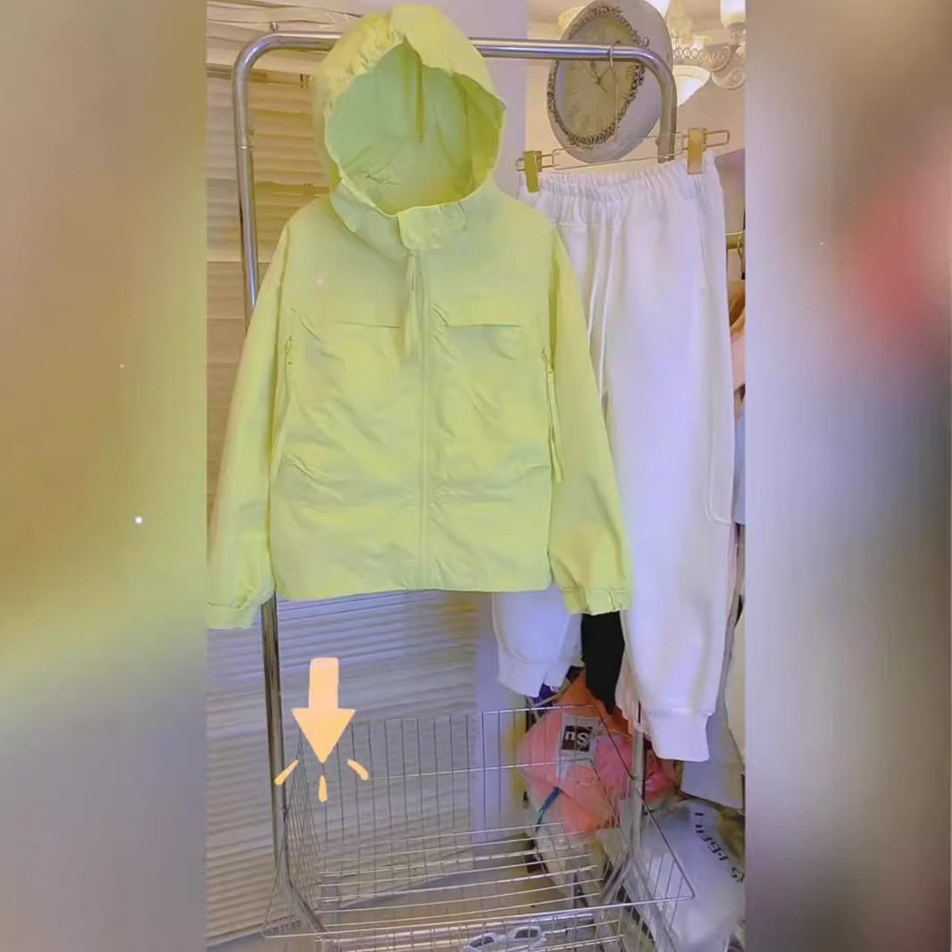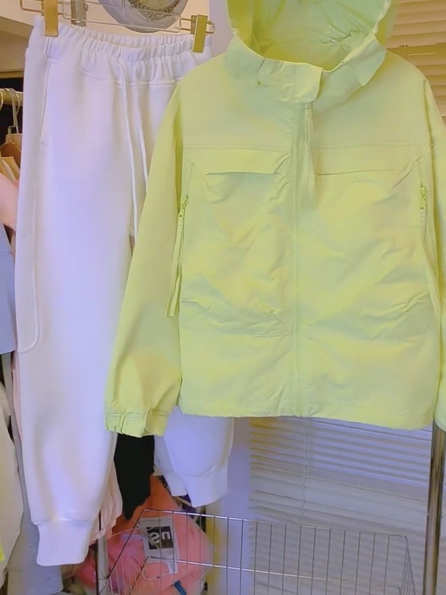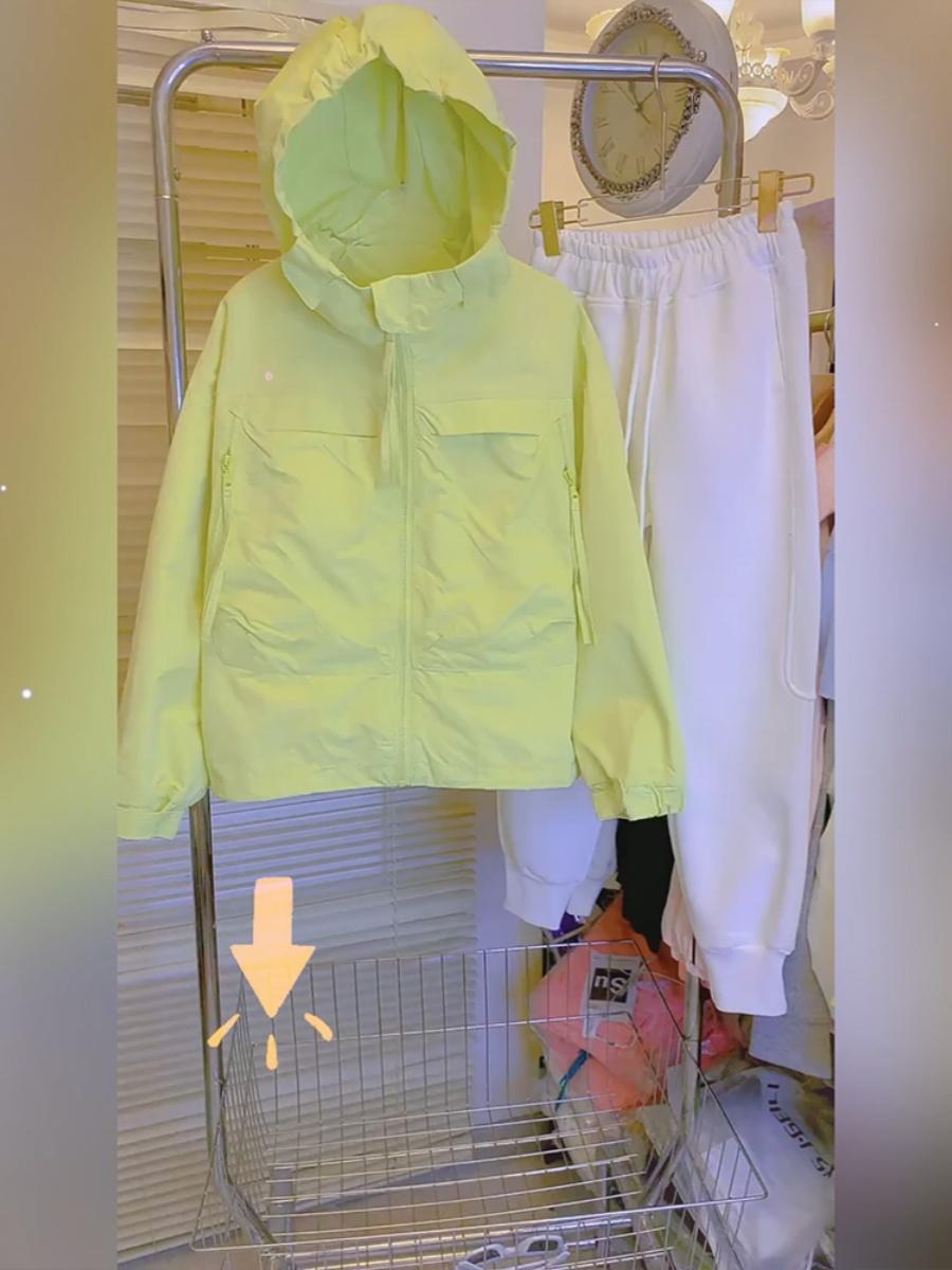 한국 스타일 느슨한 캐주얼 후드 큰 포켓 지퍼 노란색 충전 옷 여성의 2024 봄 선 스크린 작업 코트 코트스토어 가기