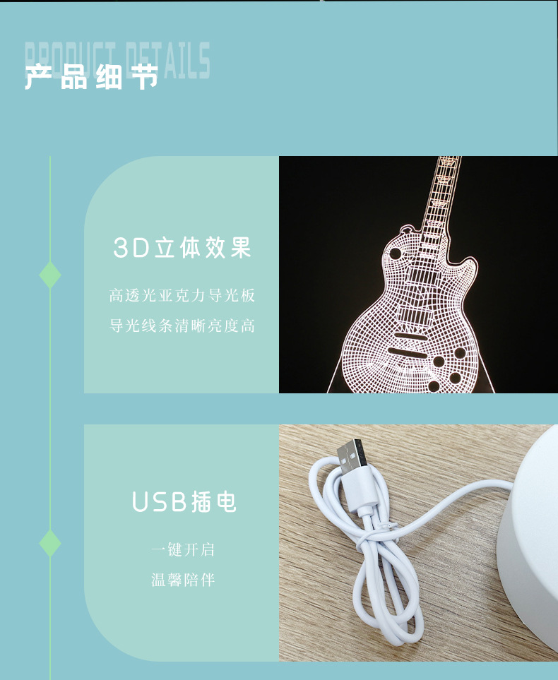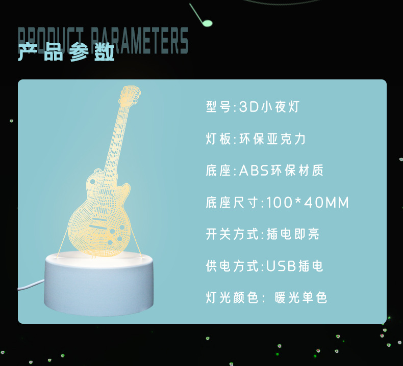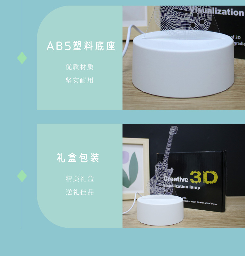 창의적인 아크릴 3D 무드등 USB 전원 분위기 조명 침실 침대 옆등 단색 따뜻한 빛 무드등 도매