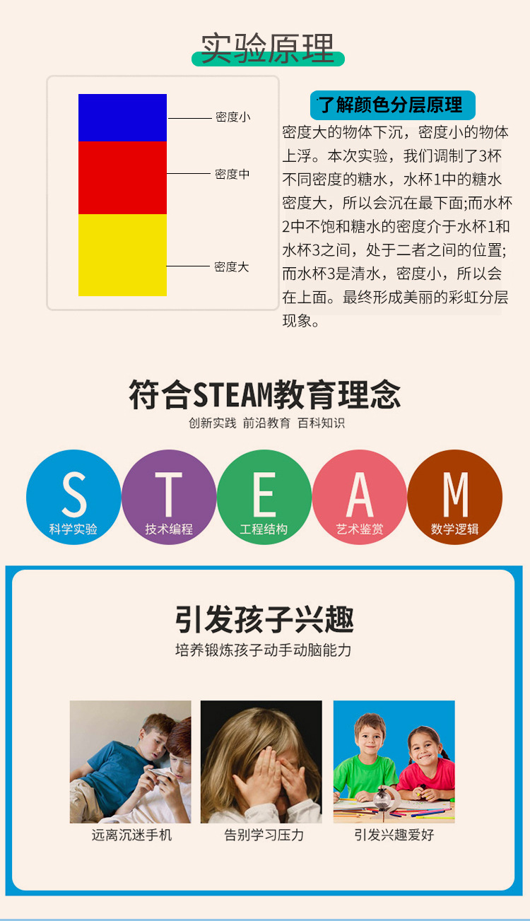 학생 과학 실험 DIY 무지개 물 증기 기술 작은 생산 밀도 분리 액체 층 재료 패키지스토어 가기