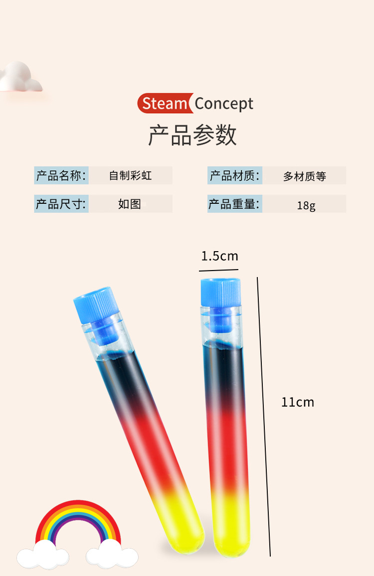 학생 과학 실험 DIY 무지개 물 증기 기술 작은 생산 밀도 분리 액체 층 재료 패키지