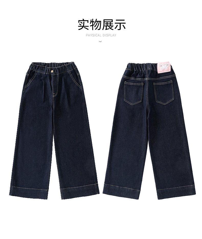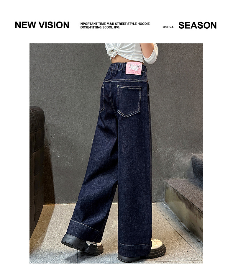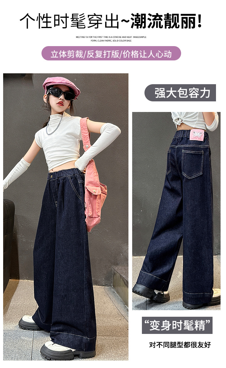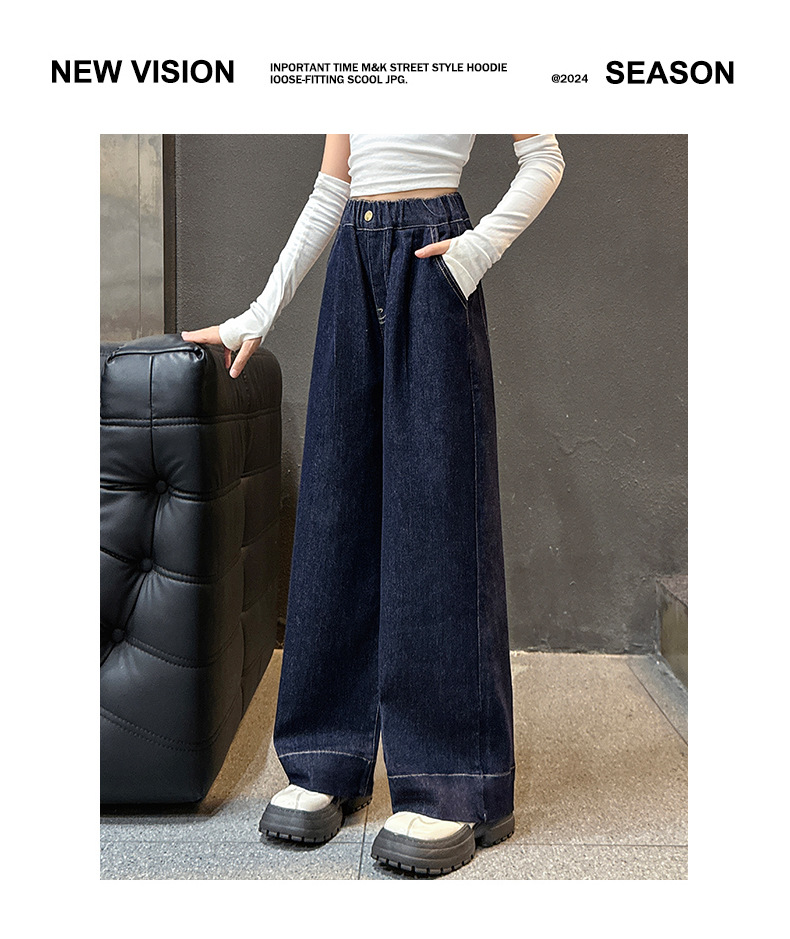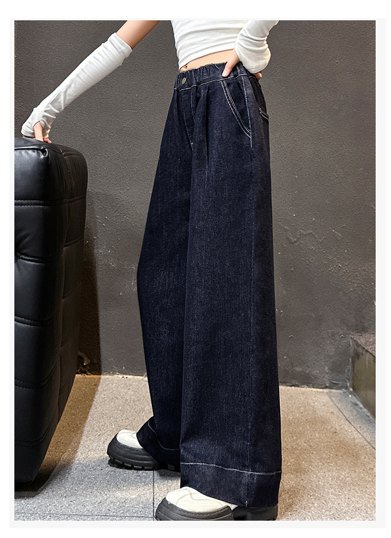 소녀 순수한 색 넓은 다리 바지 2025 봄과 가을 새로운 스타일 느슨한 한국 다크 블루 청바지스토어 가기