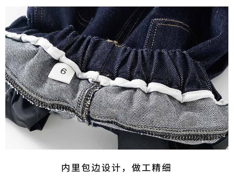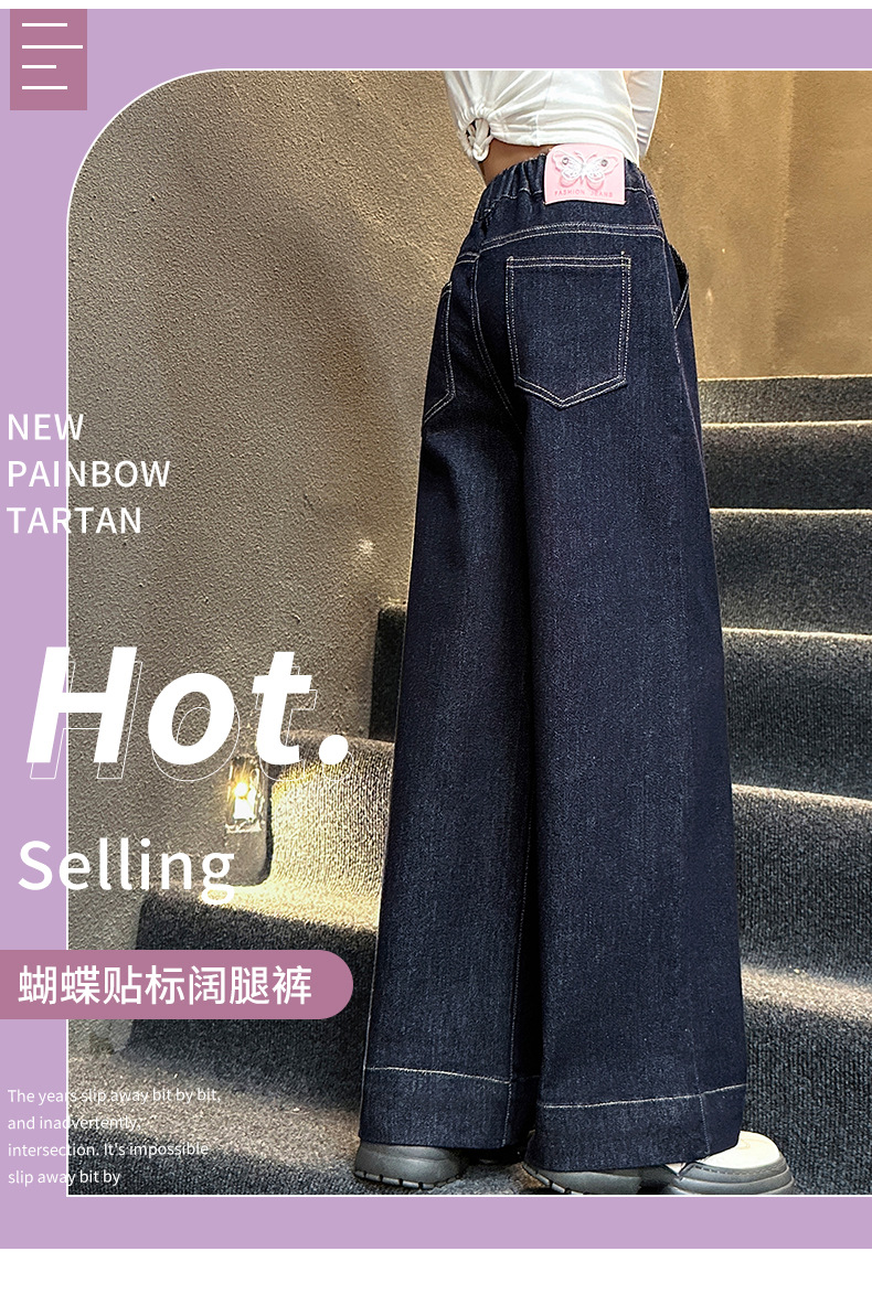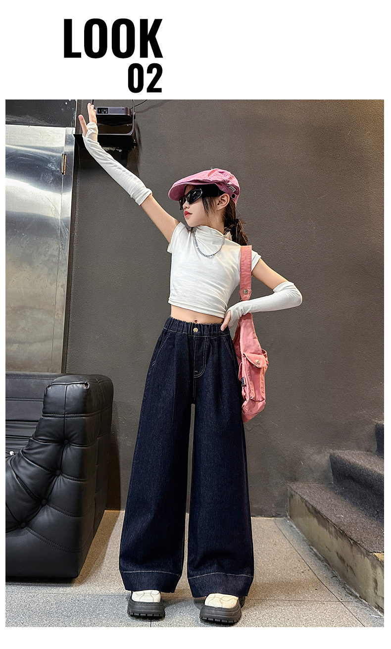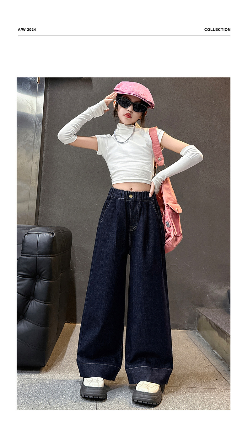 소녀 순수한 색 넓은 다리 바지 2025 봄과 가을 새로운 스타일 느슨한 한국 다크 블루 청바지스토어 가기