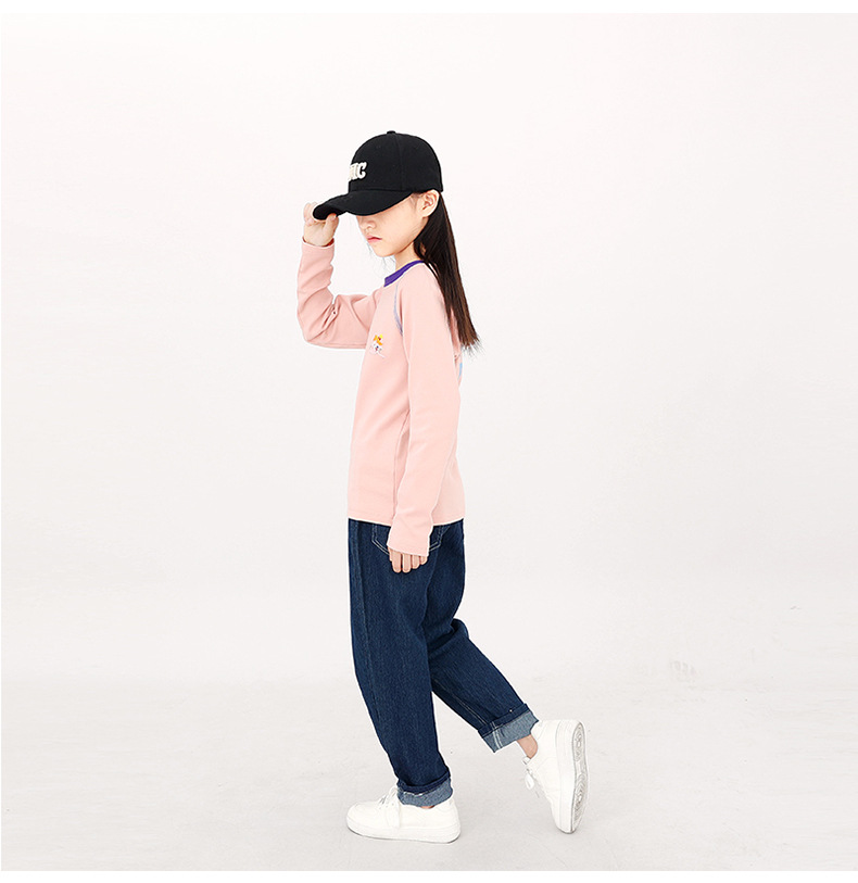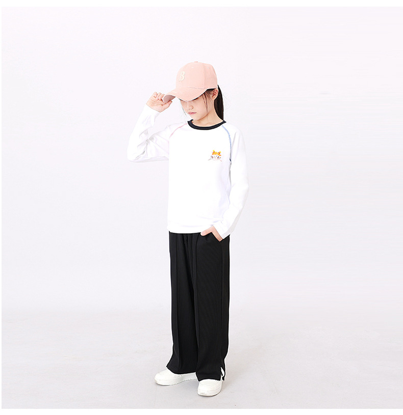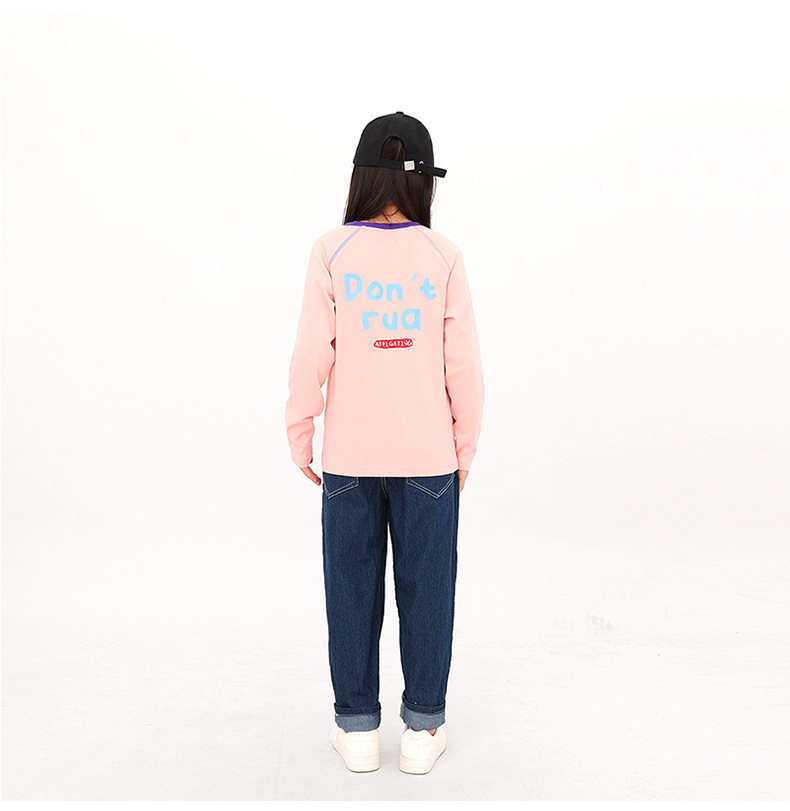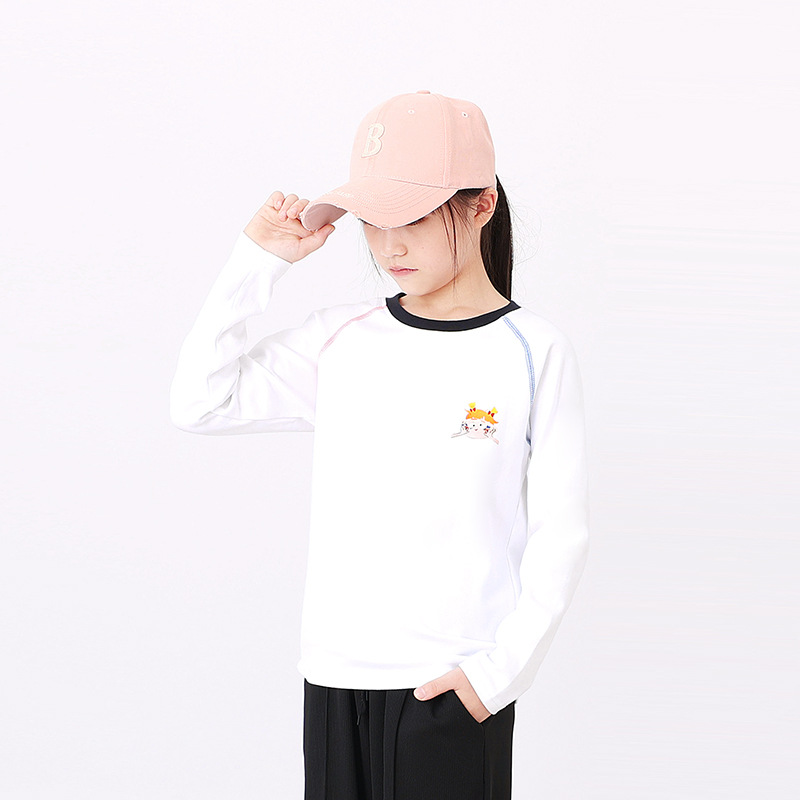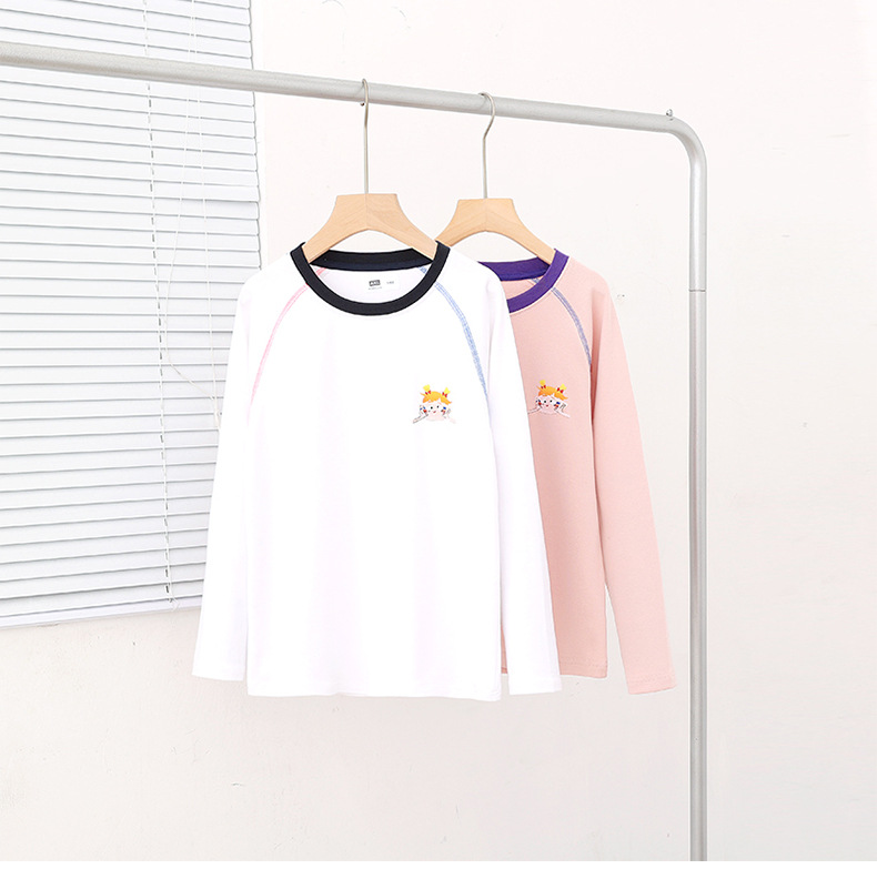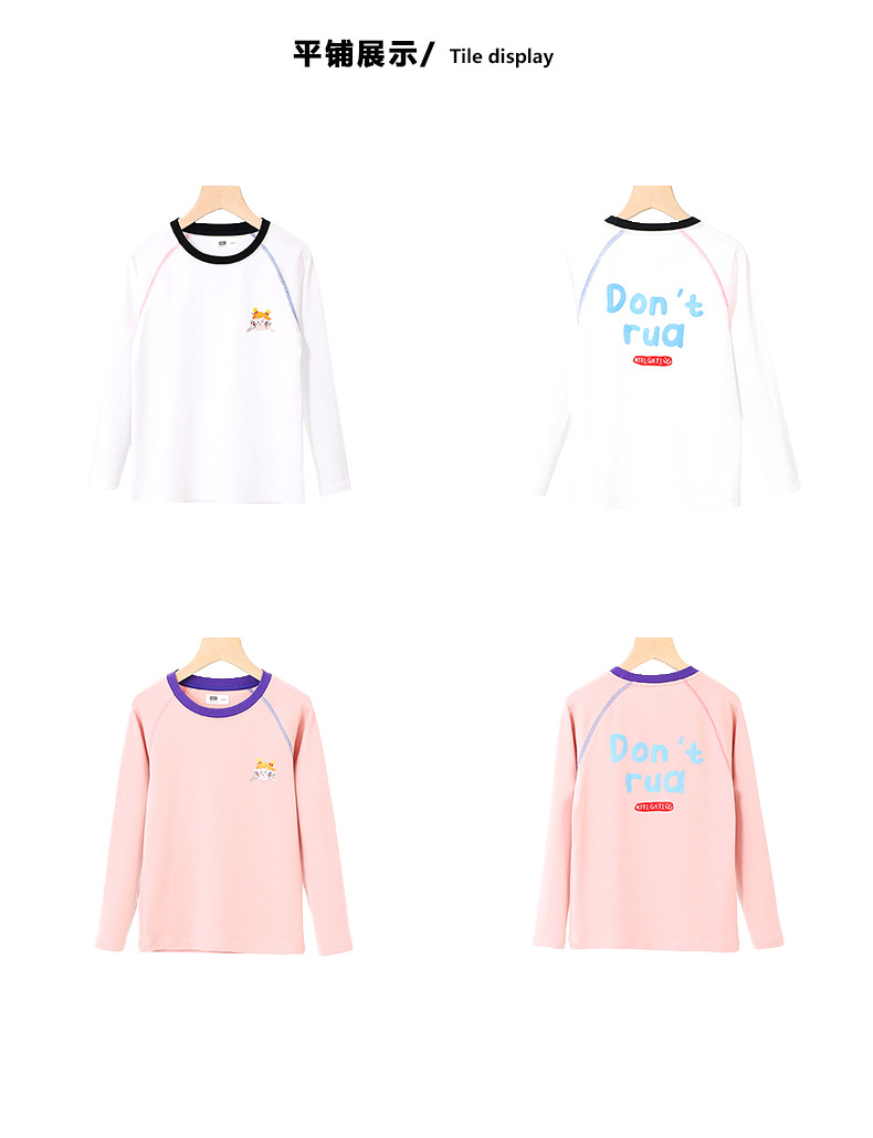 봄과 가을 한국 스타일 새 여자 따뜻한 긴팔 티셔츠 큰 어린이 대비 색 라운드 넥 탑 어린이 바닥 셔츠 도매스토어 가기