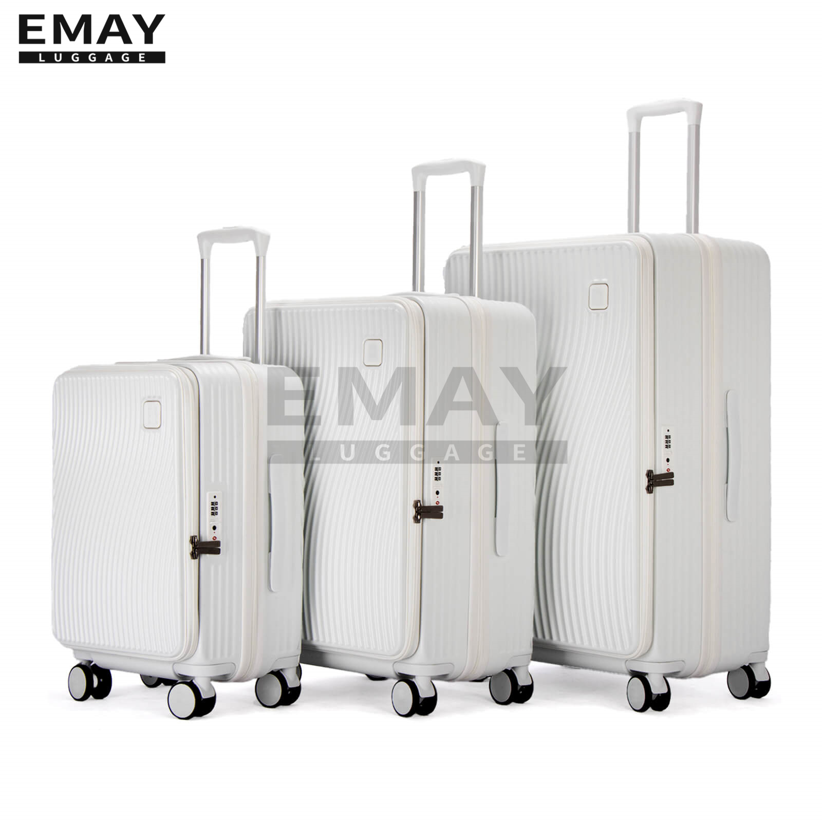 跨境出口旅行箱日本拉链前开盖行李箱侧开口拉杆箱OEM EMAY Luggage
