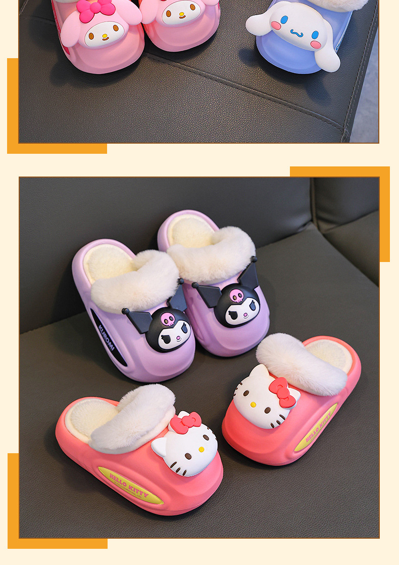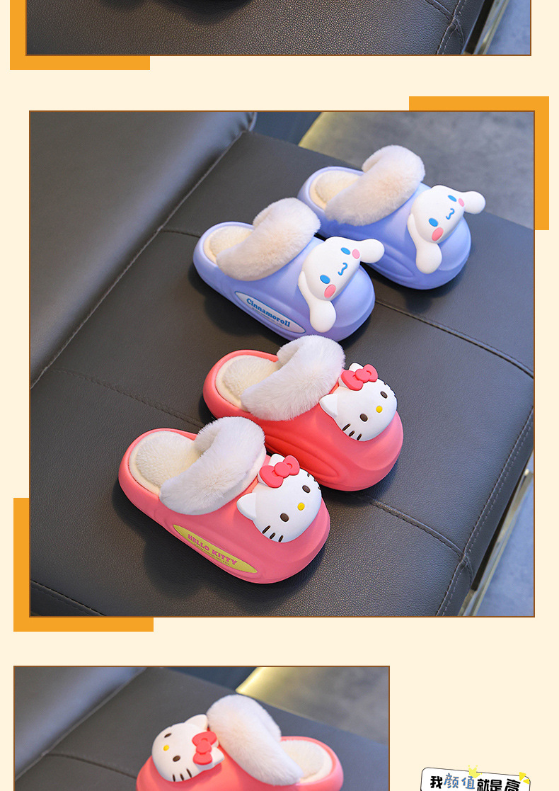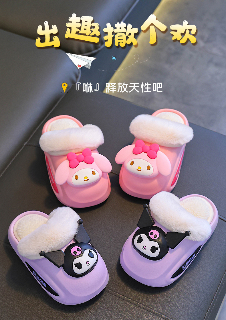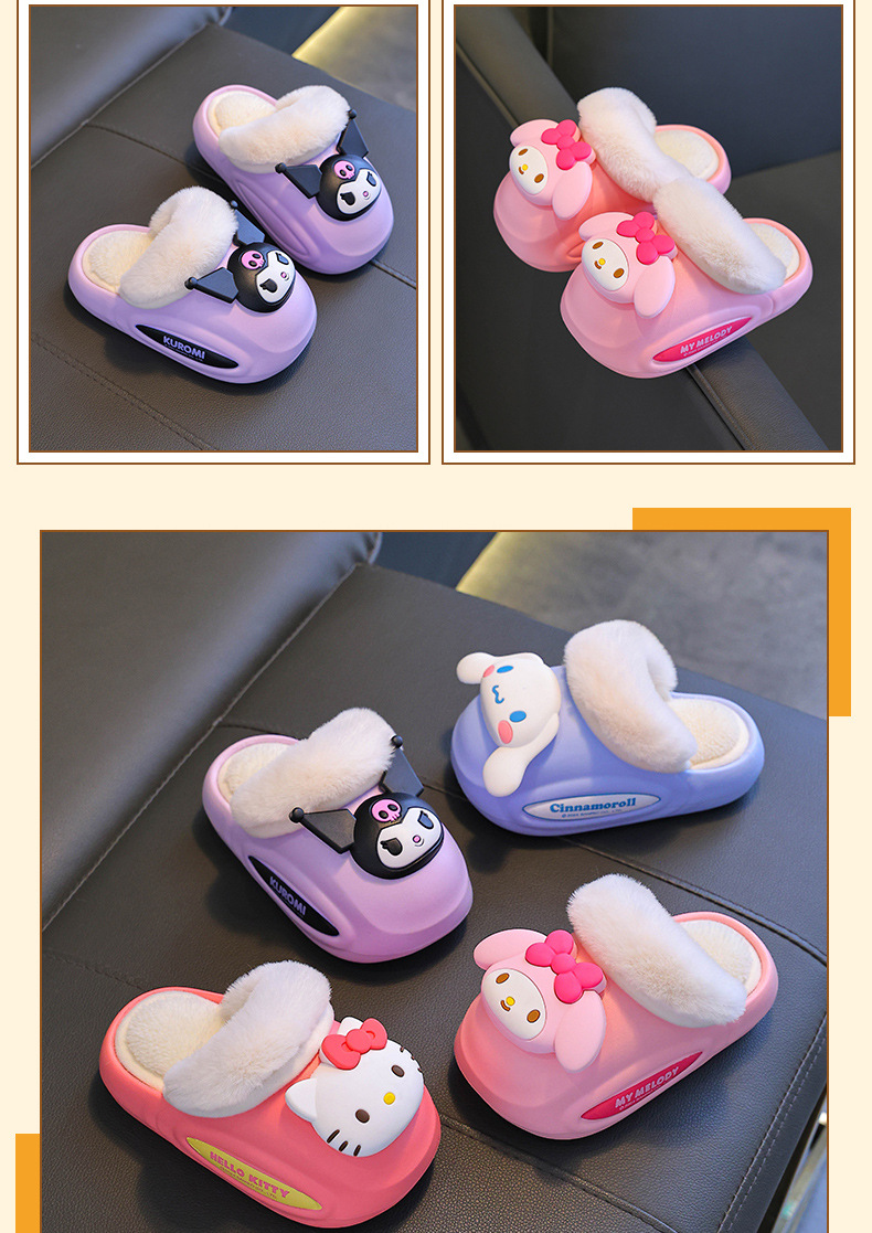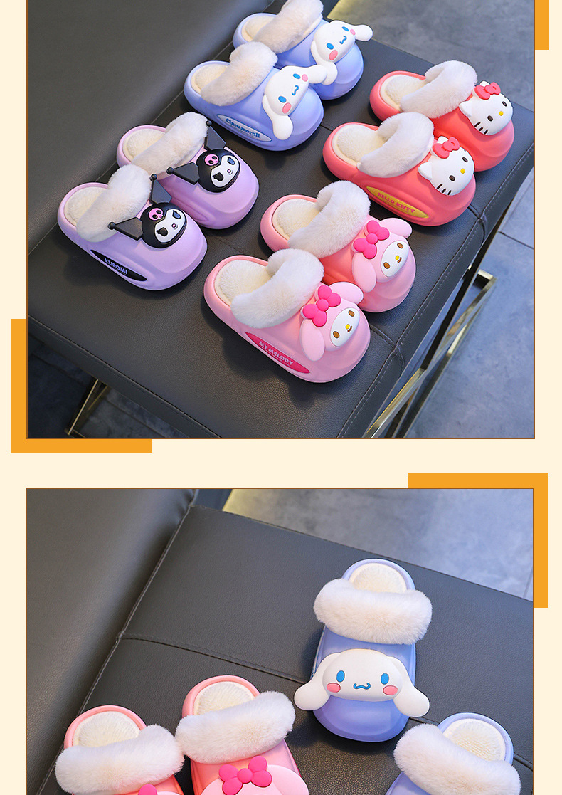 산리오 겨울 어린이 면화 슬리퍼 소녀의 따뜻한 기모 멜로디 방수 가방 중소 어린이 아기 면화 슬리퍼