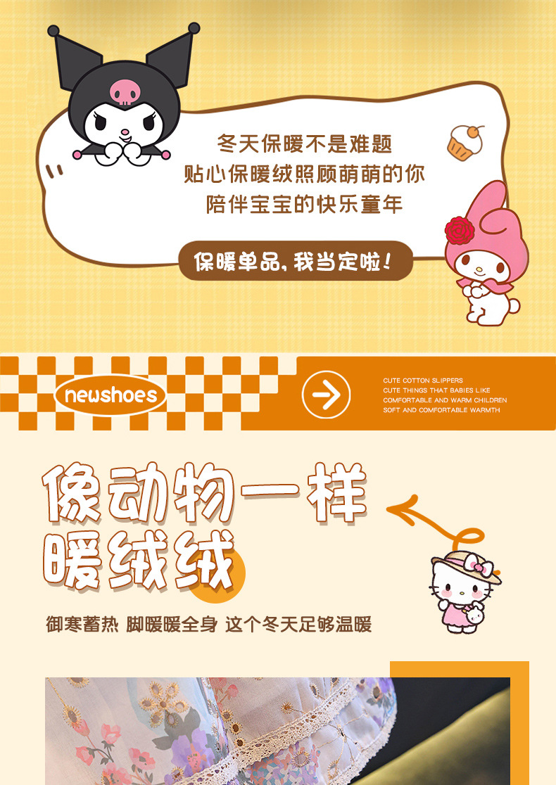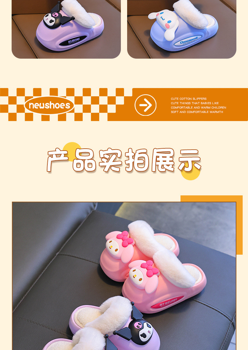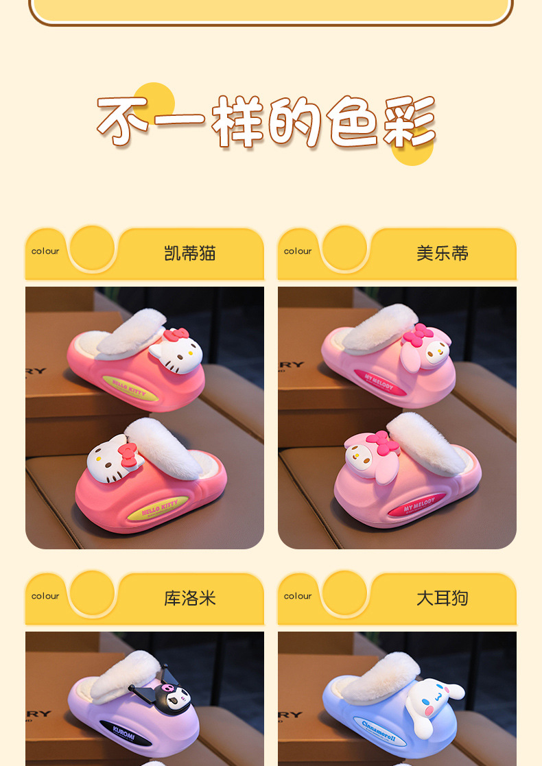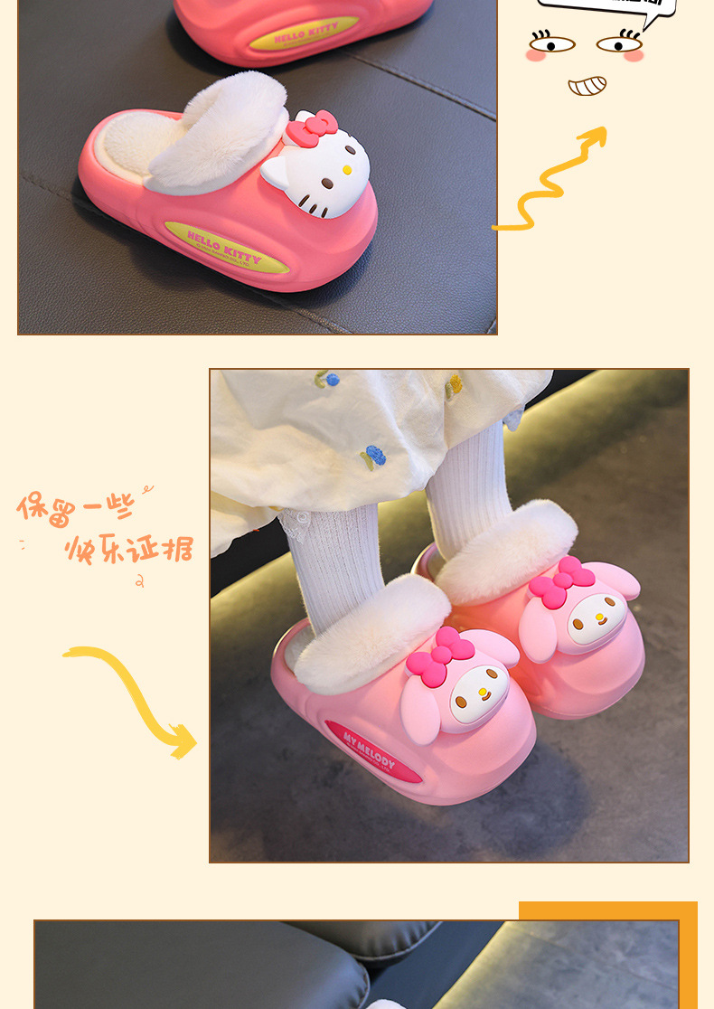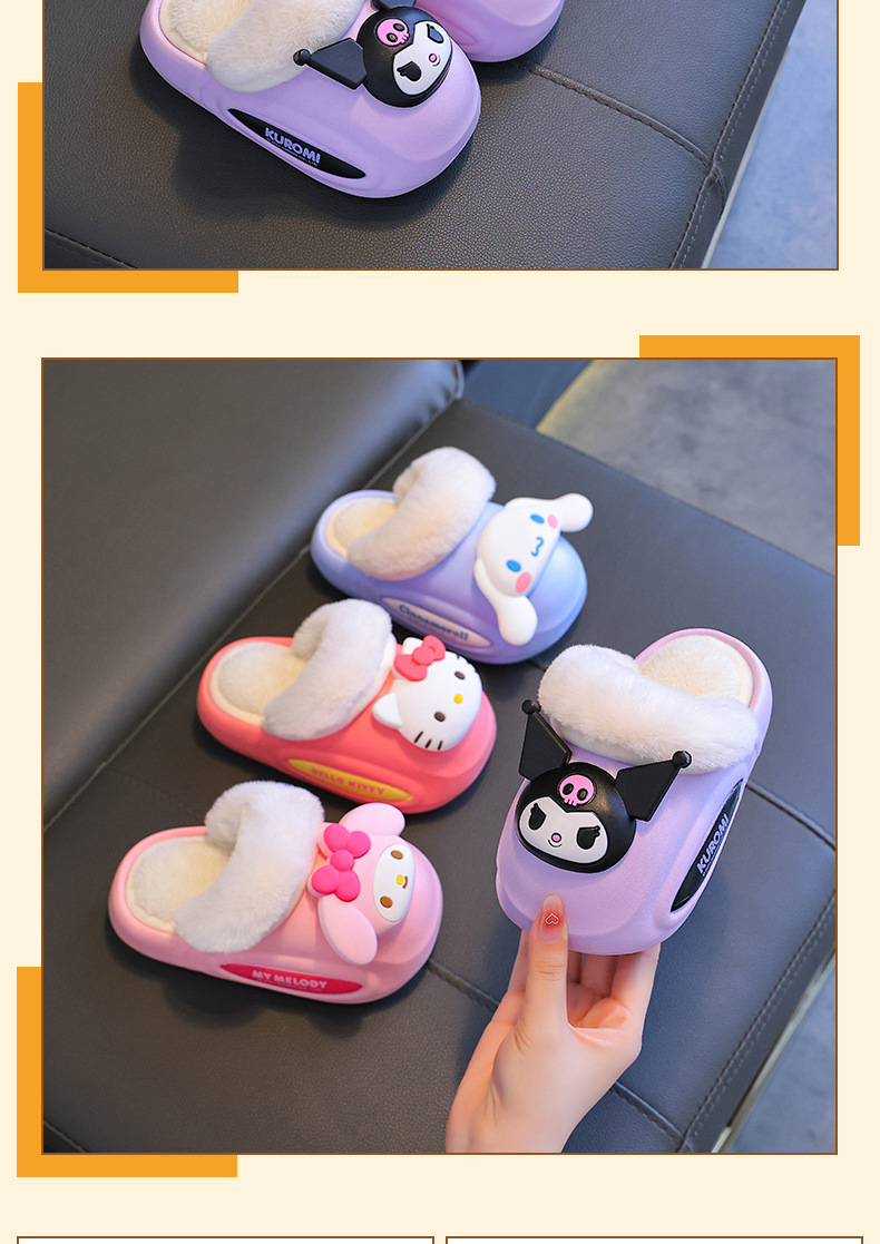 산리오 겨울 어린이 면화 슬리퍼 소녀의 따뜻한 기모 멜로디 방수 가방 중소 어린이 아기 면화 슬리퍼