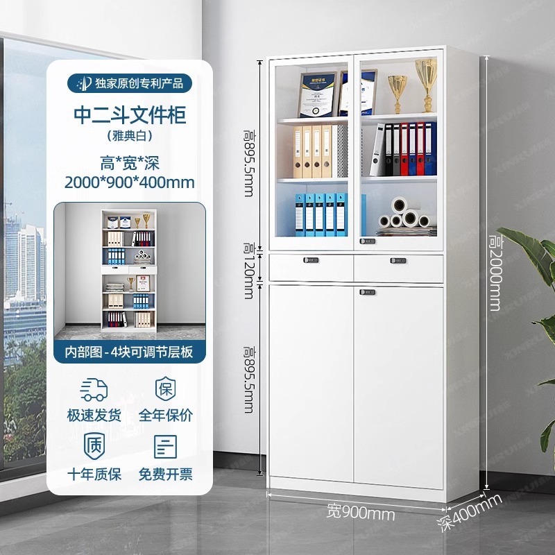 • 2m 높이의 유리문 이중 섹션 파일 캐비닛