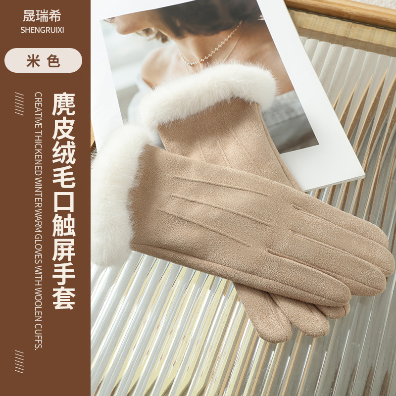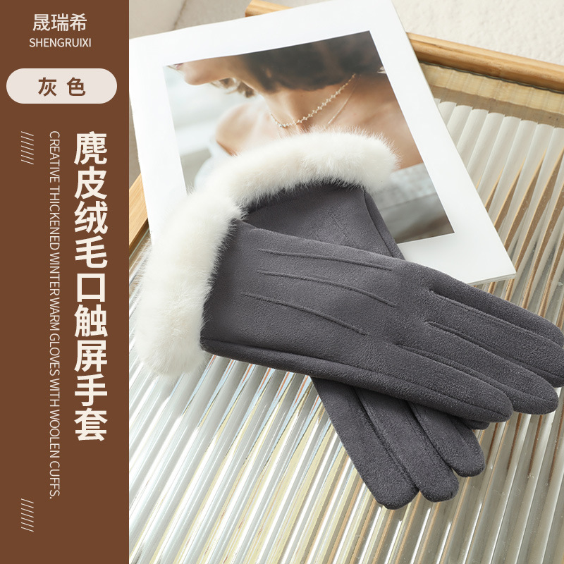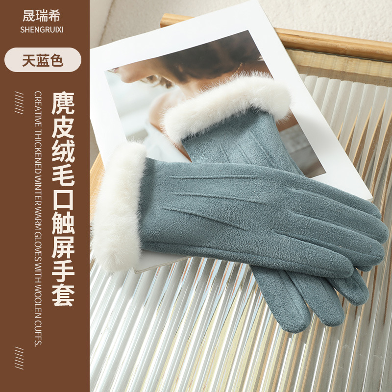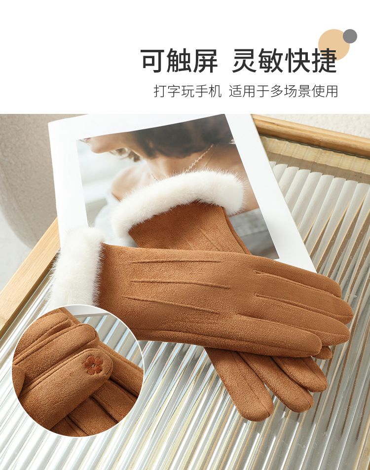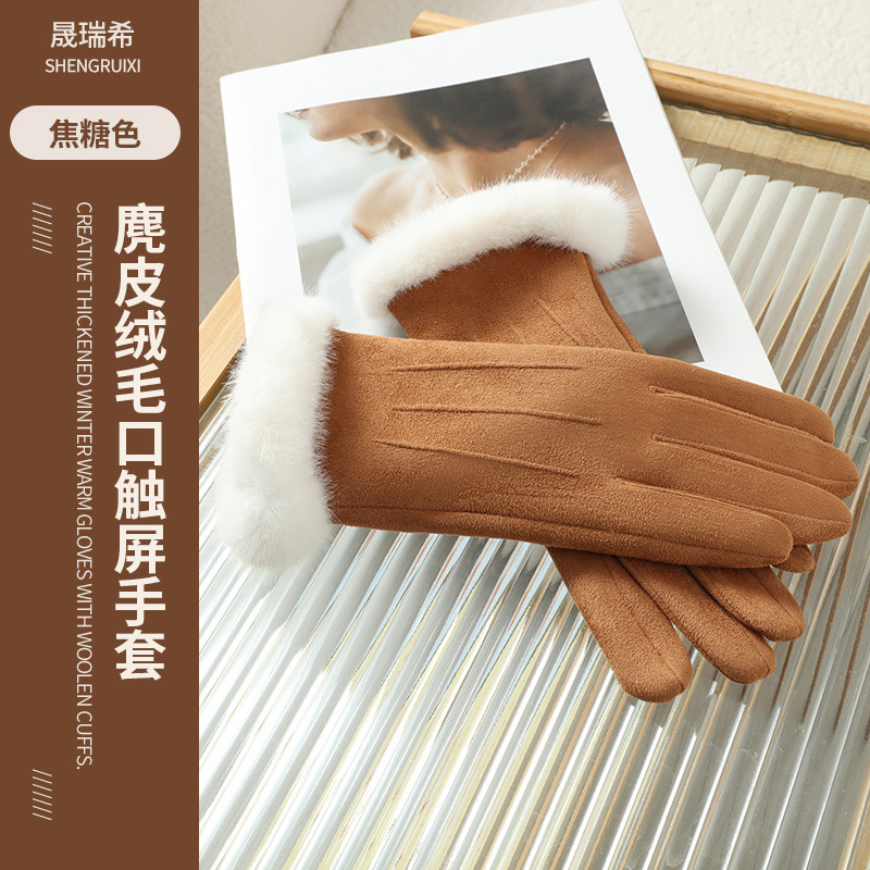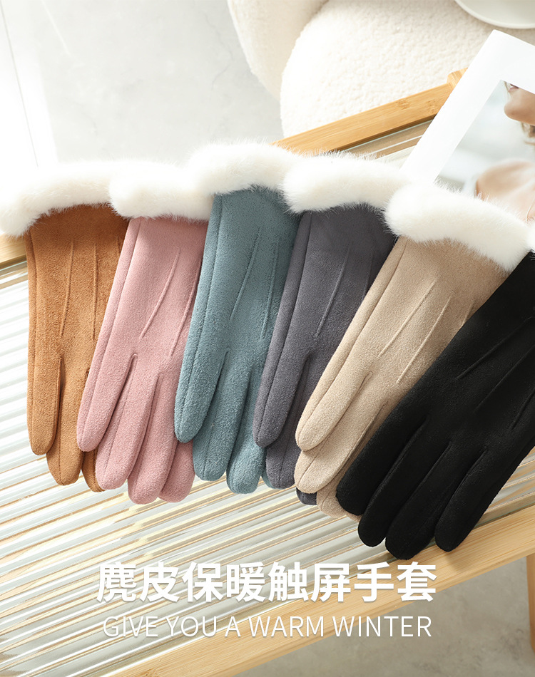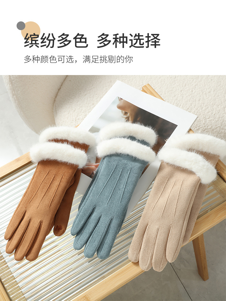 2025년 신상 스웨이드 삼선 장갑 도매 보온 플러스 벨벳 두꺼운 부드러운 터치스크린 대학 스타일스토어 가기