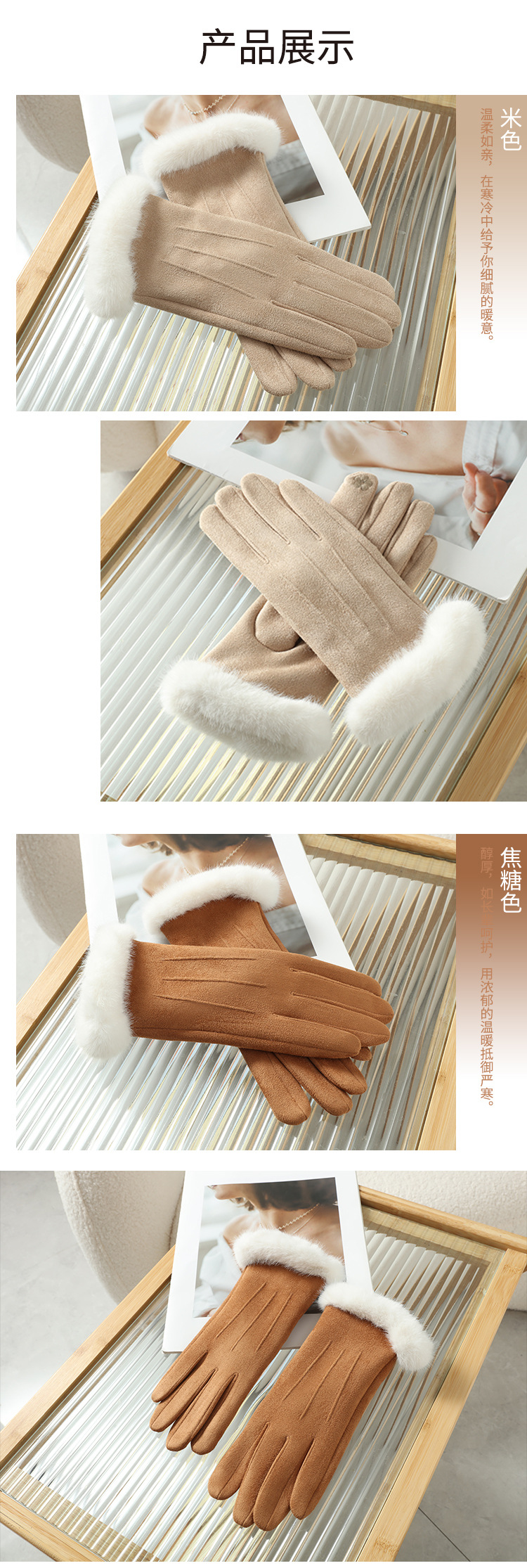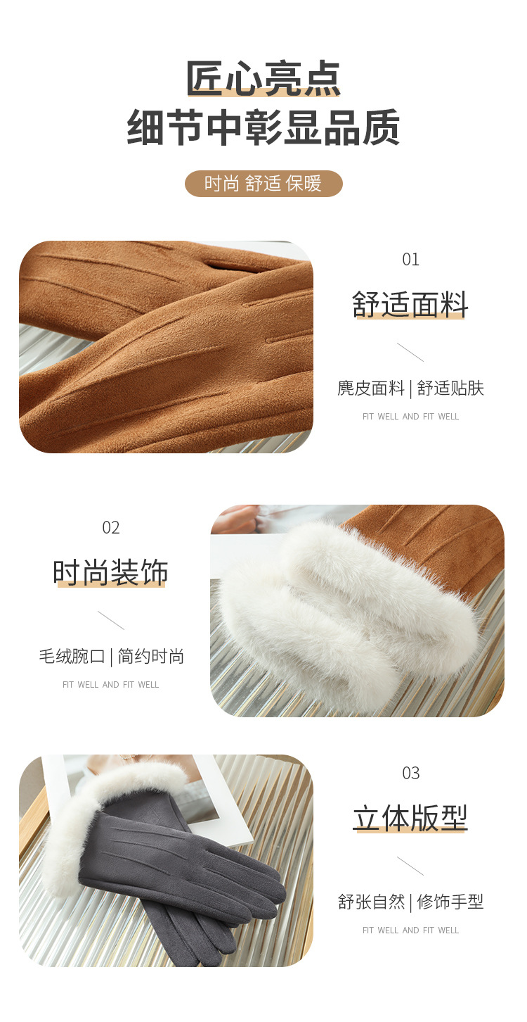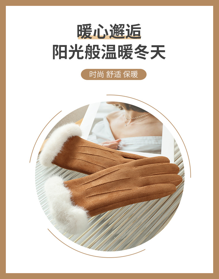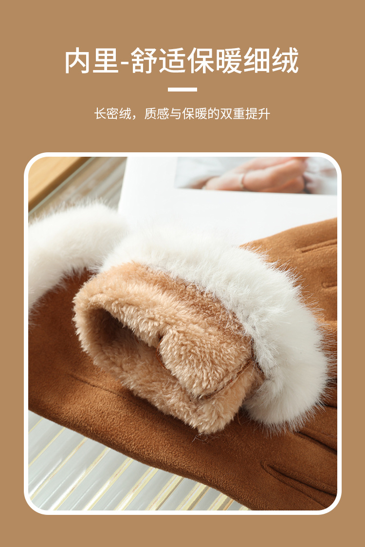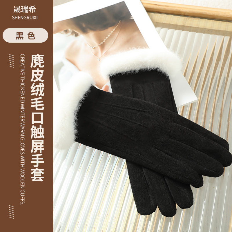 2025년 신상 스웨이드 삼선 장갑 도매 보온 플러스 벨벳 두꺼운 부드러운 터치스크린 대학 스타일스토어 가기