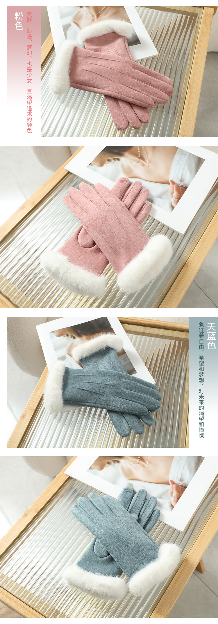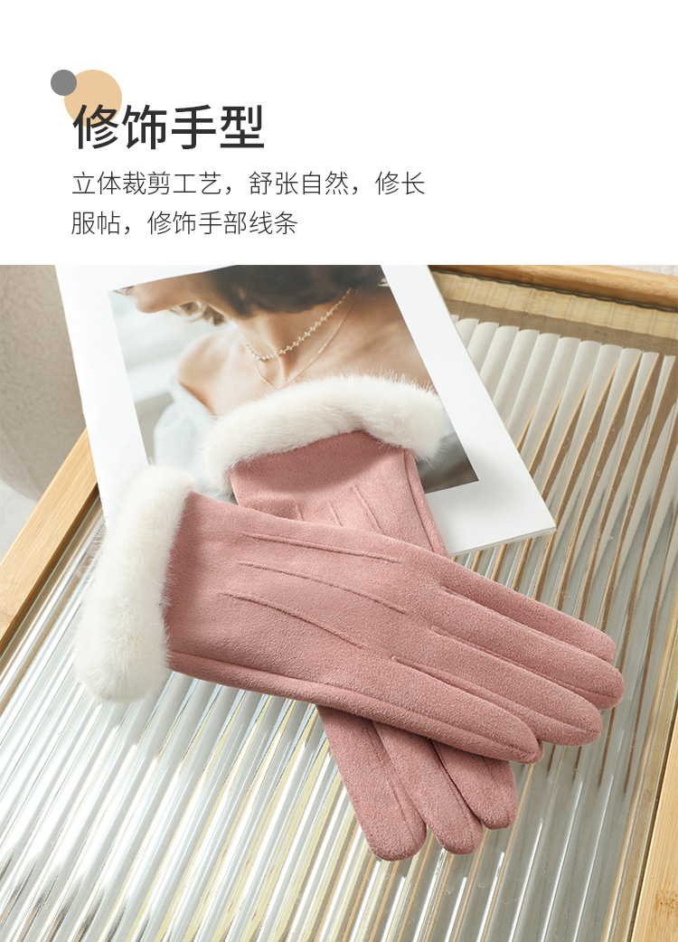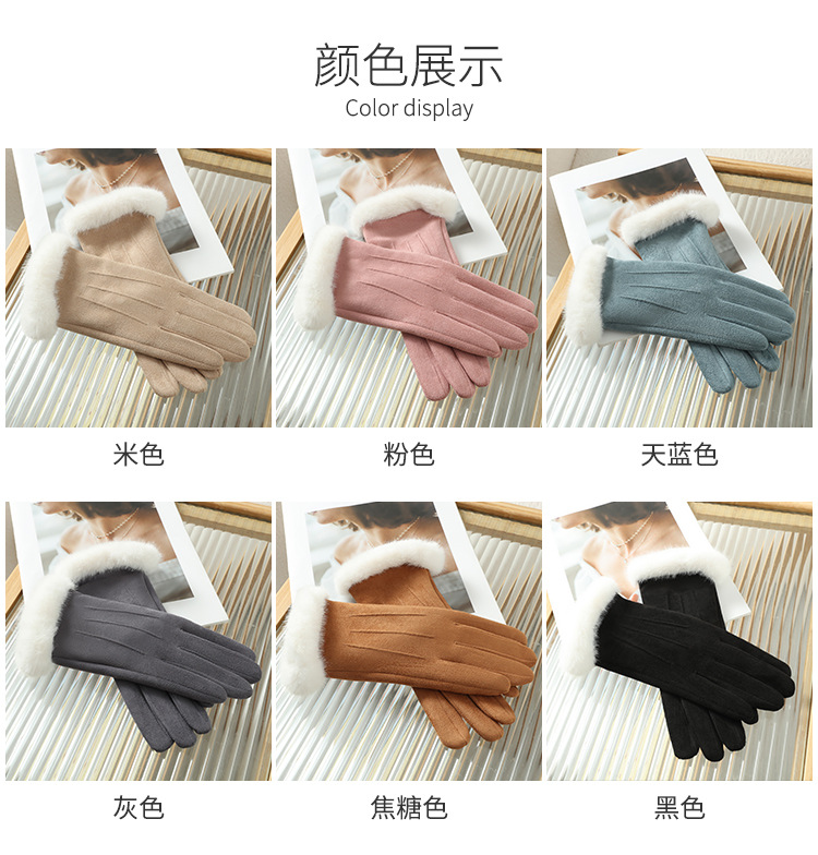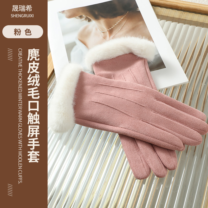 2025년 신상 스웨이드 삼선 장갑 도매 보온 플러스 벨벳 두꺼운 부드러운 터치스크린 대학 스타일