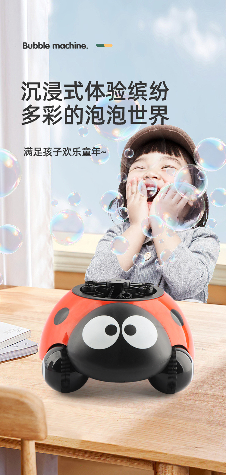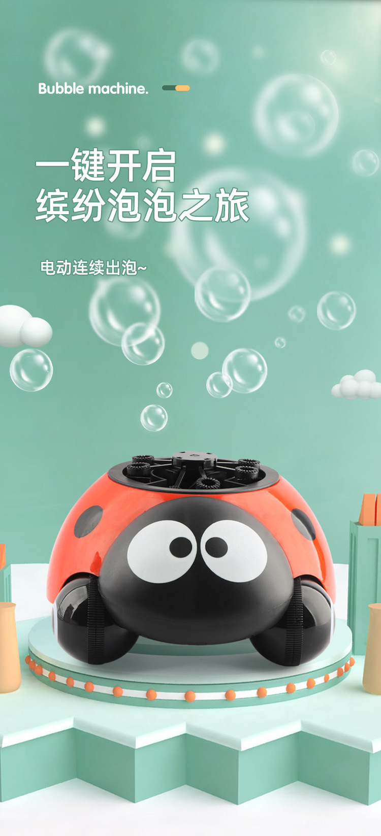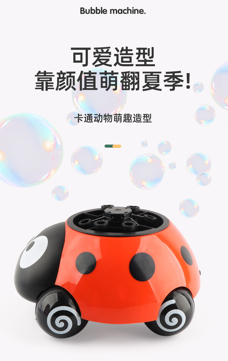 국경 간 새로운 딱정벌레 거품 기계 어린이 야외 Q 귀여운 7 성급 무당 벌레 전기 거품 장난감 마구간 선물스토어 가기