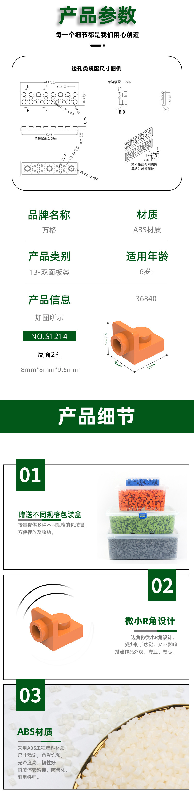 완게 어린이 교육용 DIY 소형 블록 국내산 블록 36840 호환 조립 부품 뒷면 2홀 도매