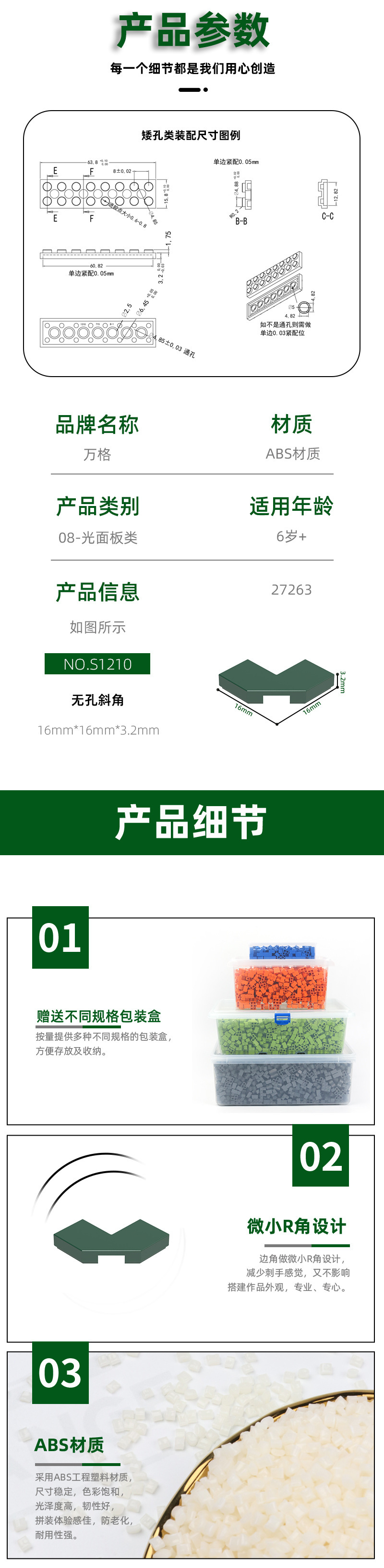 Wange Chenghai diy 작은 입자 국내 빌딩 블록 호환 27263 조립 부품 비 다공성 베벨 장난감 도매