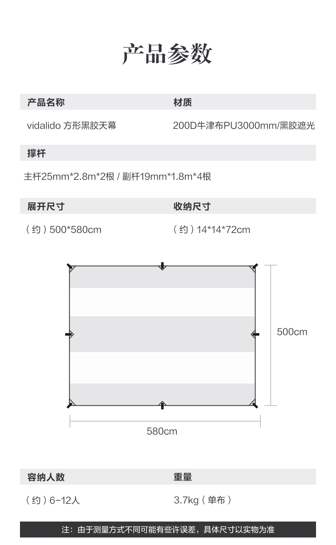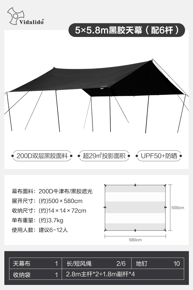 • 5*5.8 검은색 사각형 캐노피(단일 커튼)