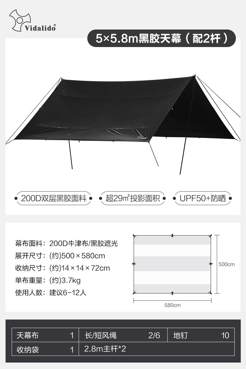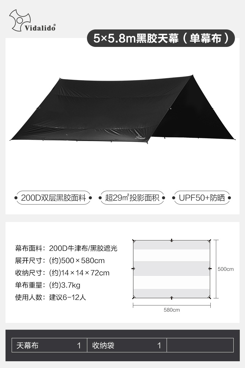 Vidalido Square 검은 접착제 캐노피 야외 캠핑 자외선 차단 캐노피 그늘 검은 커튼