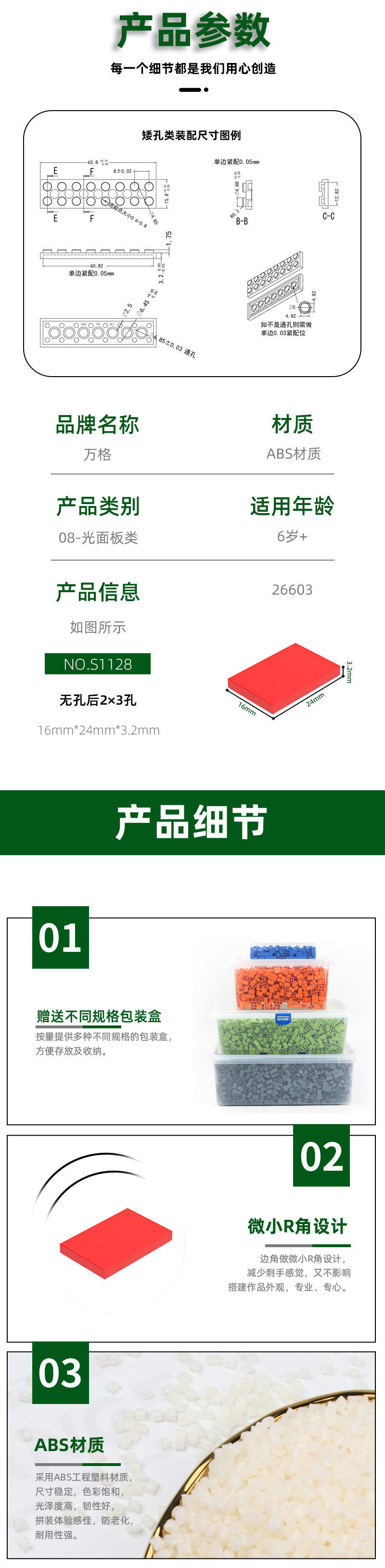 완게 어린이 장난감 소형 블록 26603 조립 부품 무구멍 2×3 구멍 부품 블록 부품