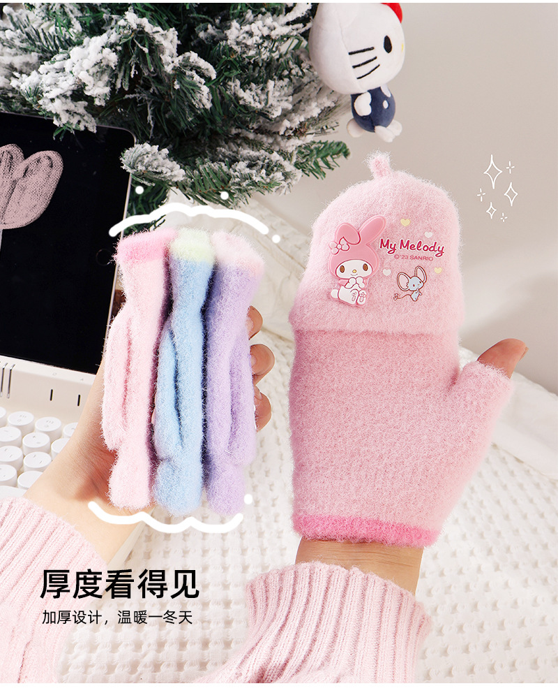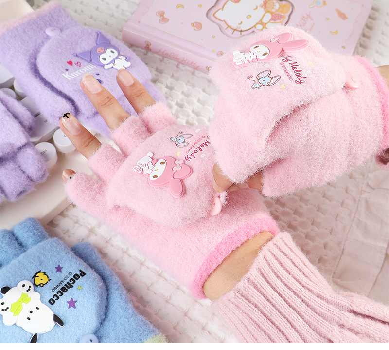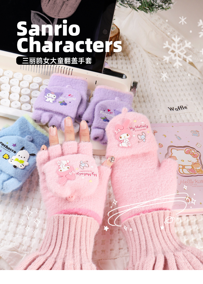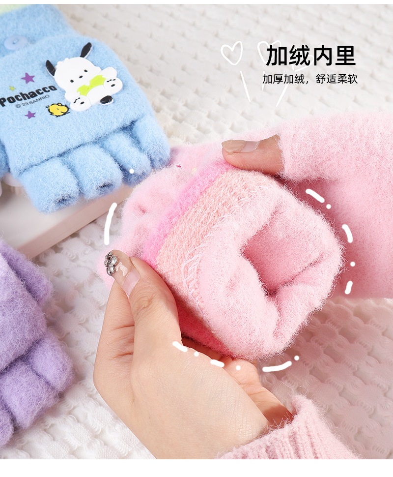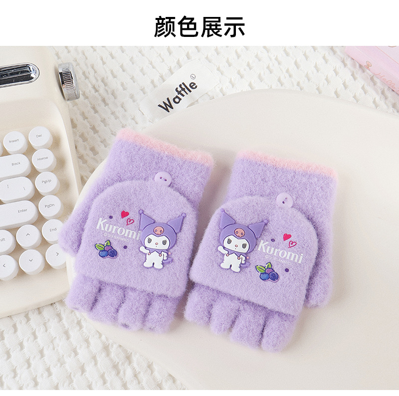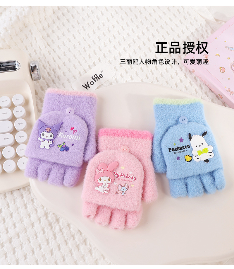 산리오 정품 공인 큰 소녀 플립 장갑 귀여운 만화 귀여운 재미 기모 편안한 소프트 장갑