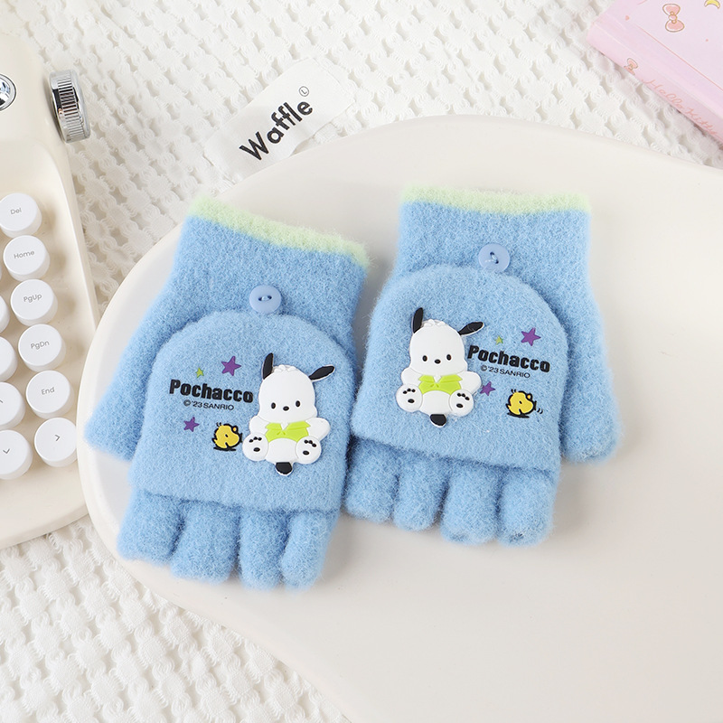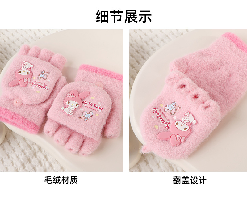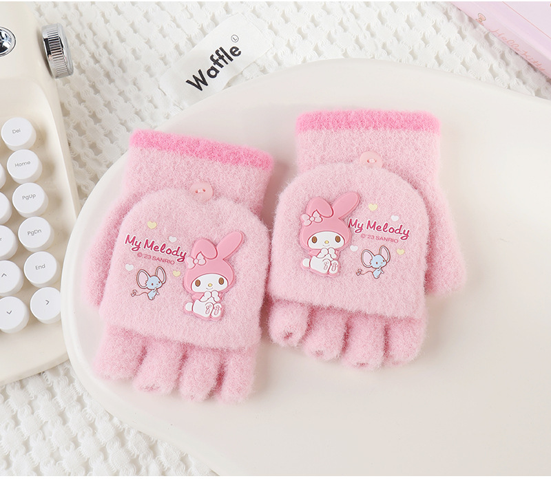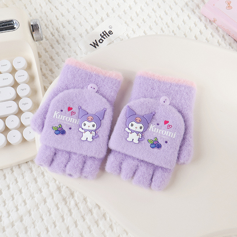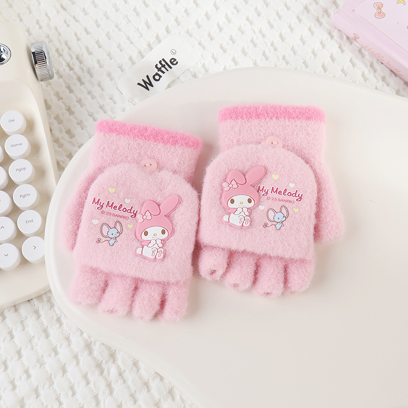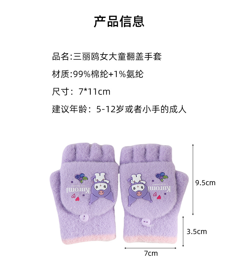 산리오 정품 공인 큰 소녀 플립 장갑 귀여운 만화 귀여운 재미 기모 편안한 소프트 장갑