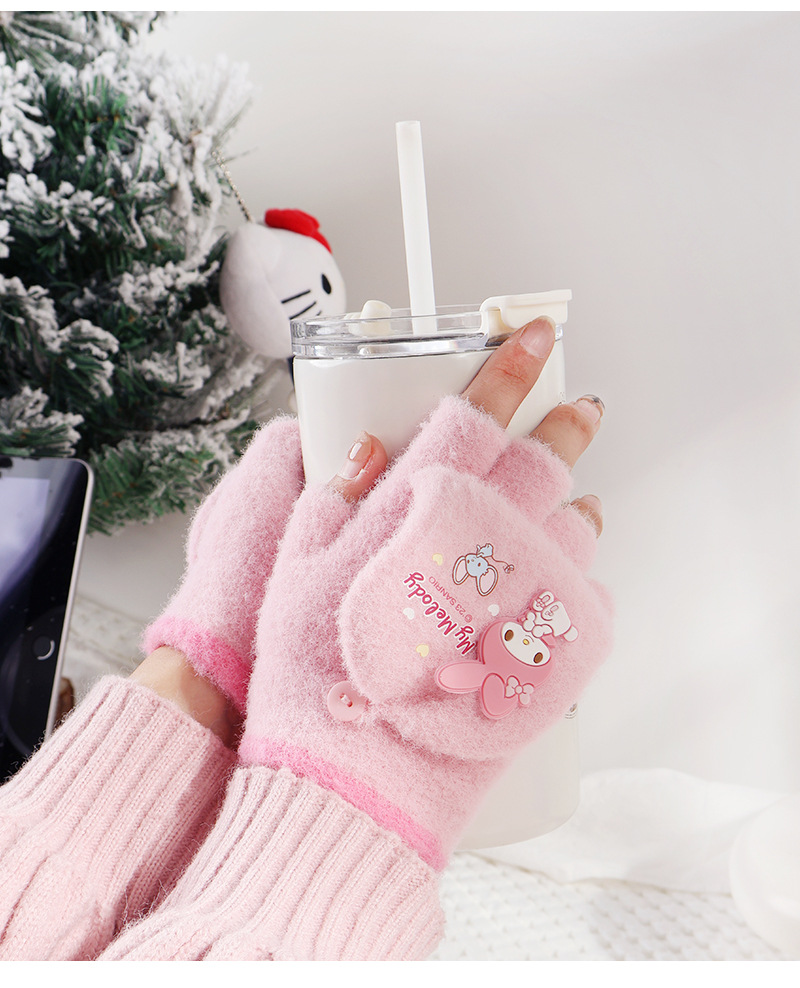 산리오 정품 공인 큰 소녀 플립 장갑 귀여운 만화 귀여운 재미 기모 편안한 소프트 장갑스토어 가기