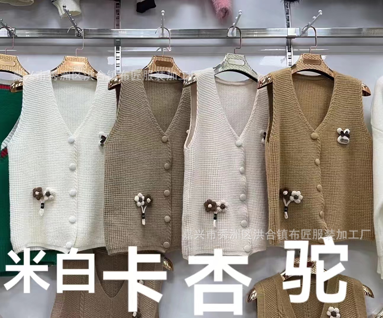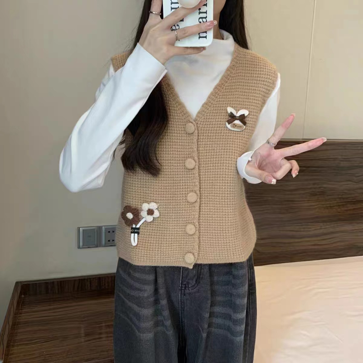 대학 스타일 3 차원 꽃 니트 솔리드 컬러 조끼 여성의 가을과 겨울 새로운 빈티지 V 넥 웨이스트 코트 쌓인 조끼스토어 가기
