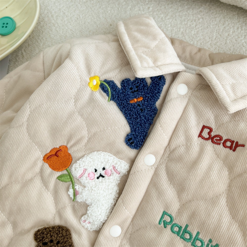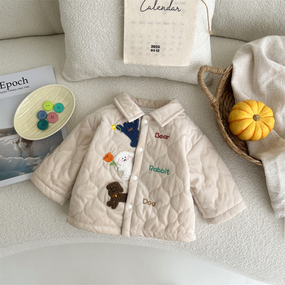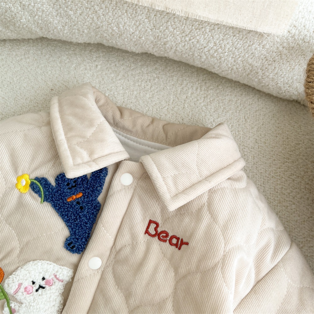 어린이 가을 겨울 두꺼운 보온 재킷, 면 겨울옷, 귀여운 유아용 면옷, 플리스 데님 팬츠 세트스토어 가기
