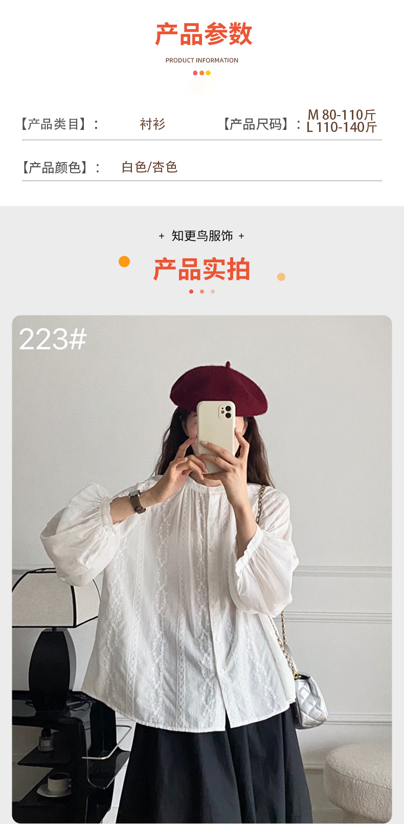 이른 가을 프랑스 셔츠 최고 예술적 신선한 스타일 기질 일본 중공업 여성용 둥근 목 랜턴 슬리브 셔츠스토어 가기