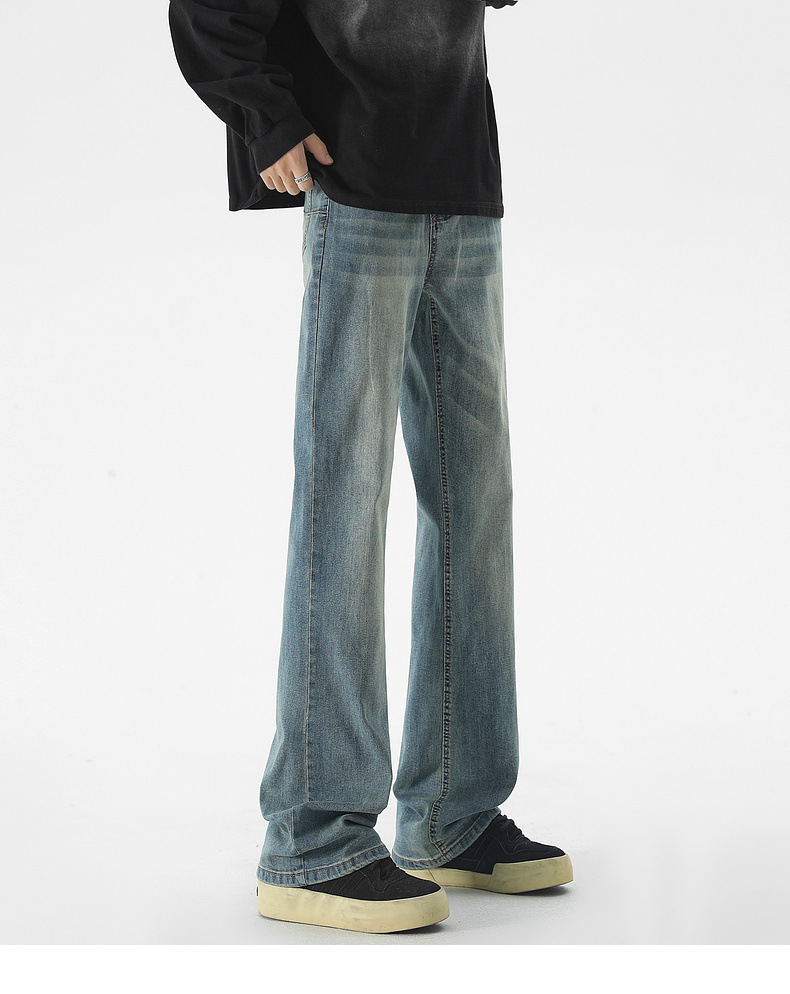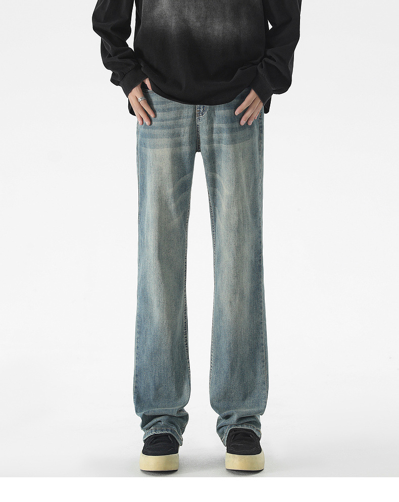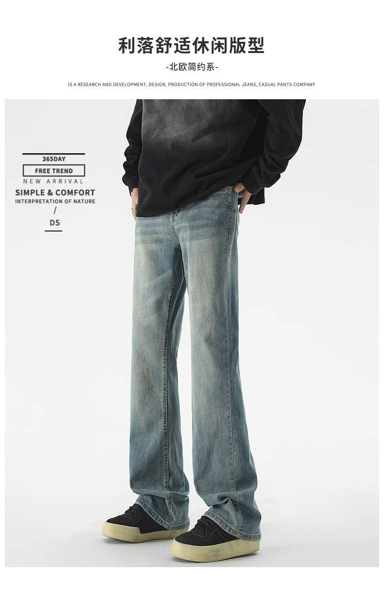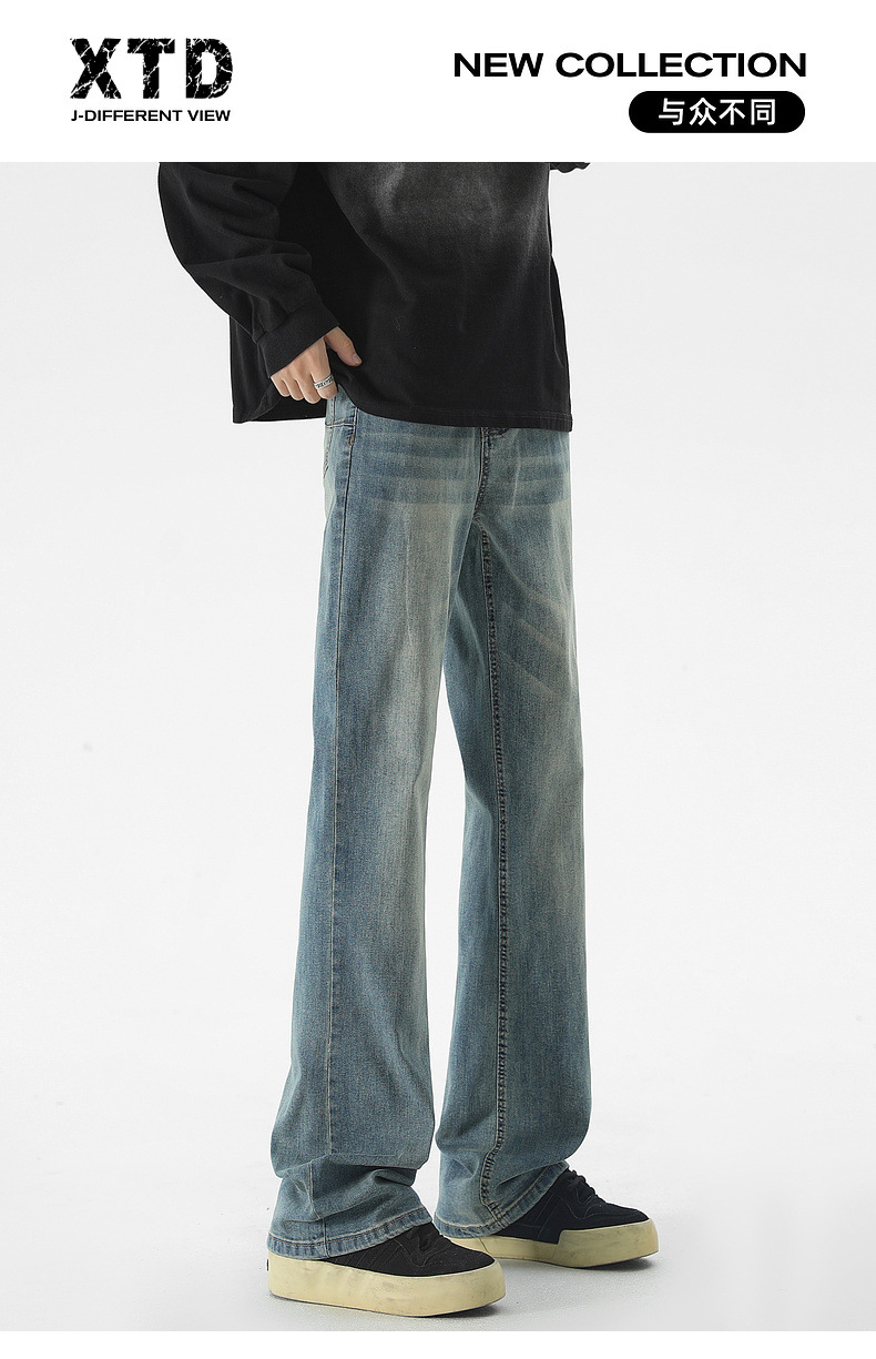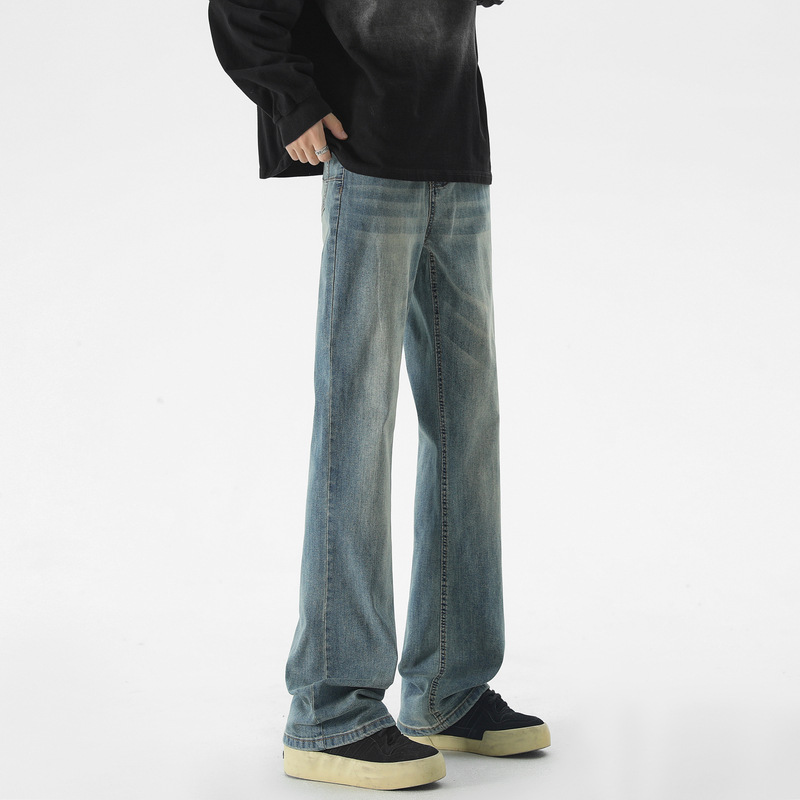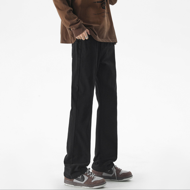 Mu Yuan 남성용 미국식 Xintang 단순 세척 마이크로 라 청바지 남성용 Ins 홍콩 스타일 스트레치 플루톤 핸섬 긴 바지