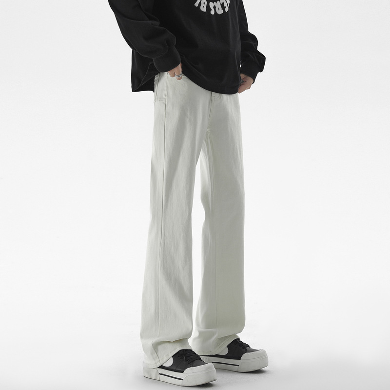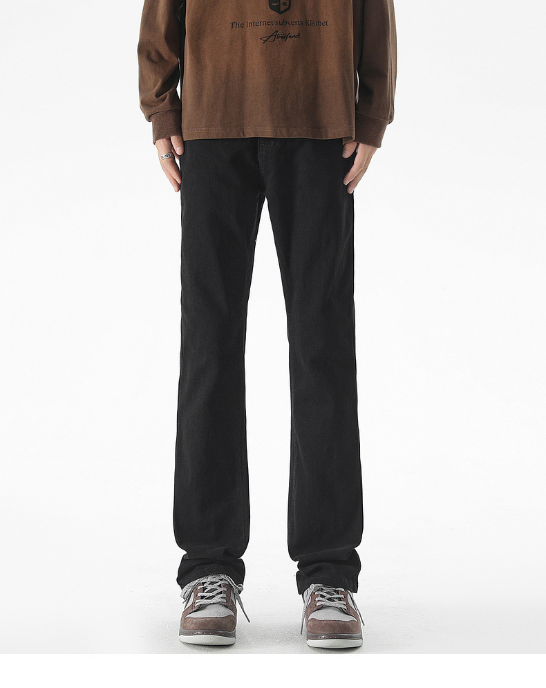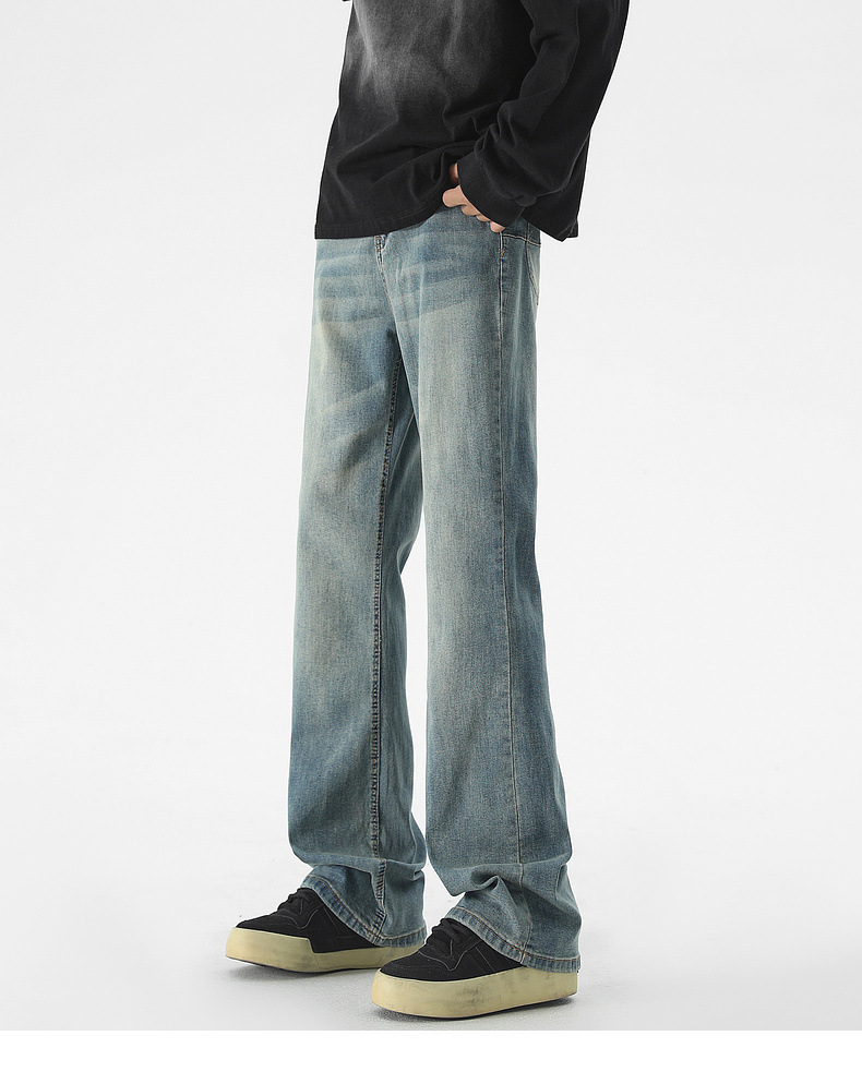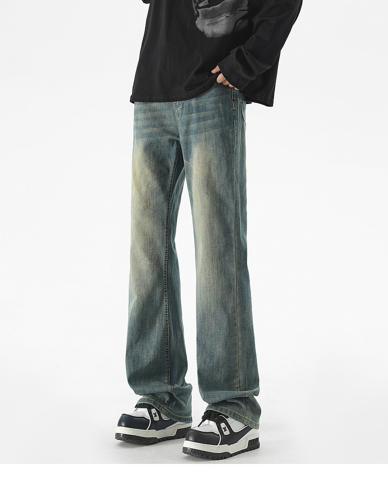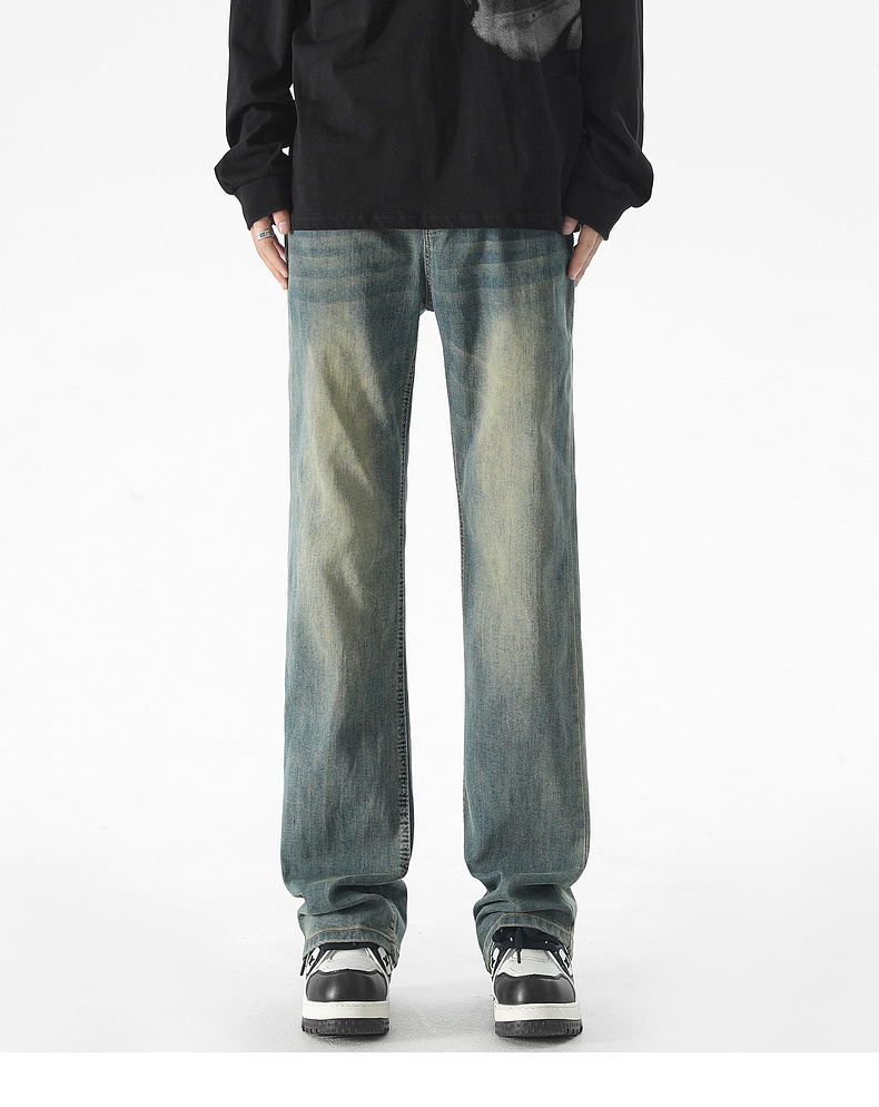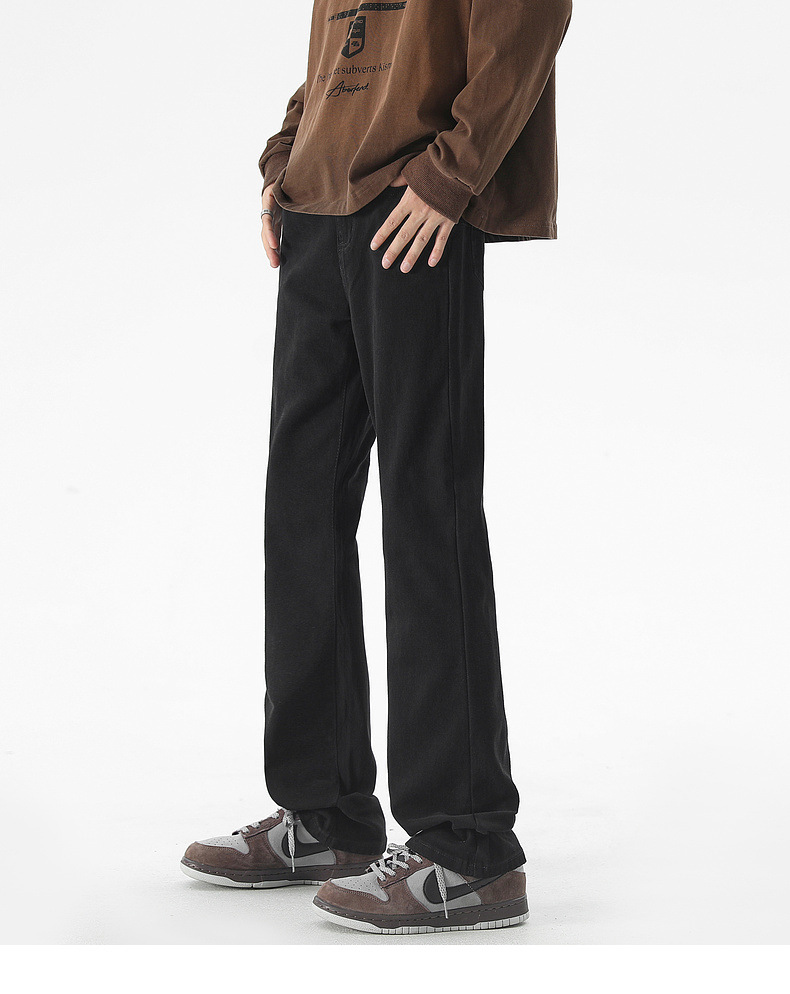 Mu Yuan 남성용 미국식 Xintang 단순 세척 마이크로 라 청바지 남성용 Ins 홍콩 스타일 스트레치 플루톤 핸섬 긴 바지
