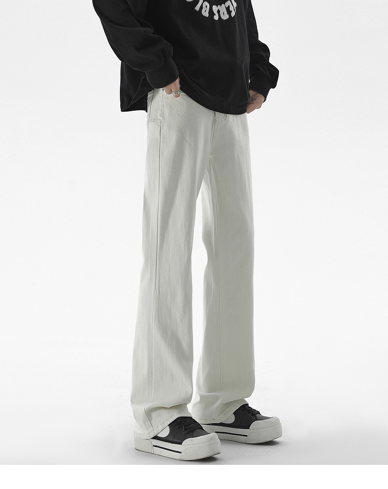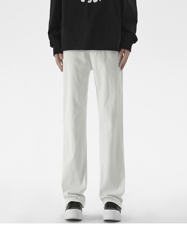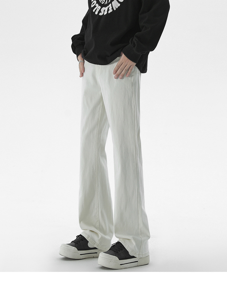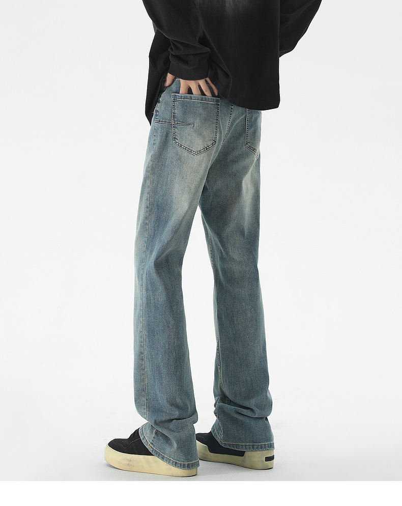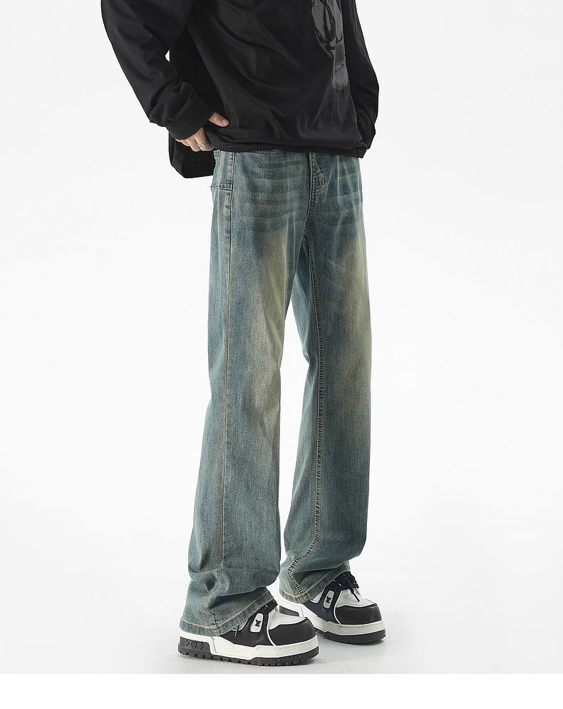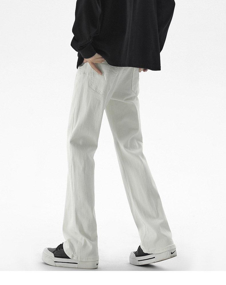 Mu Yuan 남성용 미국식 Xintang 단순 세척 마이크로 라 청바지 남성용 Ins 홍콩 스타일 스트레치 플루톤 핸섬 긴 바지