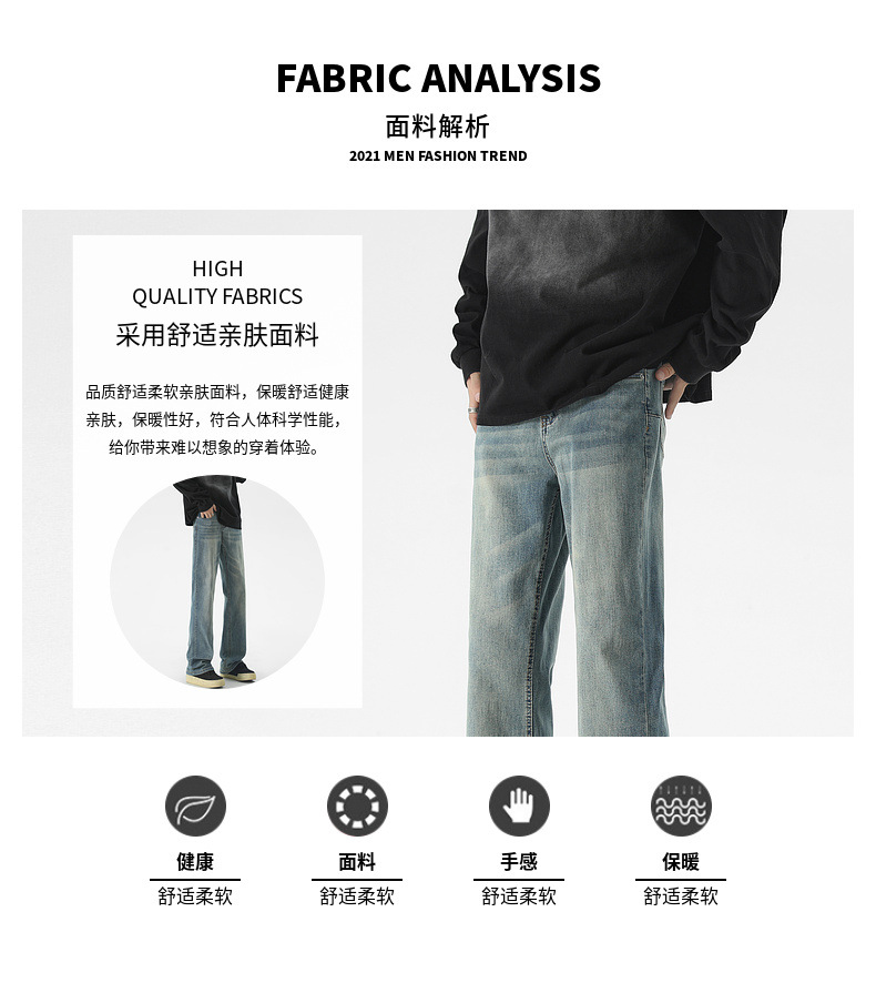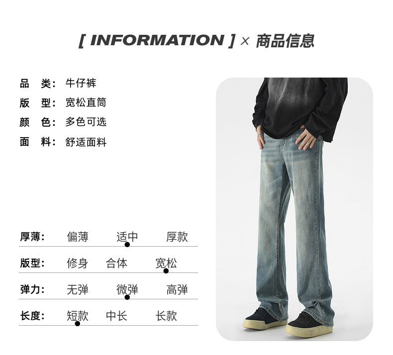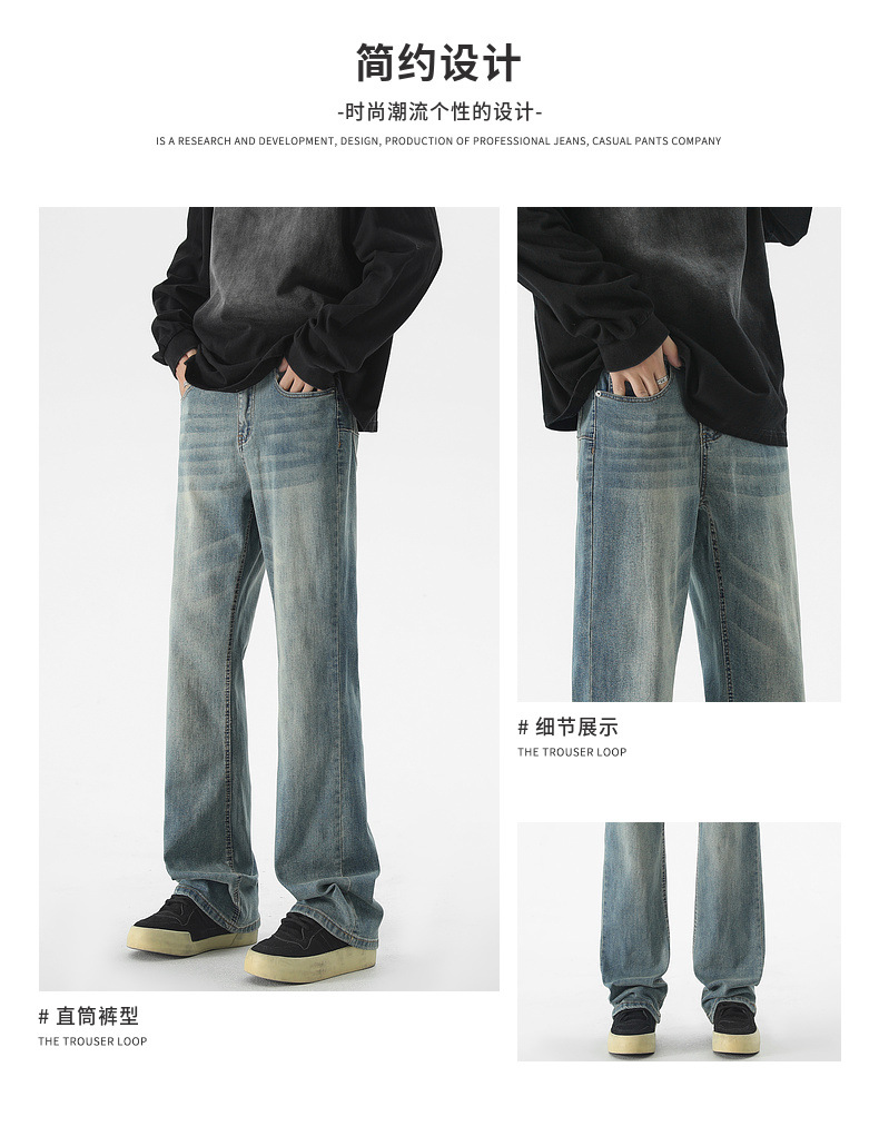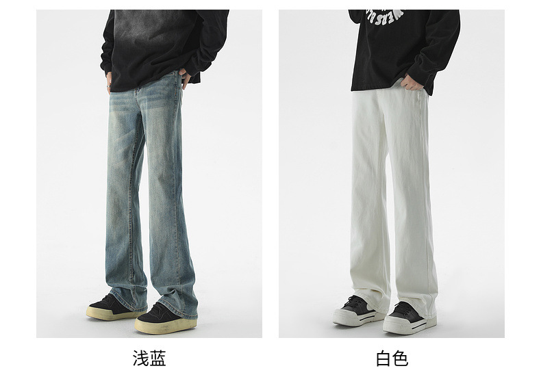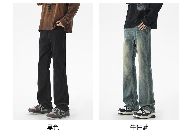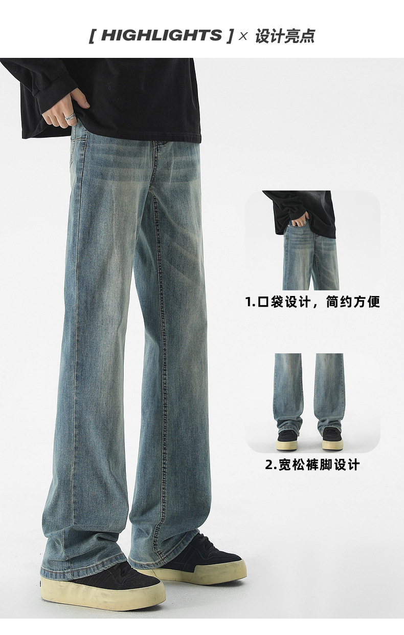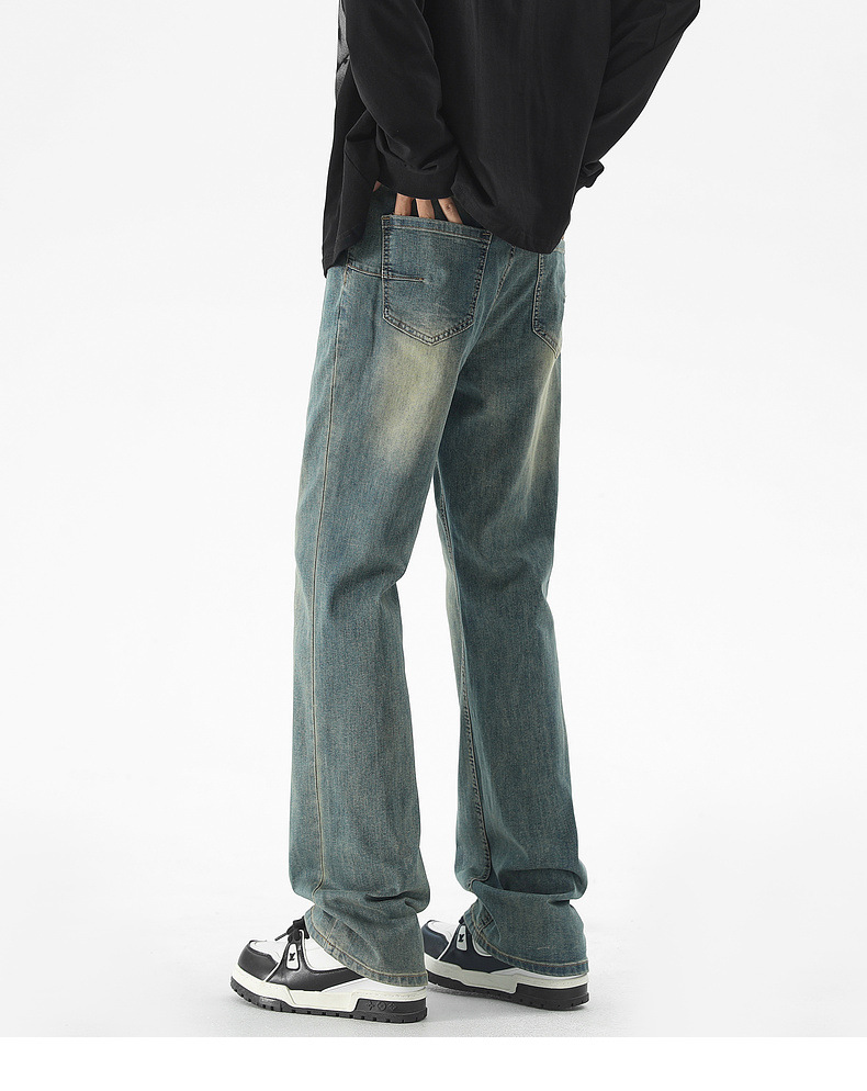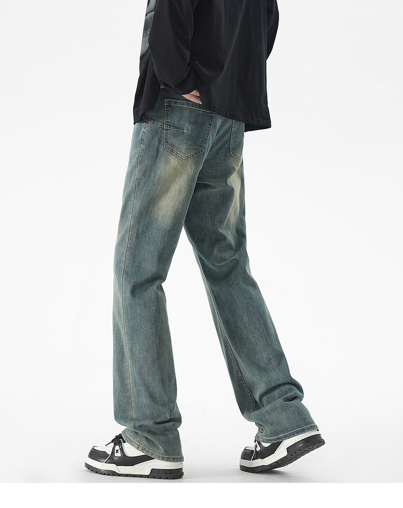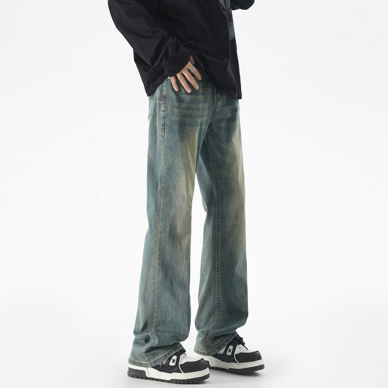 Mu Yuan 남성용 미국식 Xintang 단순 세척 마이크로 라 청바지 남성용 Ins 홍콩 스타일 스트레치 플루톤 핸섬 긴 바지스토어 가기