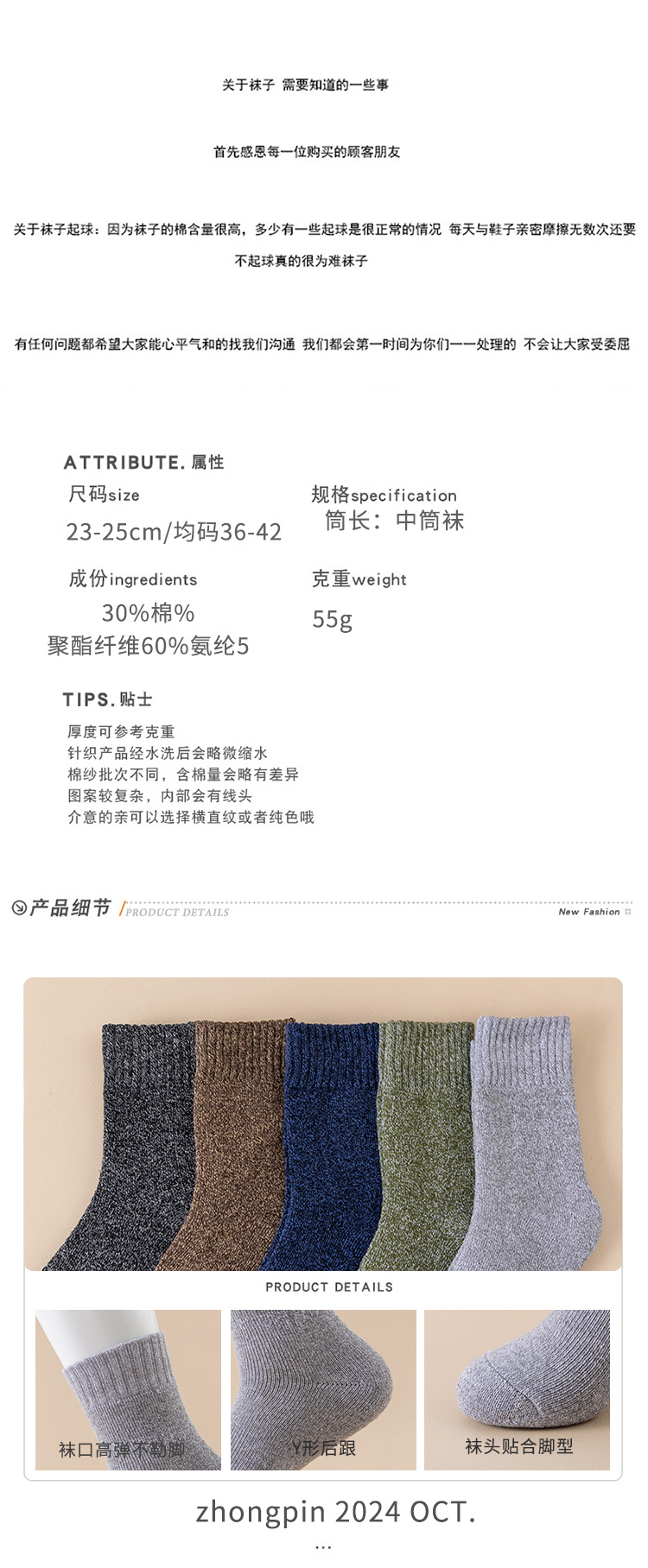 • 남성용 [5켤레 혼합] 솔리드 컬러 테리