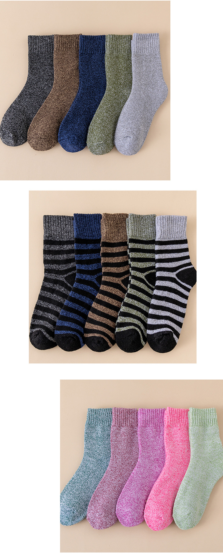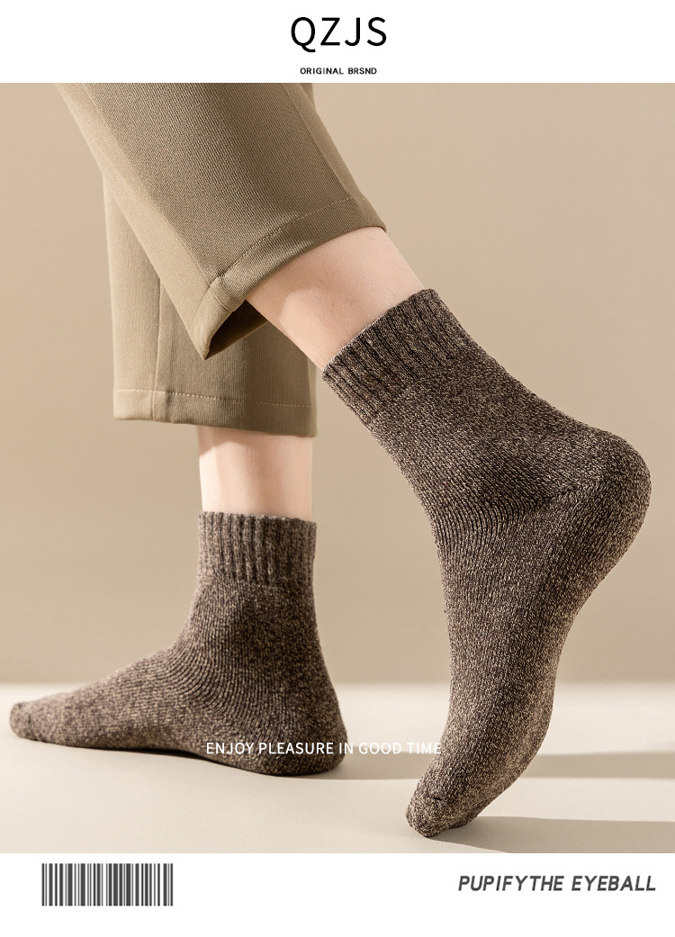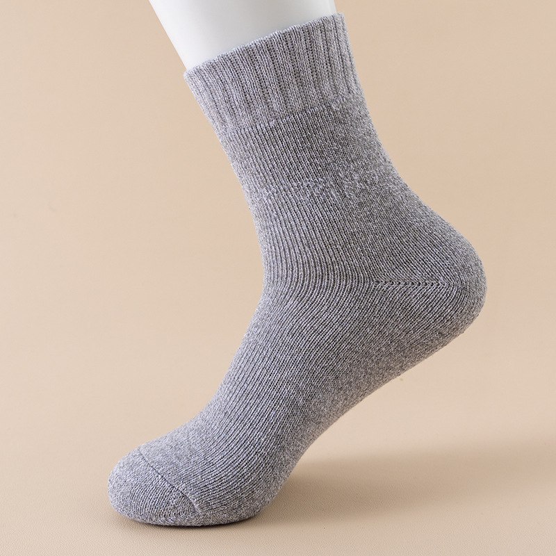 테리 양말 남성 가을과 겨울 기모 두꺼운 따뜻한 여성 튜브 단색 바닥 양말 평행 수건 양말 국경 도매스토어 가기
