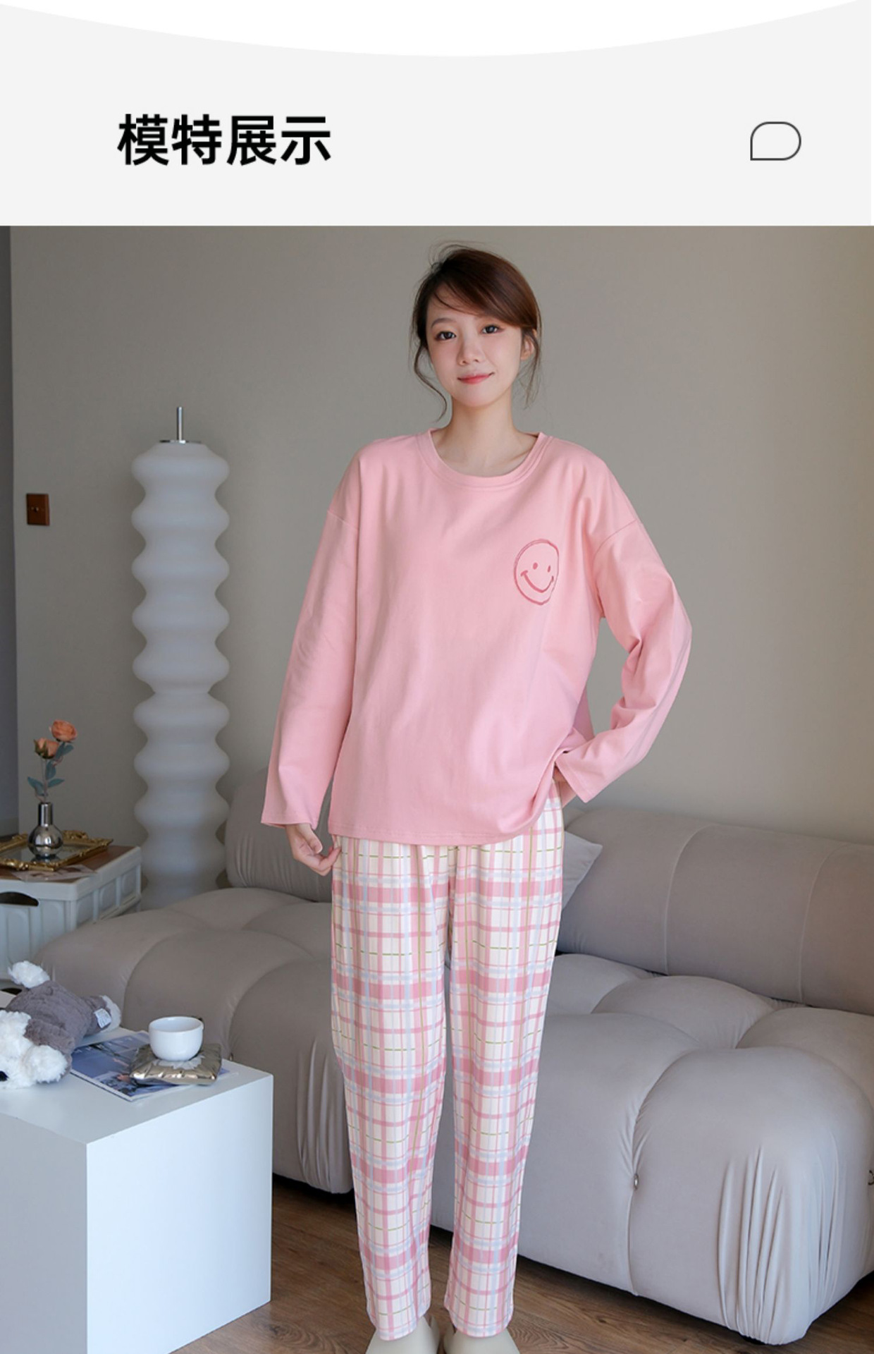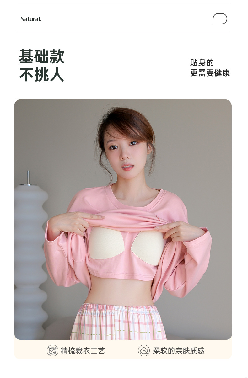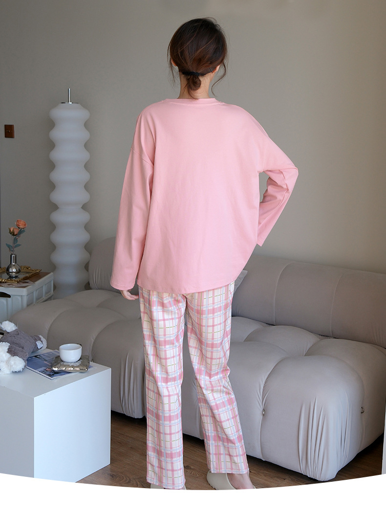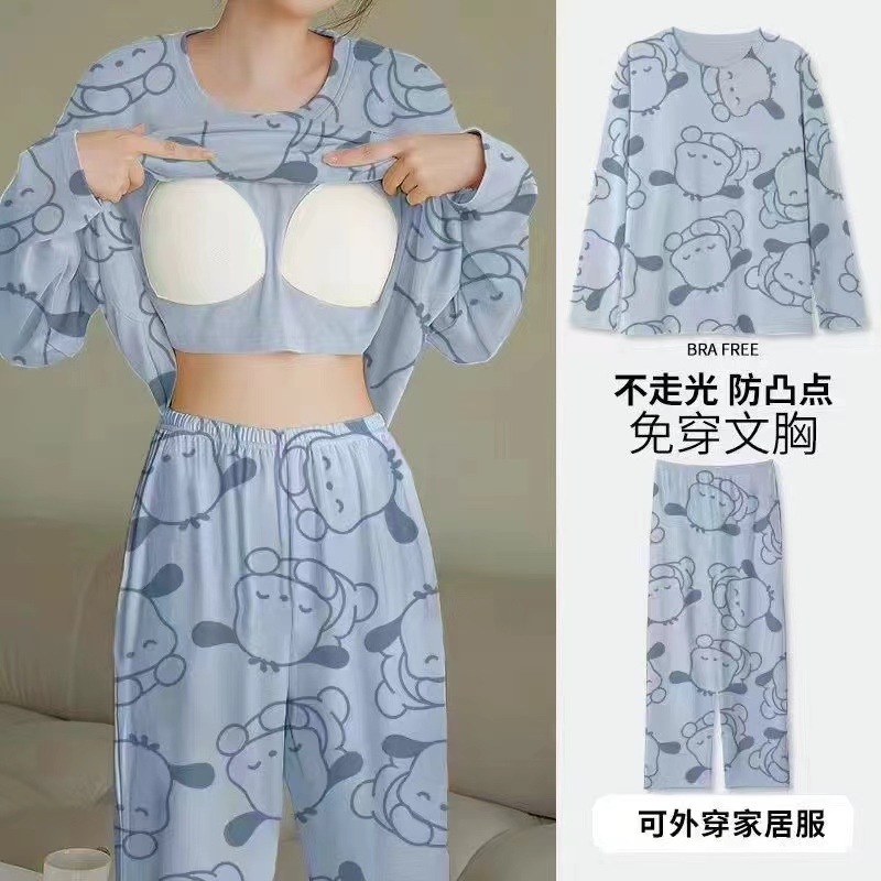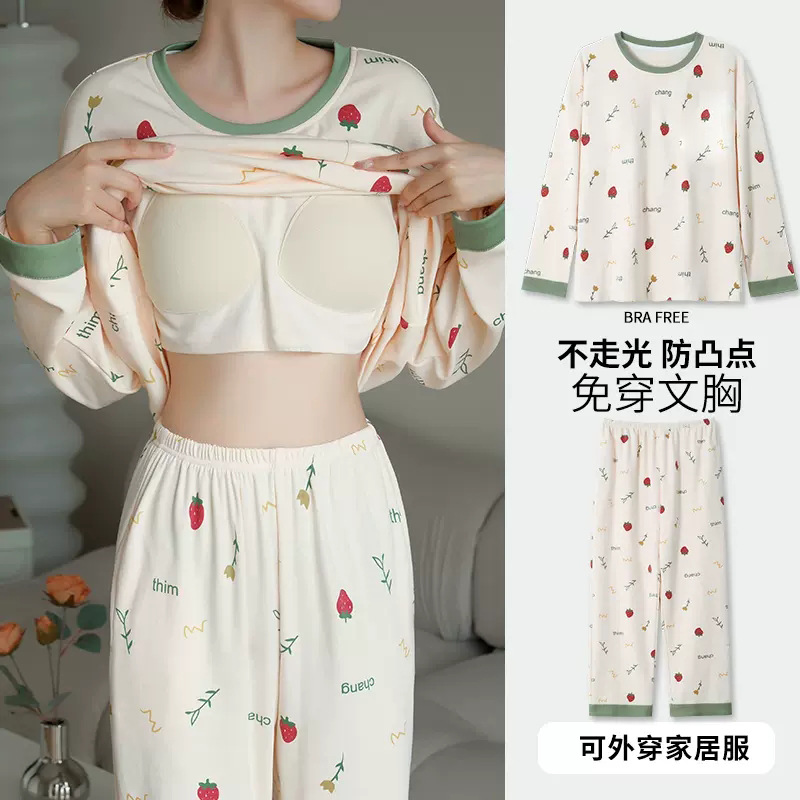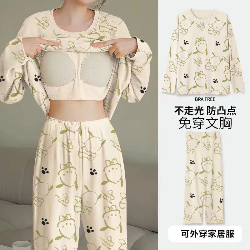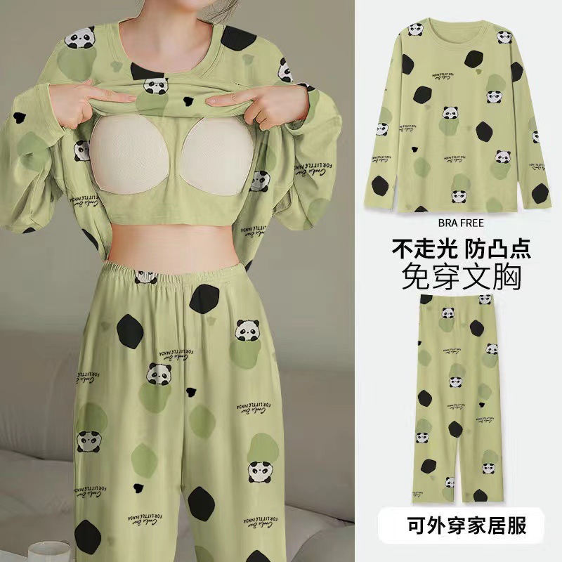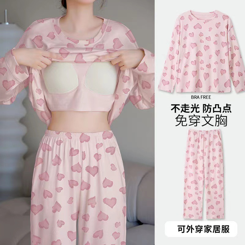 2024 봄과 가을에 가슴 패드를 가진 여성을위한 새로운 스타일 잠옷 긴 소매 바지 홈 의류 세트 캐주얼 의상스토어 가기
